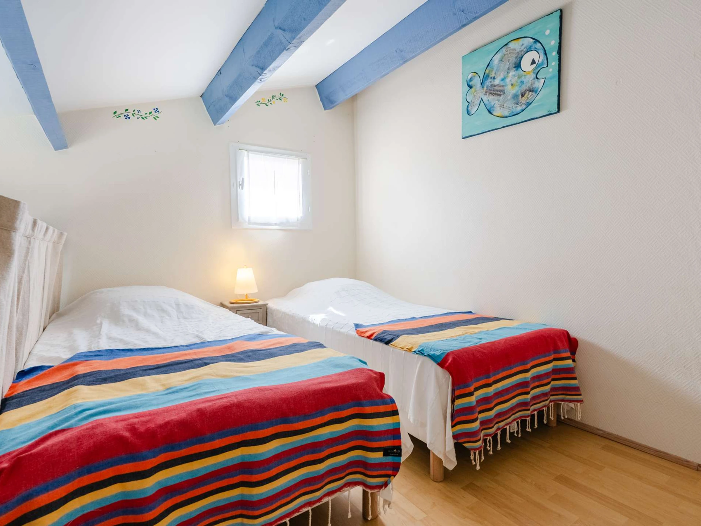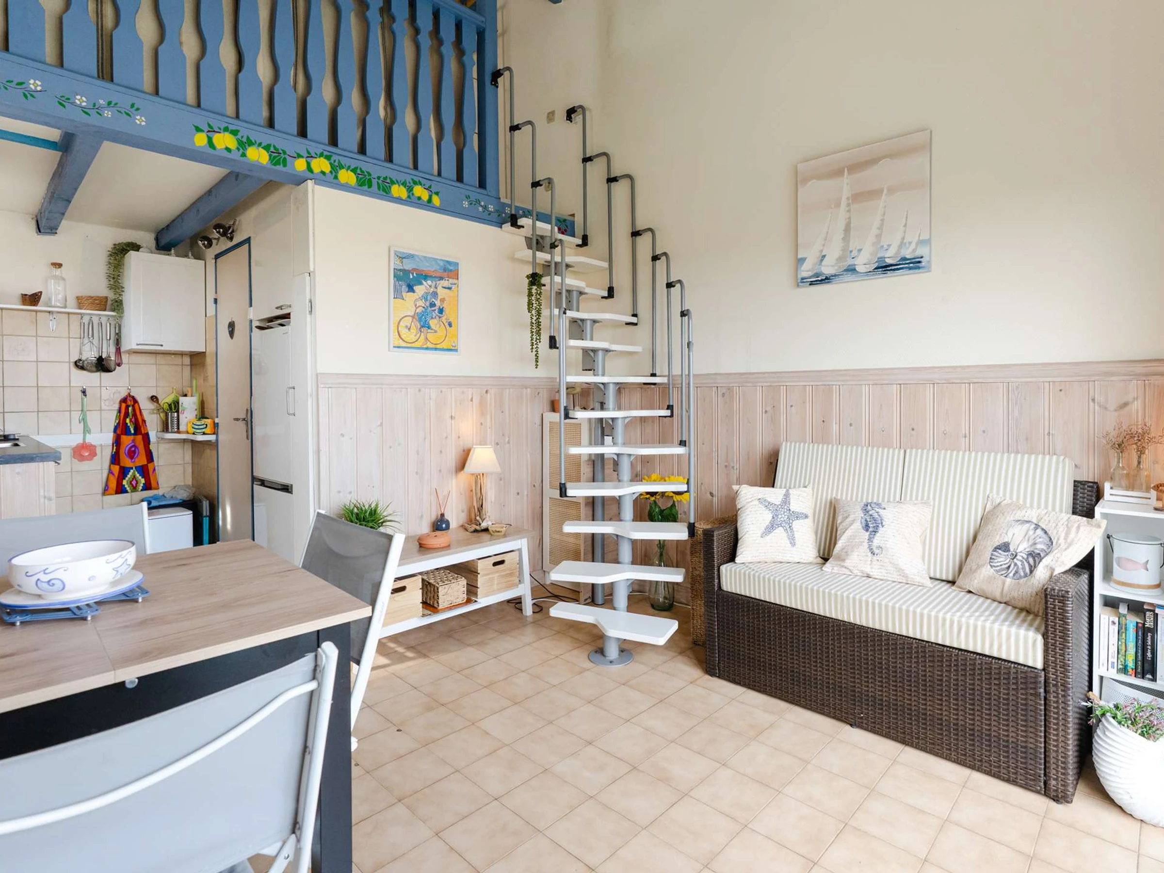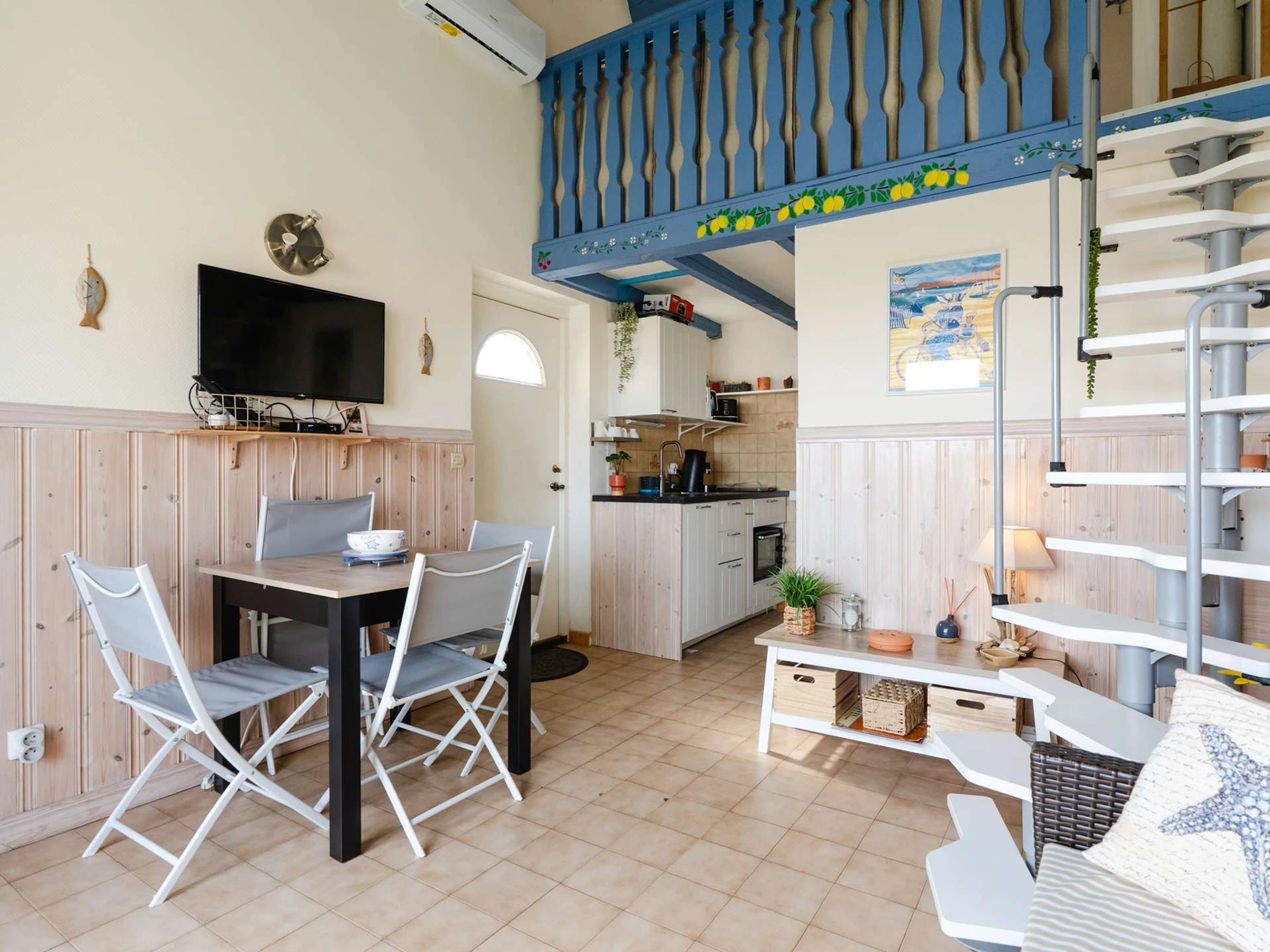 Die Mezzanine verfügt über 2 Einzelbetten und Stauraum.