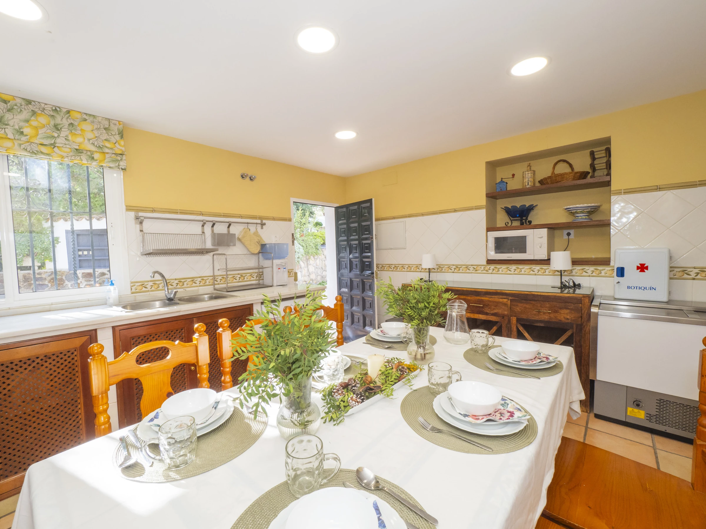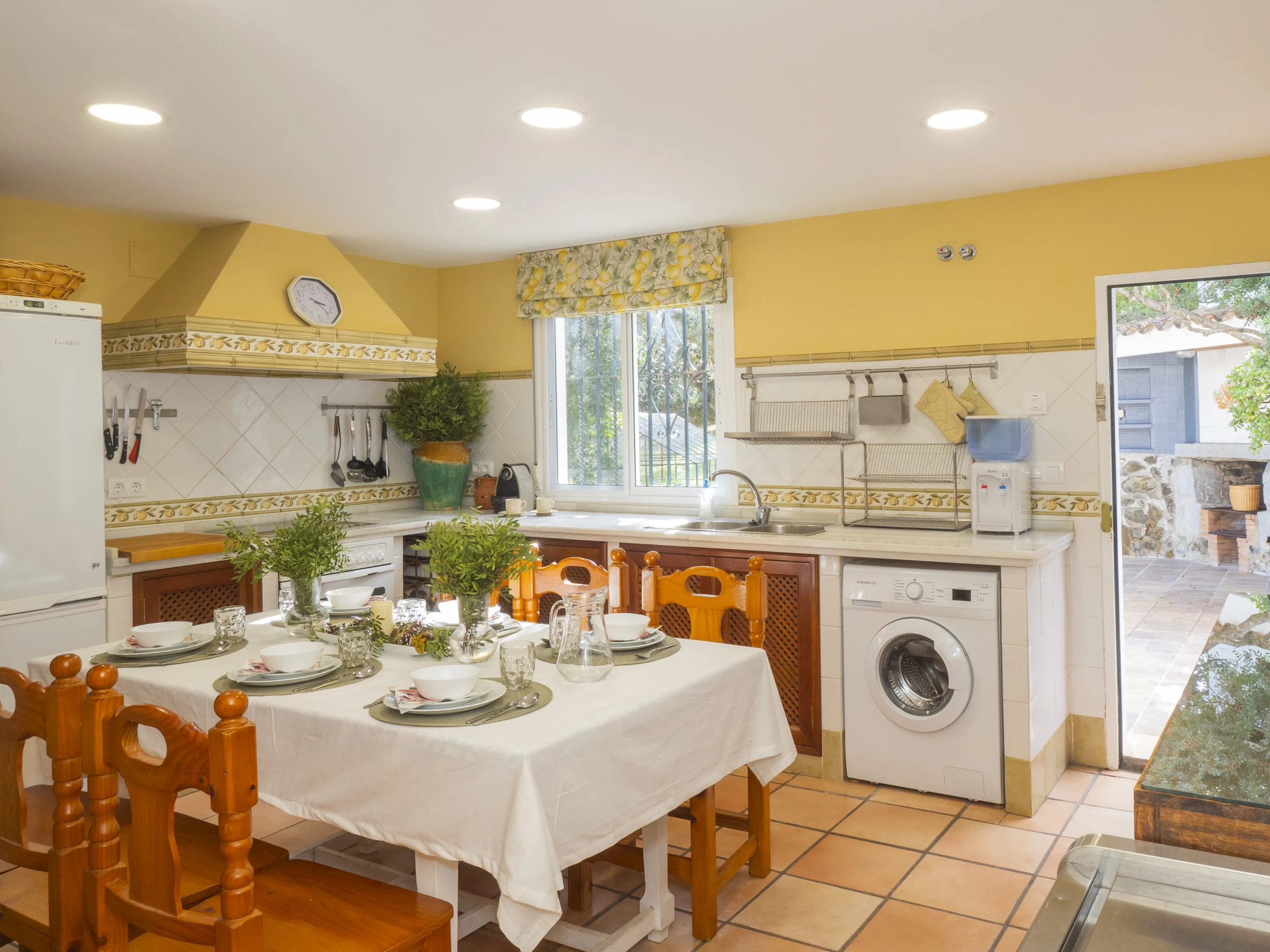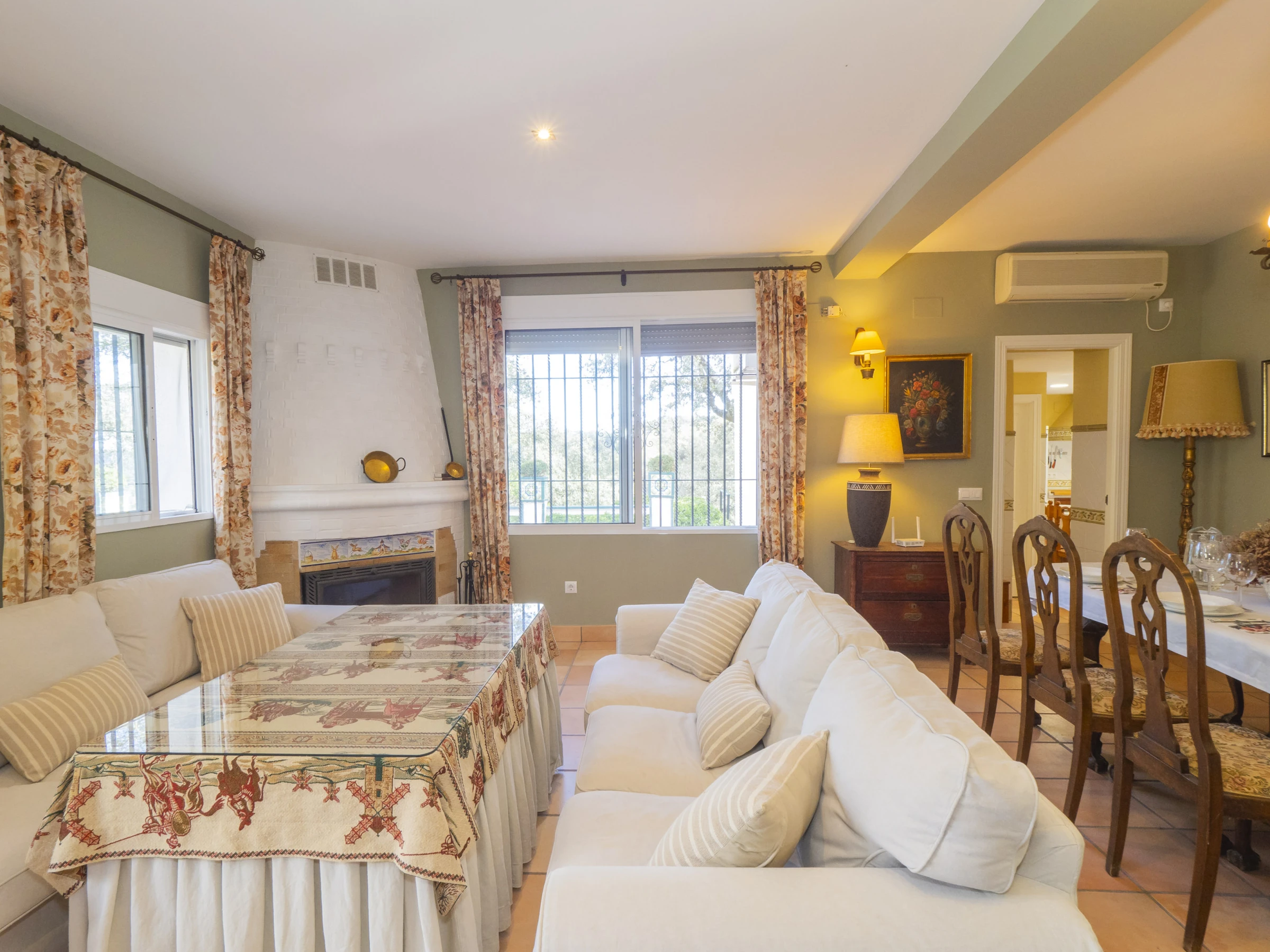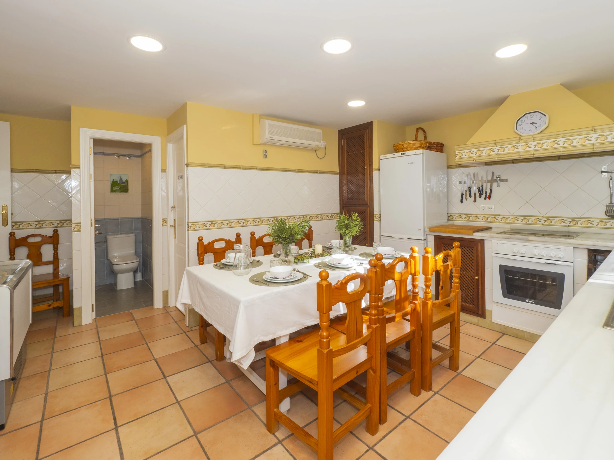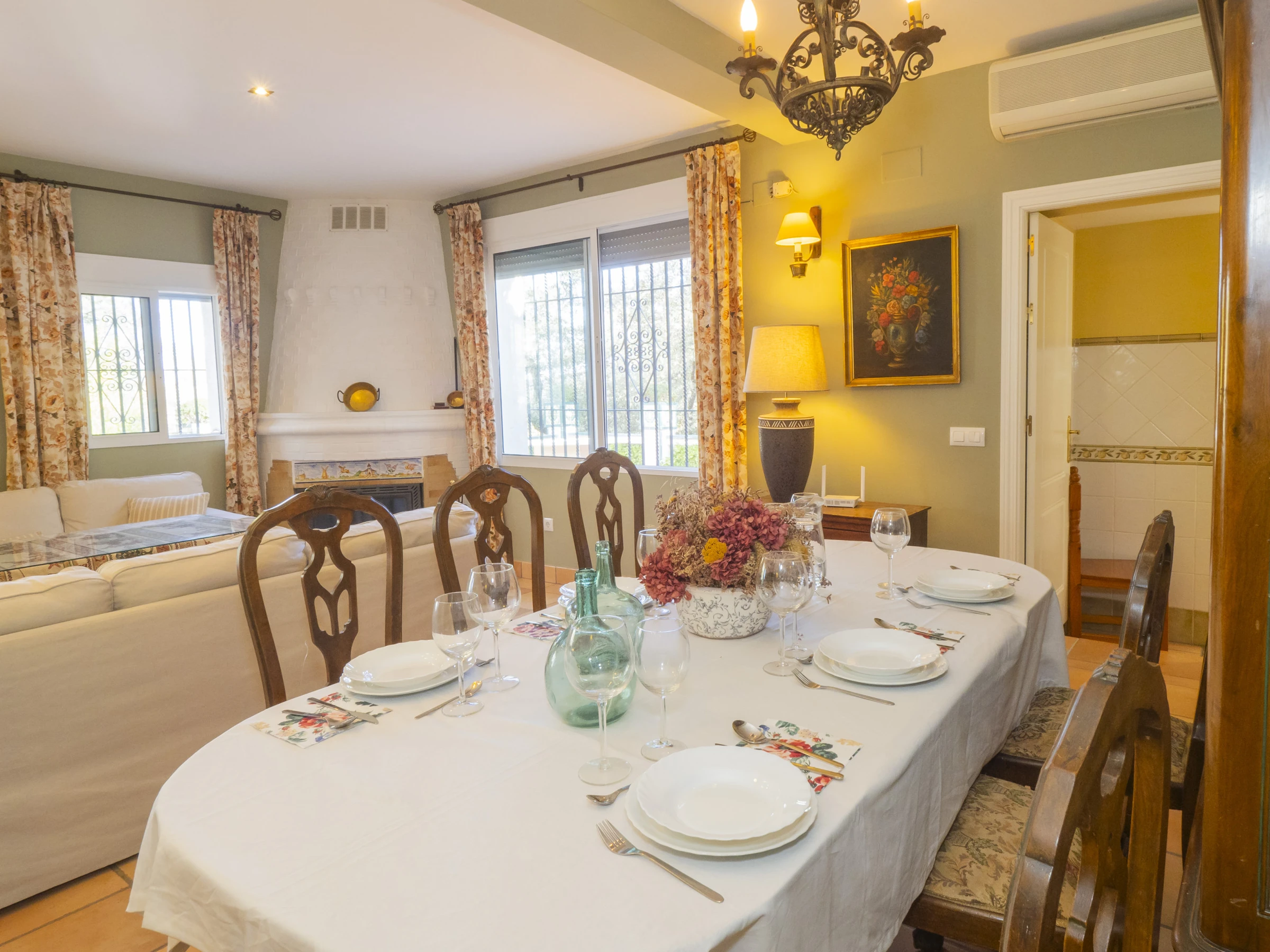 Der Speisesalon mit Kamin schafft eine gemütliche Atmosphäre, um Momente mit der Familie zu teilen, während ein zweites Wohnzimmer mit Fernseher ideal ist, um die Kinder zu unterhalten. Die separate Küche ist vollständig ausgestattet mit modernen Haushaltsgeräten: Glaskeramikkochfeld, Kühlschrank, Mikrowelle, Backofen, Gefrierschrank und Geschirrspüler sowie kleine Haushaltsgeräte wie Kaffeemaschine, Toaster und Entsafter 🍳. Sie verfügt sogar über einen Esstisch für informellere Mahlzeiten.