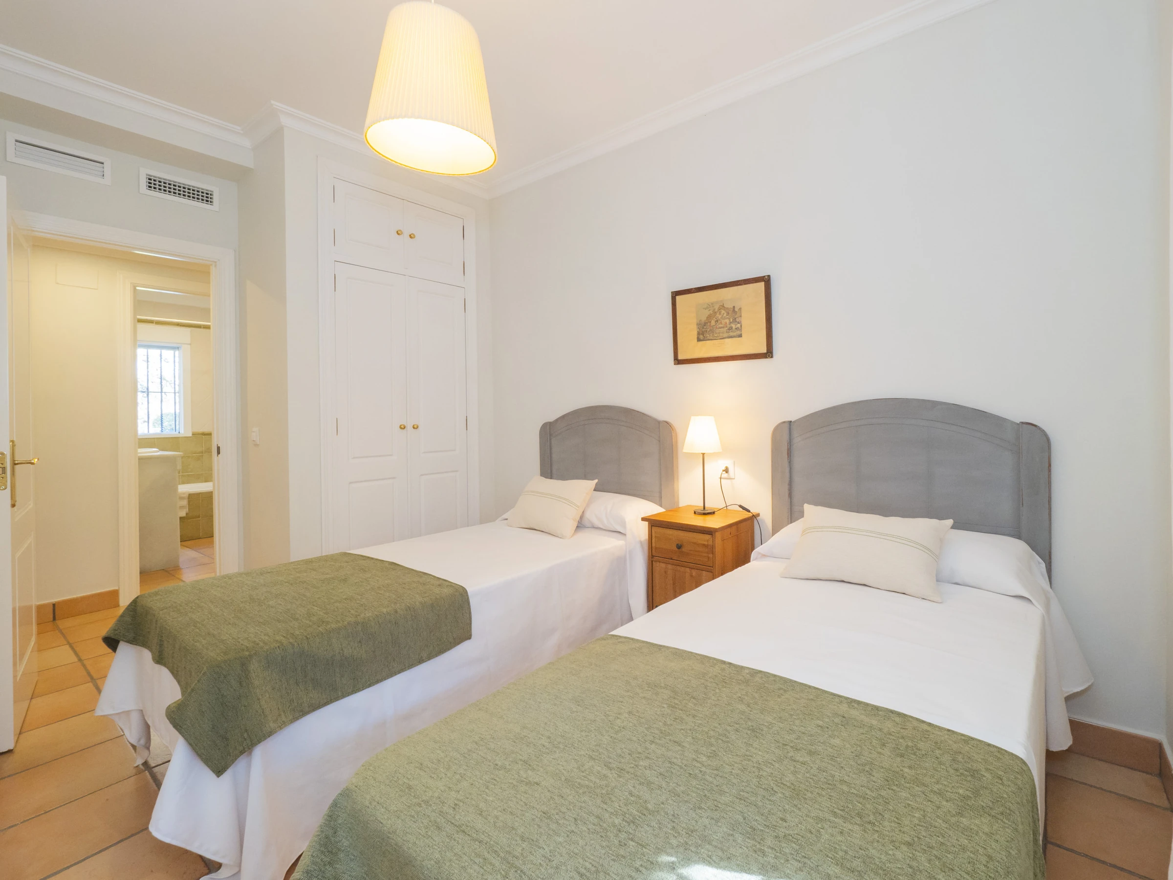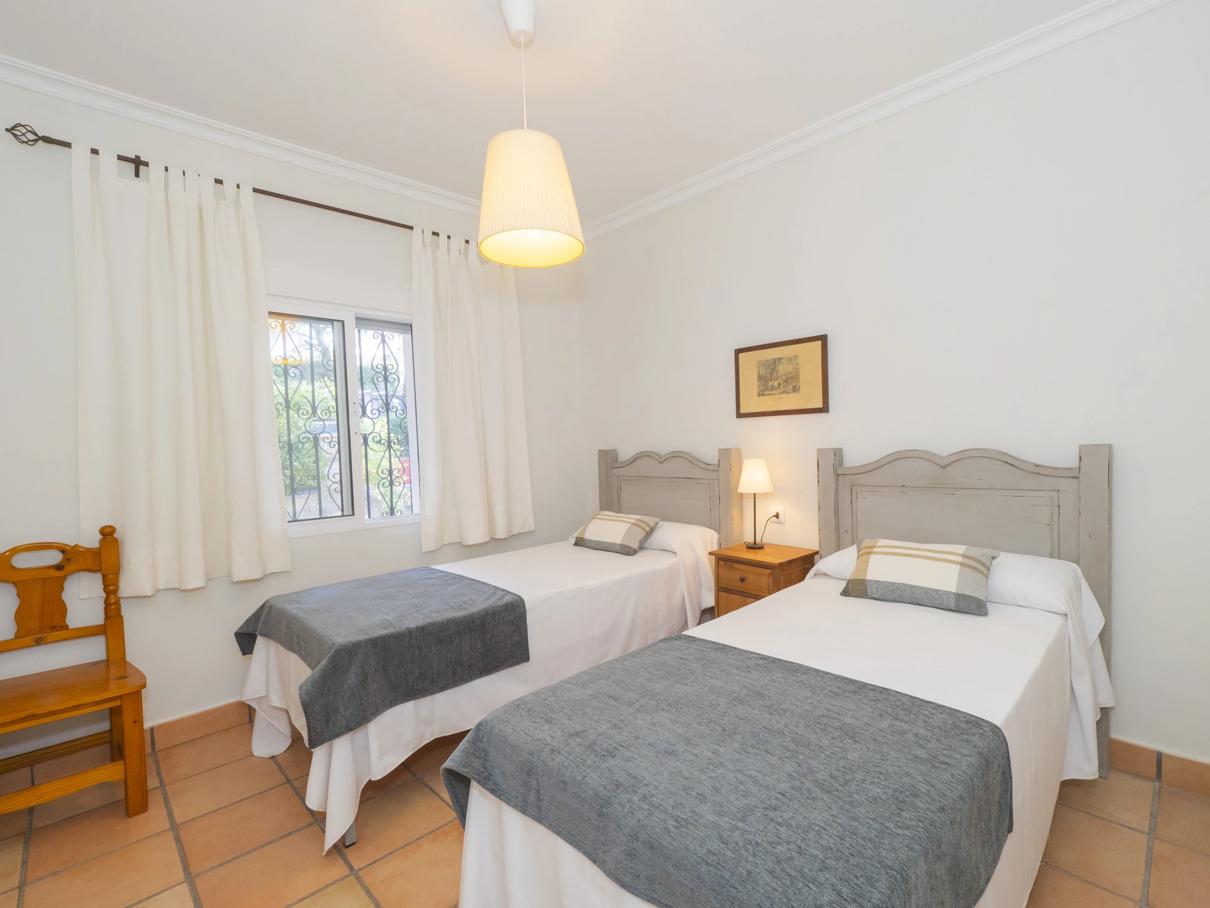 Das Innere ist komfortabel und funktional, mit 194 m² auf einer einzigen Etage verteilt, um die Mobilität zu erleichtern. Sie werden fünf Schlafzimmer mit Einzelbetten finden, geräumig und hell, die Ruhe für alle gewährleisten. Es gibt drei Badezimmer, eines neben der Küche mit Dusche, und zwei weitere, die von der Schlafzimmerzone aus zugänglich sind.