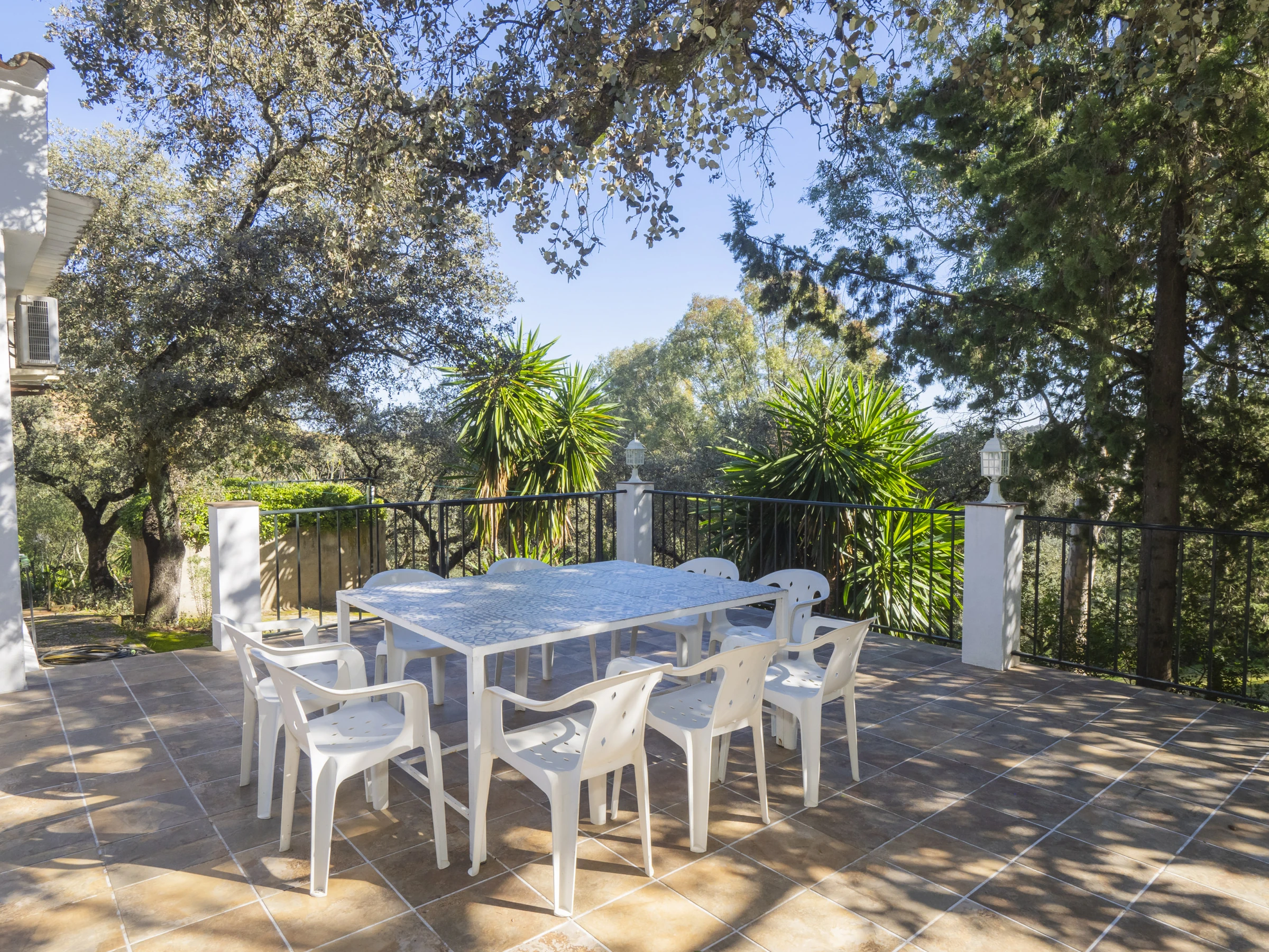 Der Außenbereich lädt dazu ein, die frische Luft mit verschiedenen Grillzonen und Essbereichen zu genießen, die perfekt für Familienmahlzeiten sind 🍖. Das Grundstück ist eingezäunt für Sicherheit und hat direkten Zugang zu einem privaten Pfad innerhalb der Wohnanlage, ideal für Spaziergänge zwischen Bäumen. Obwohl in der Nähe ein Supermarkt an einer Tankstelle ist, empfehlen wir Ihnen, den Einkauf bereits erledigt mitzubringen, um zu sparen.