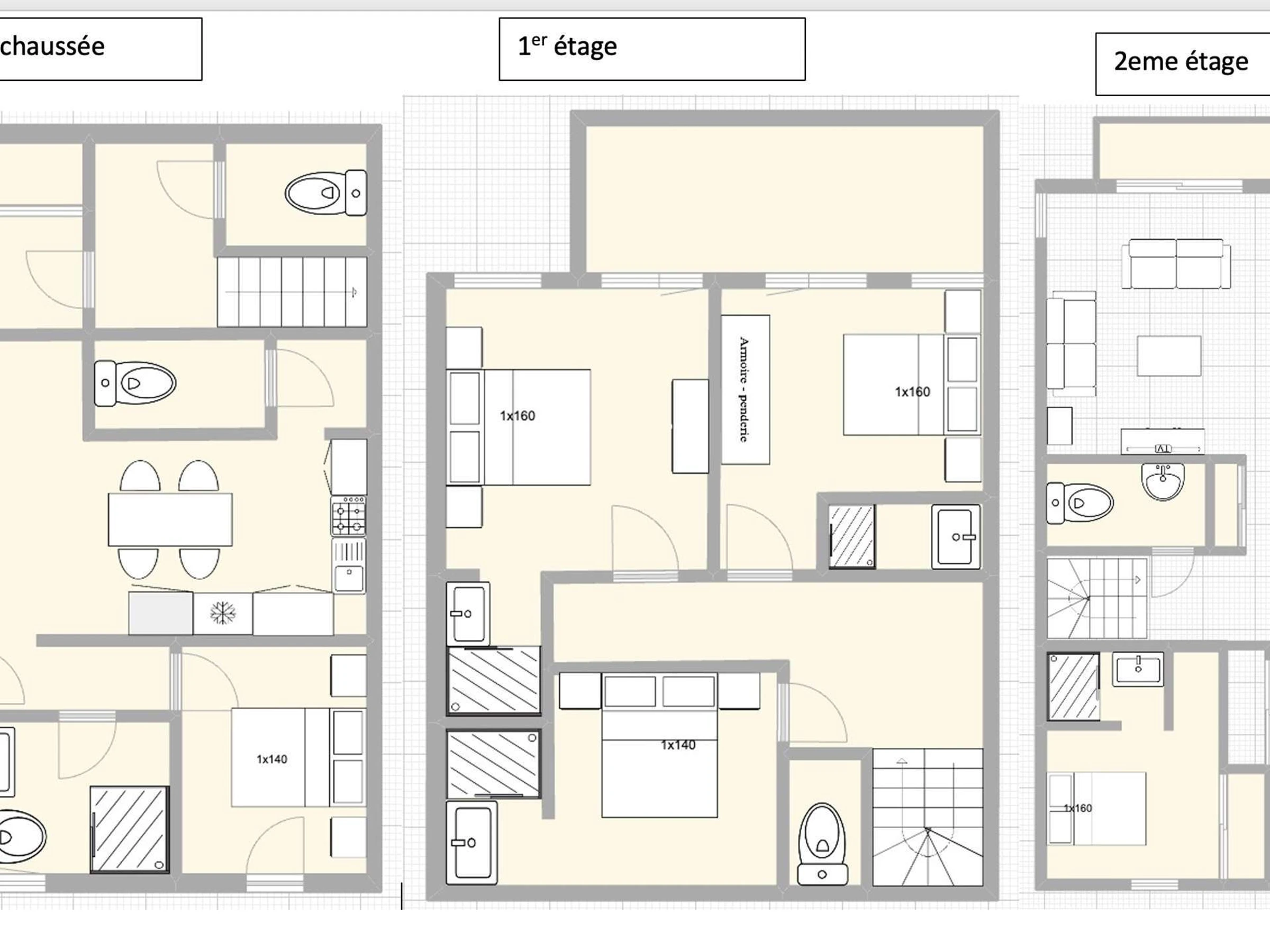 * 5-Zimmer-Wohnung im Obergeschoss, Südlage mit Balkon. Sie verfügt über eine Küche mit Zugang zum Wohnzimmer, 1 Master-Suite mit Doppelbett (160 cm) und Badezimmer sowie 1 separates WC. Im Obergeschoss befinden sich zwei Master-Suiten mit je einem Queensize-Bett (160 cm) und Duschbad, eine Master-Suite mit einem Doppelbett (140 cm) und Duschbad sowie ein separates WC.