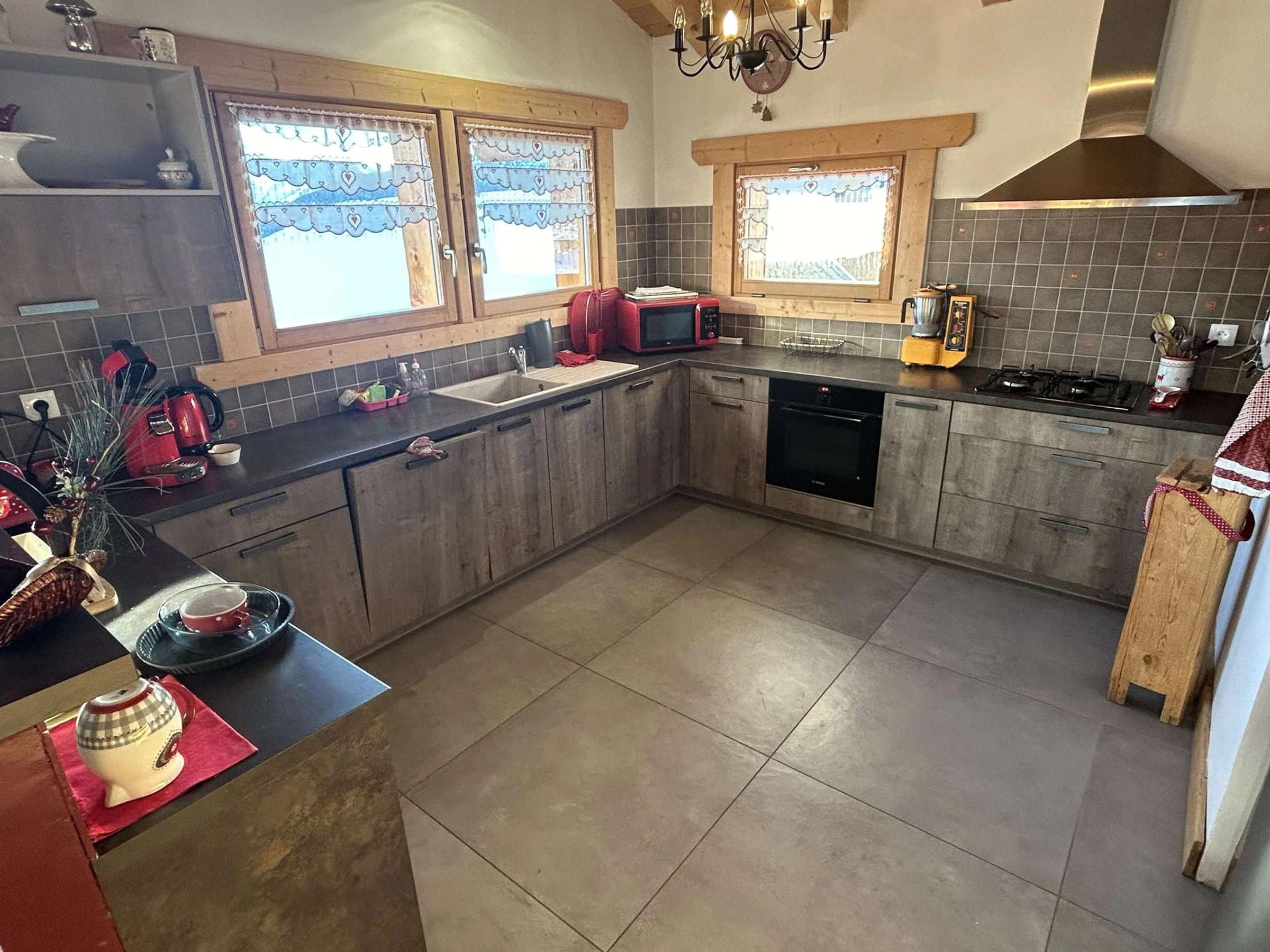 * 3-Zimmer-Wohnung im Erdgeschoss (10 Stufen hinunter zum Chalet), Südlage, mit Balkon. Sie verfügt über eine voll ausgestattete Küche mit Zugang zum Wohnzimmer, 1 Schlafzimmer mit Doppelbett (140 cm), 1 Schlafzimmer mit Einzel-Etagenbett (90 cm) (Hinweis: Das obere Bett ist nicht für Kinder unter 6 Jahren geeignet), 1 Badezimmer mit WC und 1 separates WC.