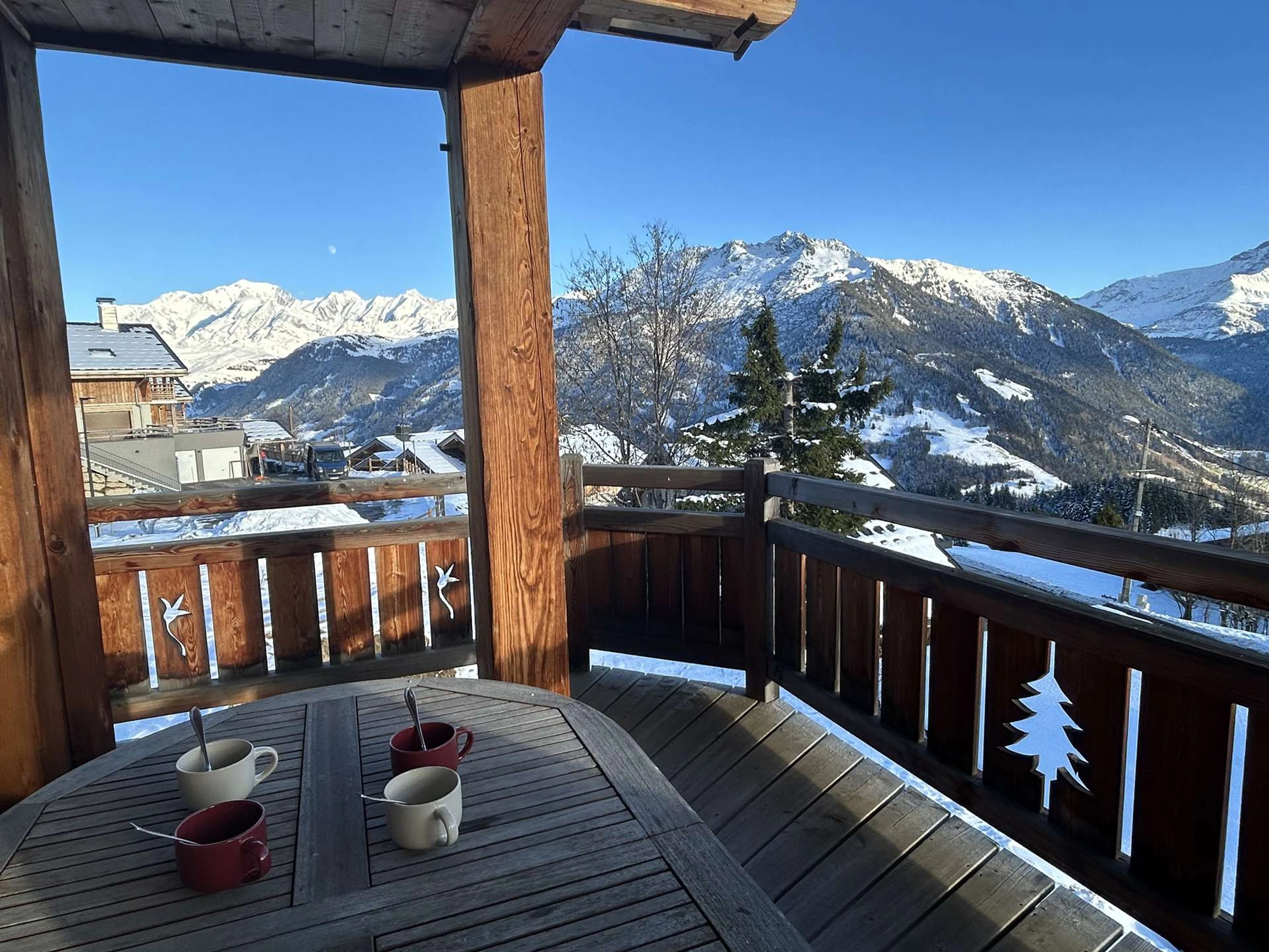 Das Chalet ist nach Süden ausgerichtet und bietet Blick auf den Mont Blanc und das Beaufortain-Massiv.