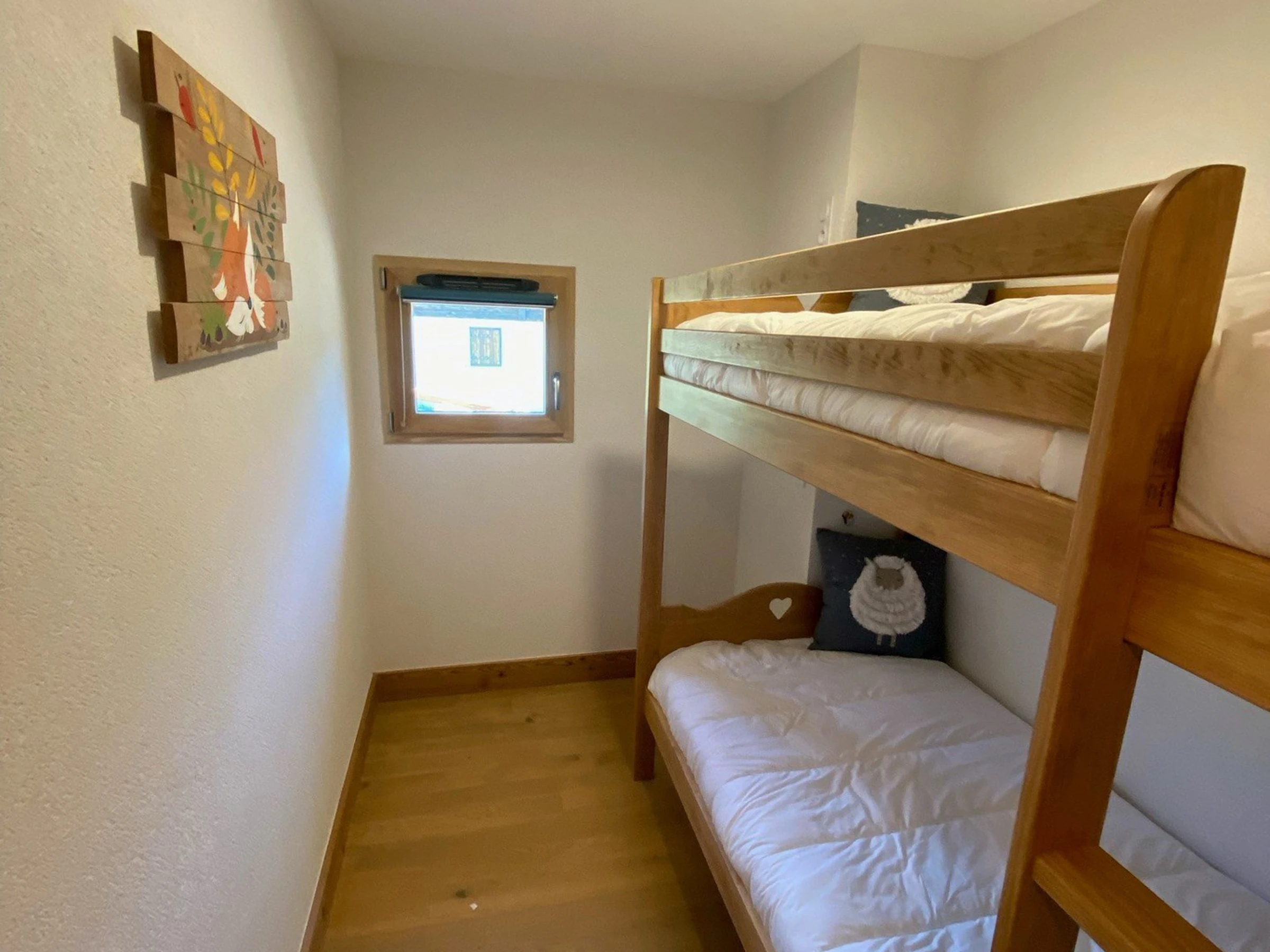 - Kleines Schlafzimmer: 2 Etagenbetten + 1 Ausziehbett (90 x 190 cm) (kann als Erwachsenenbett genutzt werden)