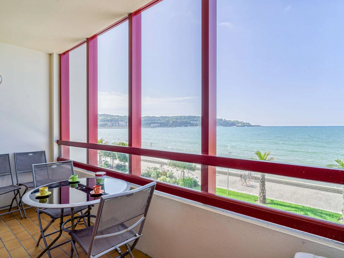 Die Wohnung besteht aus einem Wohnzimmer mit einem Schlafsofa für zwei Personen, einem Schlafsofa für eine Person und einem Küchenbereich, die alle auf einen Balkon mit atemberaubendem Panorama auf das Meer führen.
