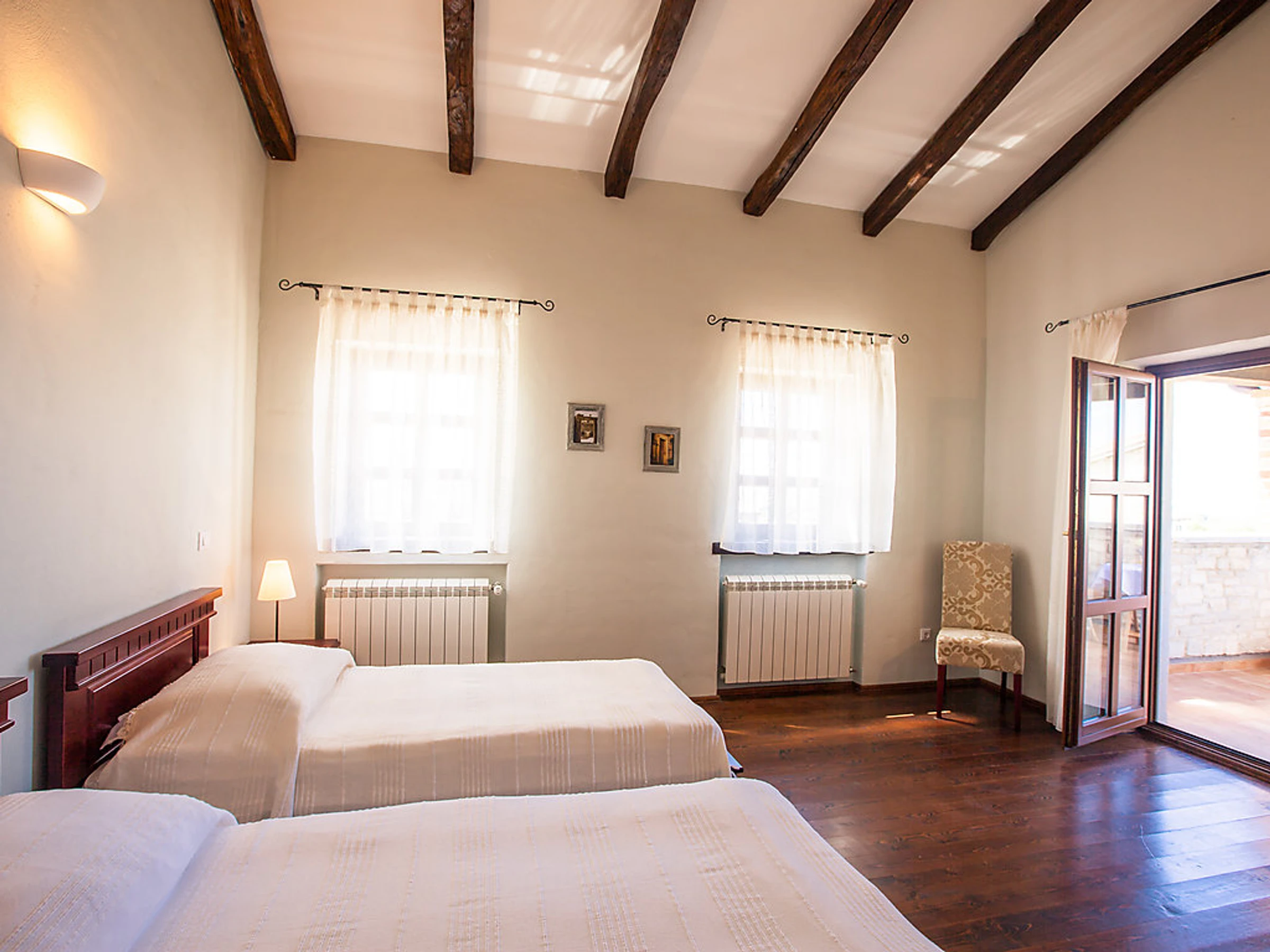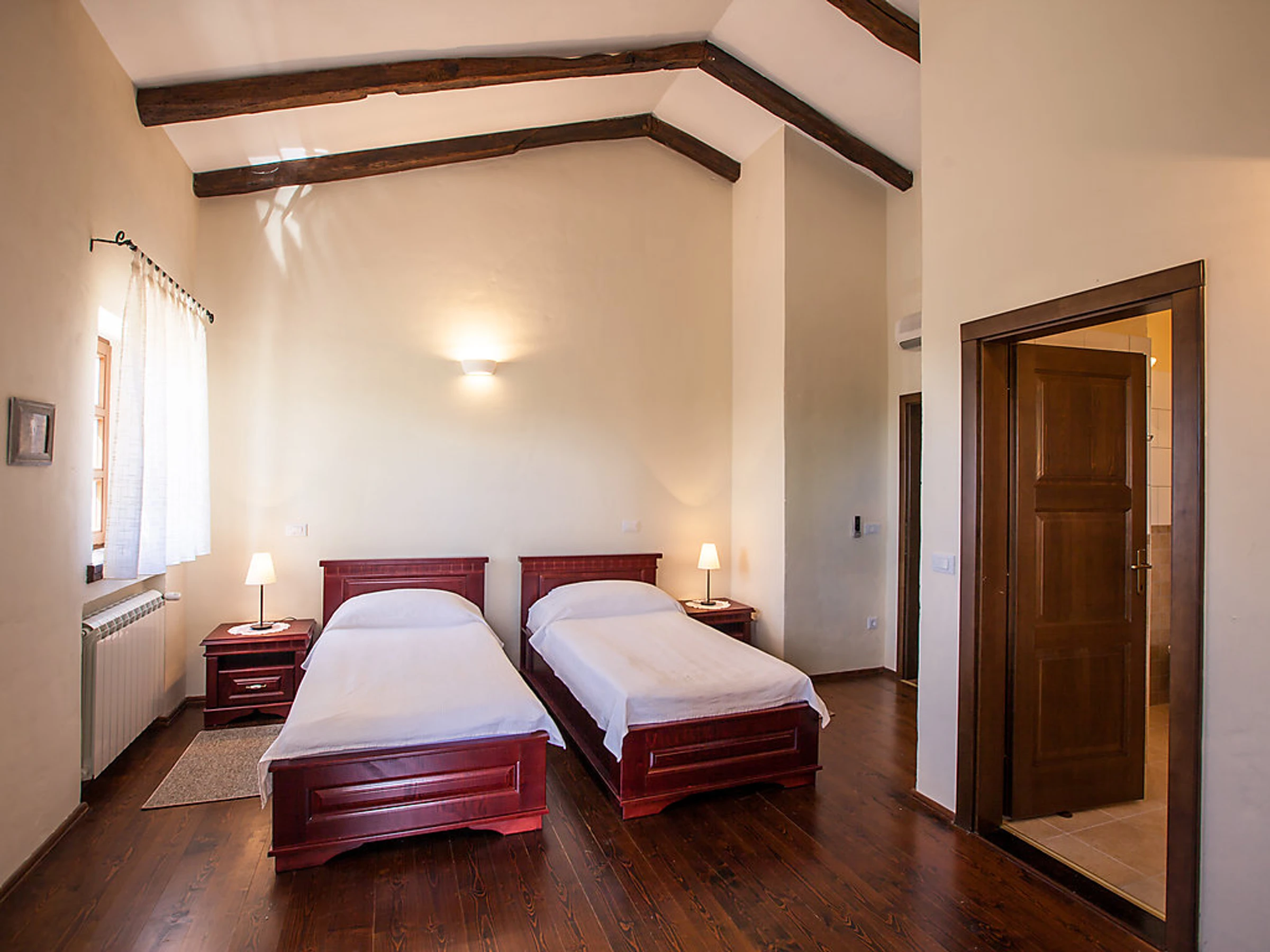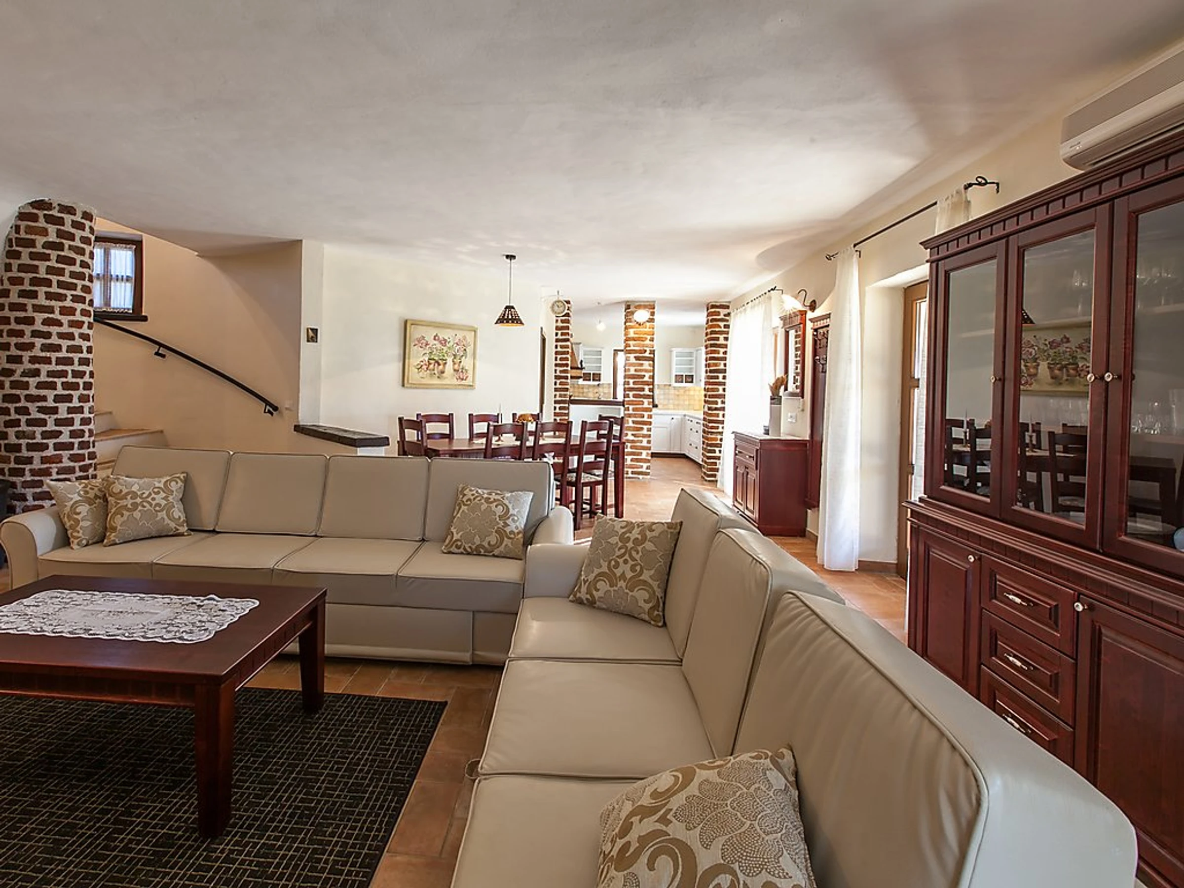 5-Zimmer-Villa 160 m2 auf 2 Stockwerken. Komfortabel und rustikal eingerichtet: grosses Wohn-/Esszimmer 50 m2 mit offenem Kamin und Sat-TV (Flachbildschirm), Klimaanlage. Ausgang zum Garten, zur Terrasse, zum Schwimmbad. 1 Zimmer mit 1 franz. Bett, Bad/WC und Klimaanlage. Ausgang zur Terrasse, zum Schwimmbad. 1 Zimmer mit 1 franz. Bett, Dusche/WC und Klimaanlage. Offene Küche (Backofen, Geschirrspüler, 4 Glaskeramikherd Platten, Tiefkühler, elektrische Kaffeemaschine). Sep. WC. Obergeschoss: 1 Zimmer mit 2 Betten, Dusche/WC und Klimaanlage. Ausgang zum Balkon. 1 Zimmer mit 2 Betten, Bad/WC und Klimaanlage. Ausgang zur Terrasse. Balkon 8 m2, grosse Terrasse 48 m2, überdacht, Terrasse 16 m2, überdacht. Terrassenmöbel, Gartengrill (mobil), Liegestühle. Sicht auf die Landschaft. Zur Verfügung: Waschmaschine, Safe, Bügeleisen, Haartrockner. Internet (Wireless LAN, gratis). Parkplatz (eingezäunt, 2 Autos). Ferne Meersicht. Sorgfältig ausgewählte rustikale Einrichtung, Decken mit Sichtbalken. Enthaltet: drahtloser Internetzugang, Kurtaxe, Heizung, Endreinigung, Babybett (bis 2 Jahre), Klimaanlage, Wöchentliche Wäsche (Bett- und Toilettenwäsche)