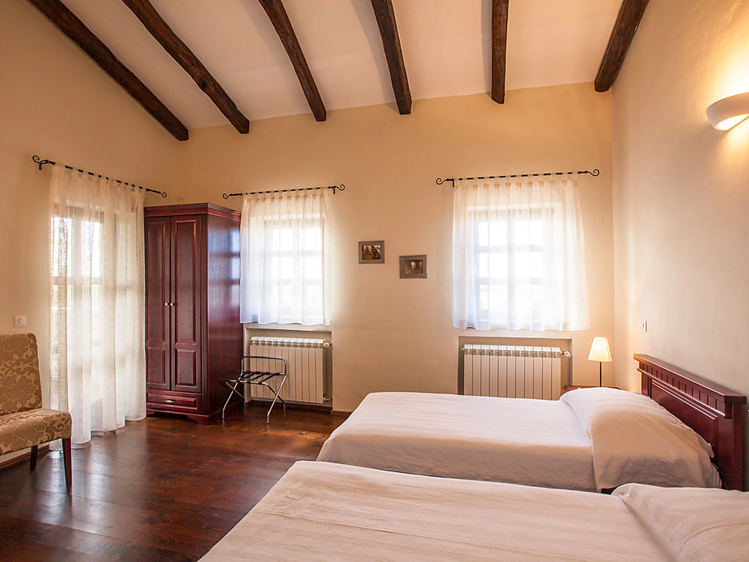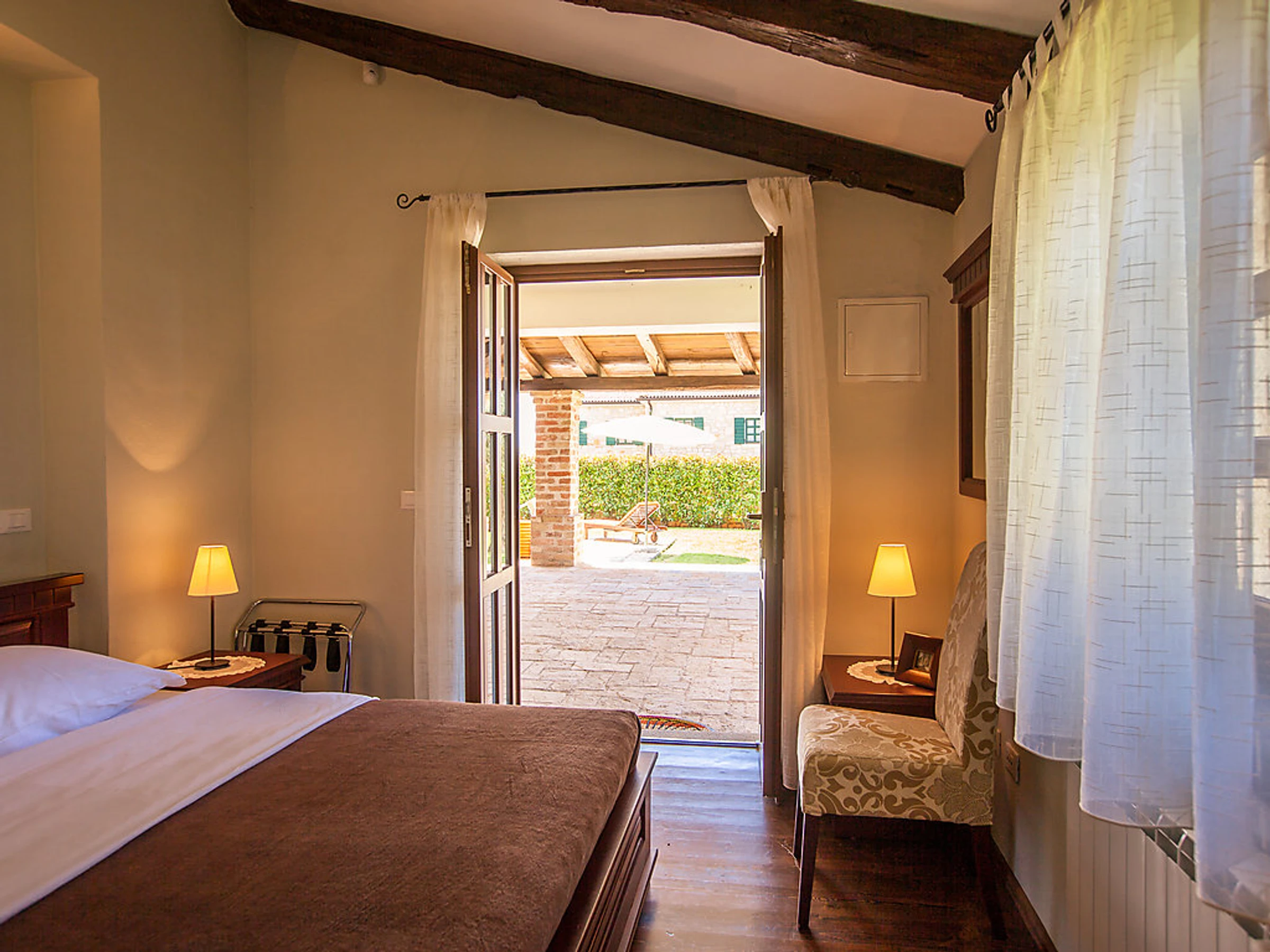 Heraki 14 km von Poreč: Die Villa Fragaria ist Teil des Weilers Heraki mit 12 Villen, umgeben von einer Naturlandschaft mit Reben, Olivenbäumen und Wäldern. Jede Villa befindet sich auf einem umzäunten Grundstück mit privatem Zugang und privatem Schwimmbad. Komfortable Villa "Fragaria", auf 2 Stockwerken, Baujahr 2006. Im Weiler Heraki, 2 km vom Zentrum von Sv.Lovreč, ruhige, sonnige Lage, 14 km vom Meer, im Grünen. Zur Alleinbenutzung: Grundstück 888 m2 (eingezäunt), gepflegter Garten, Schwimmbad eckig (8 x 4 m, 150 cm tief, 12.05.-06.10.) mit Innentreppe. Terrasse, Gartenmöbel. Im Hause: Internetzugang, Wireless LAN, Alarmanlage. Wohnungsreinigung 1 mal wöchentlich (inkl.). Parkplatz beim Haus auf dem Grundstück. Einkaufsgeschäft 2 km, Restaurant 7 km, Café 2 km, Kieselstrand 14 km, Strandbad 14 km. Sporthafen 14 km, Sportzentrum 14 km.
