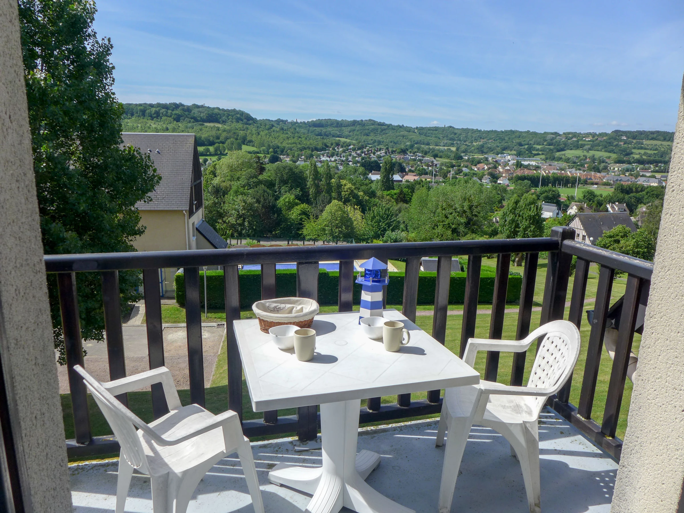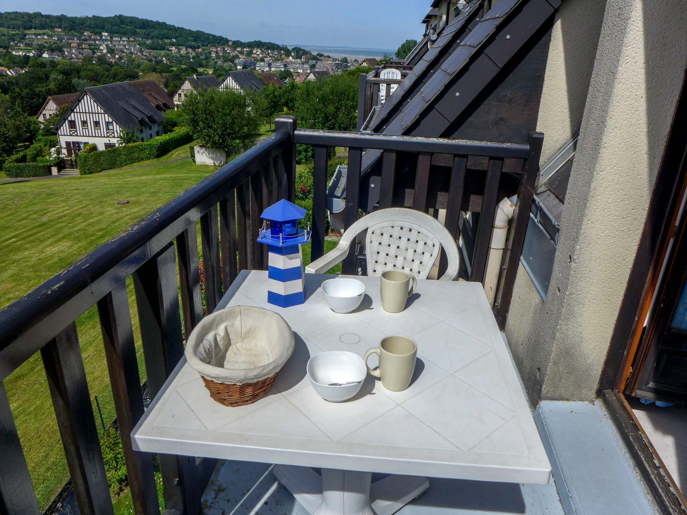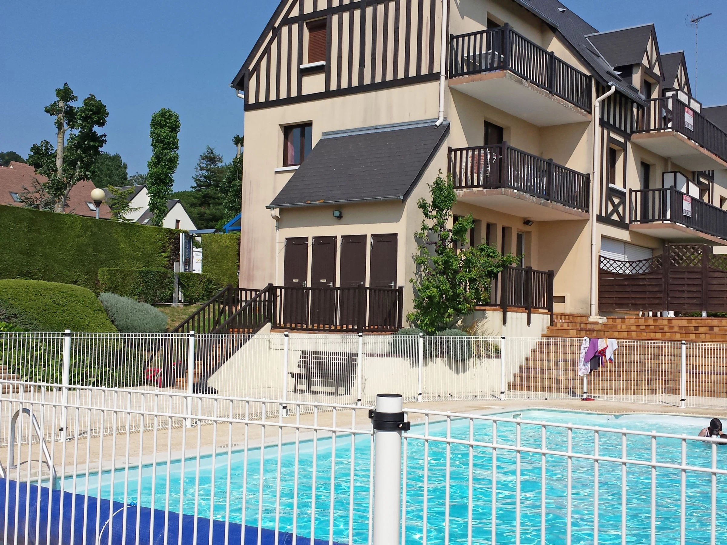 Residenz "La Cour du Moulin". Ausserhalb des Ortes, 2 km vom Zentrum von Houlgate, ruhige Lage am Hang, 1.8 km vom Meer, 1.8 km vom Strand. Zur Mitbenutzung: Schwimmbad beheizt (50 - 190 cm tief, saisonale Verfügbarkeit: [hidden] Poolhaus mit Dusche, Tennis, Parkplatz (beschränkte Anzahl). Einkaufsgeschäft 1.5 km, Restaurant 1.5 km. Golfplatz 400 m. Bitte beachten: Die Schlüsselübergabe findet bei der Agentur in Cabourg statt, 5 km. Das Foto ist nur ein Hausbeispiel.