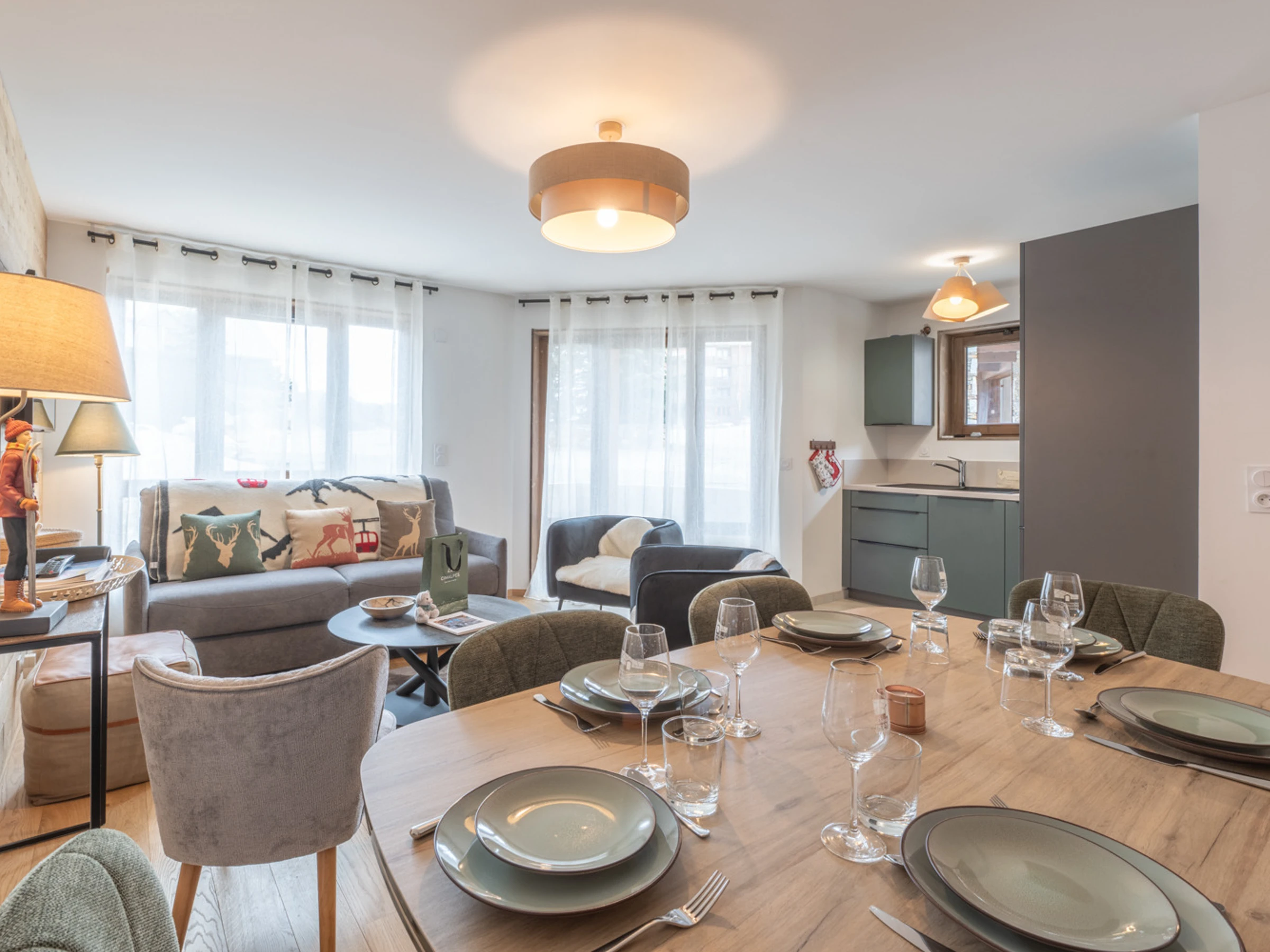 Im Herzen von Alpe d'Huez verkörpert Apartment B02 in der prestigeträchtigen Residenz Expression zeitgenössische alpine Eleganz. Das 70 m² große Erdgeschossapartment mit drei Schlafzimmern bietet ein helles und stilvolles Ambiente für bis zu sechs Gäste, inklusive einer Master-Suite. Der warme Wohnbereich, die elegante offene Küche und die hochwertige Ausstattung schaffen eine einladende Atmosphäre. Dank der Südostausrichtung genießt man hier ideales Morgenlicht. Zur Residenz gehören ein privater Skiraum, ein Tiefgaragenstellplatz und direkter Zugang zu den Pisten über den Alpe Express-Lift. Die Lage ist perfekt: In unmittelbarer Nähe befinden sich der Palais des Sports und die lebhafte Avenue des Jeux mit ihren Geschäften, Restaurants und Unterhaltungsmöglichkeiten.