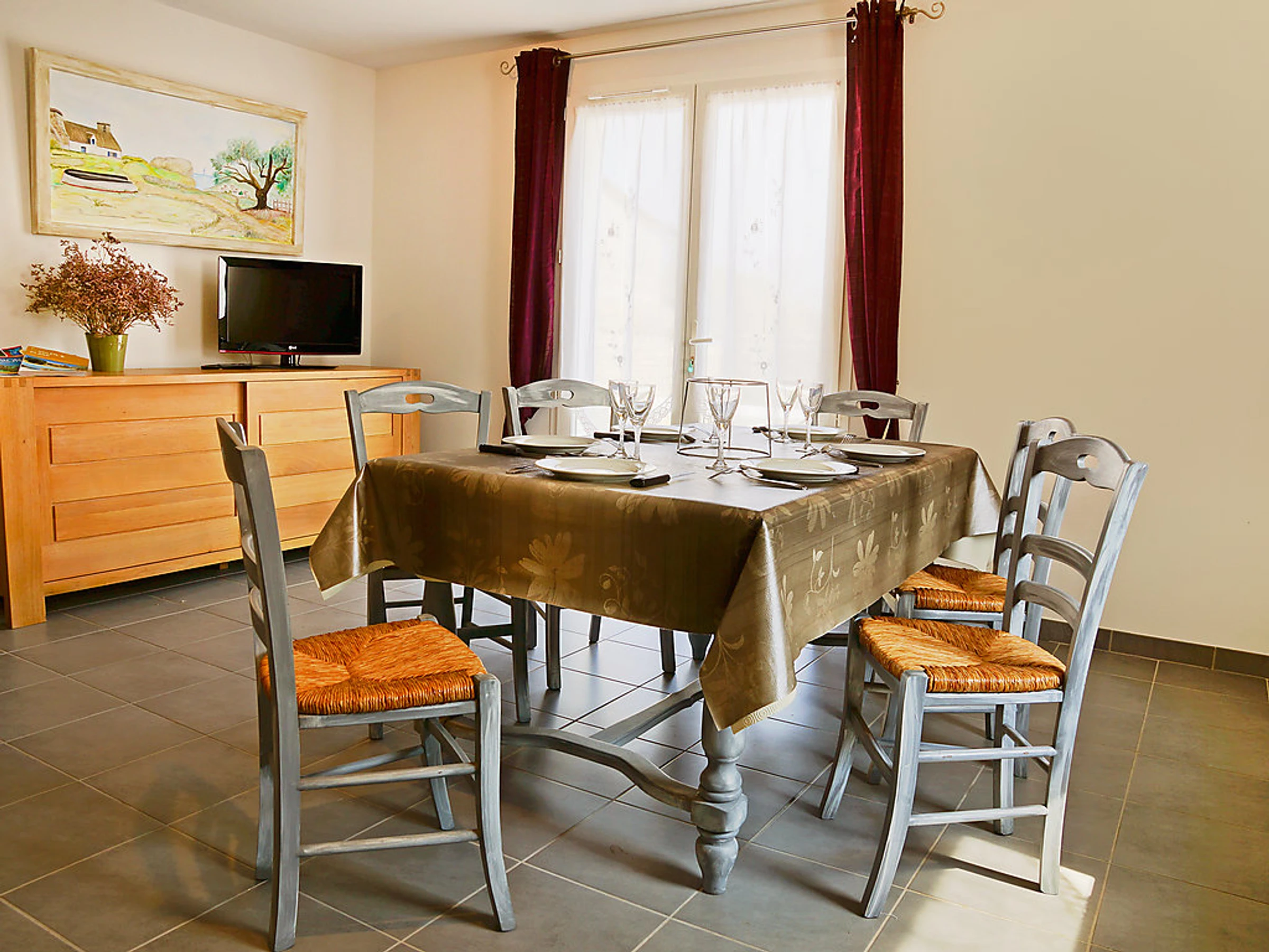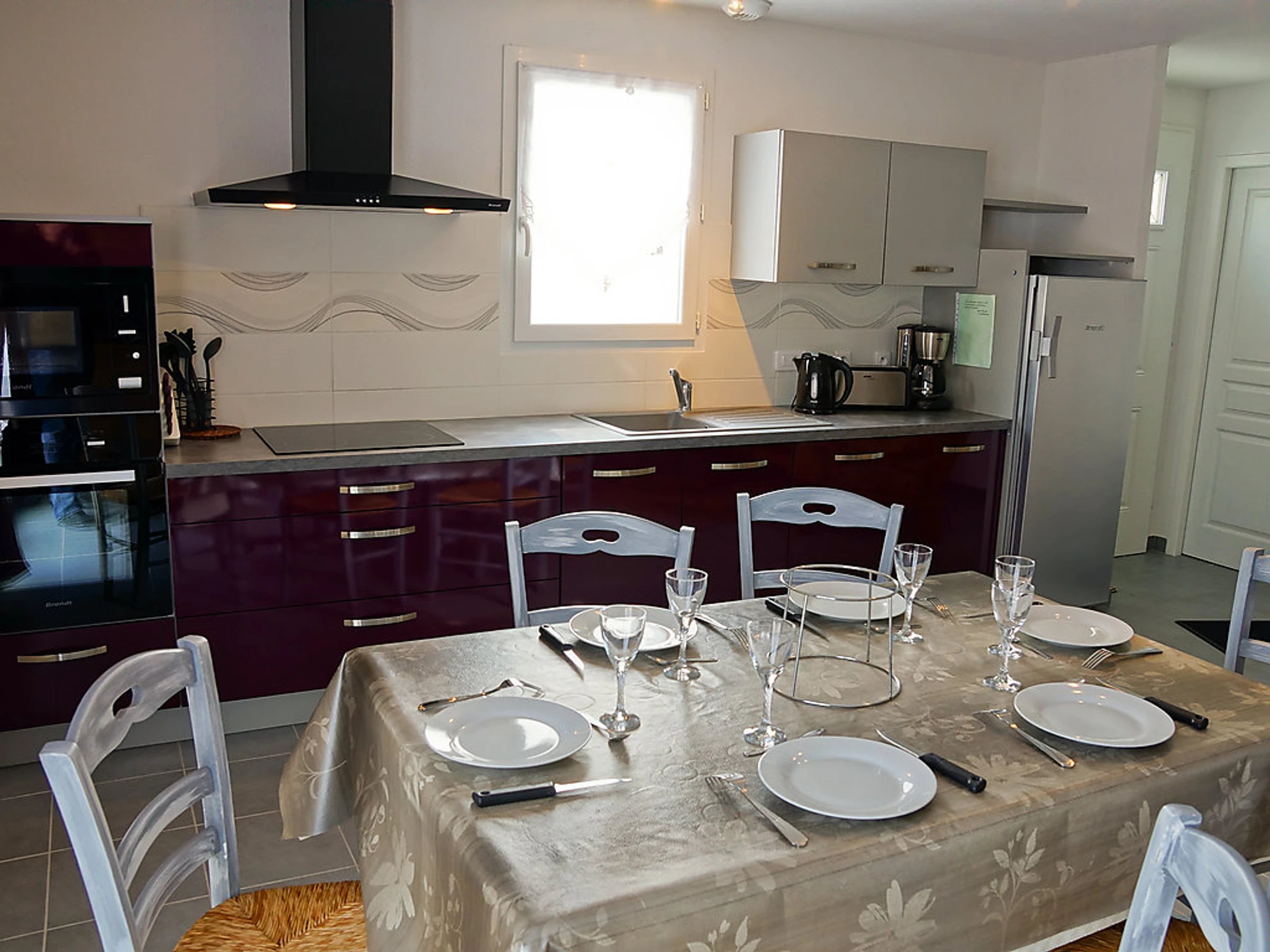 4-Zimmer-Haus 100 m2. Zweckmässig und modern eingerichtet: Wohn-/Esszimmer mit Digital-TV. Ausgang zum Garten, zur Terrasse. 1 Zimmer mit 2 Betten (90 cm). 1 Zimmer mit 1 Bett (140 cm). 1 Zimmer mit 1 Bett (140 cm), Waschbecken und Dusche. Offene Küche (4 Kochplatten, Backofen, Geschirrspüler, X Glaskeramikherd Platten, Mikrowelle, Tiefkühler). Dusche/WC, sep. WC. E-Heizung. Terrasse 20 m2. Terrassenmöbel, Gartengrill. Zur Verfügung: Waschmaschine, Bügeleisen, Babybett bis 2 Jahre, Holz (gratis). Parkplatz (eingezäunt, 2 Autos). Bitte beachten: Maximal 1 Haustier/Hund erlaubt. TV nur FR.