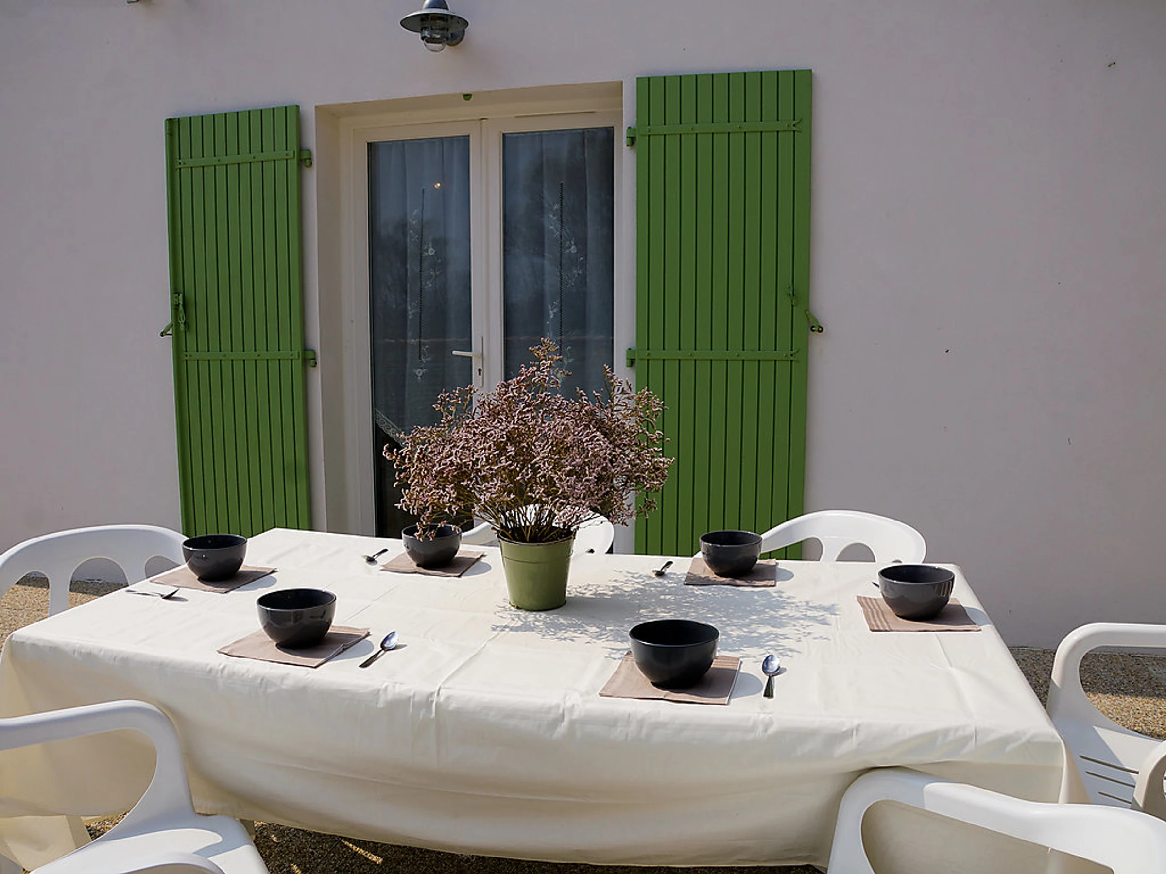 Domino 5 km von Saint-Georges d'Oléron: Einfamilienhaus "Domino", Baujahr 2010. 7 Häuser in der Residenz. Im Ort, 400 m vom Zentrum von Domino, ruhige Lage, 800 m vom Meer, 800 m vom Strand. Zur Alleinbenutzung: Grundstück 400 m2 (eingezäunt). Terrasse (20 m2), Gartenmöbel, Grill, Parkplatz (für 2 Autos) auf dem Grundstück. Lebensmittelgeschäft 400 m, Einkaufszentrum 8 km, Bäckerei 400 m, Sandstrand 800 m. Golfplatz 8 km. Bitte beachten: Fahrzeug empfohlen.