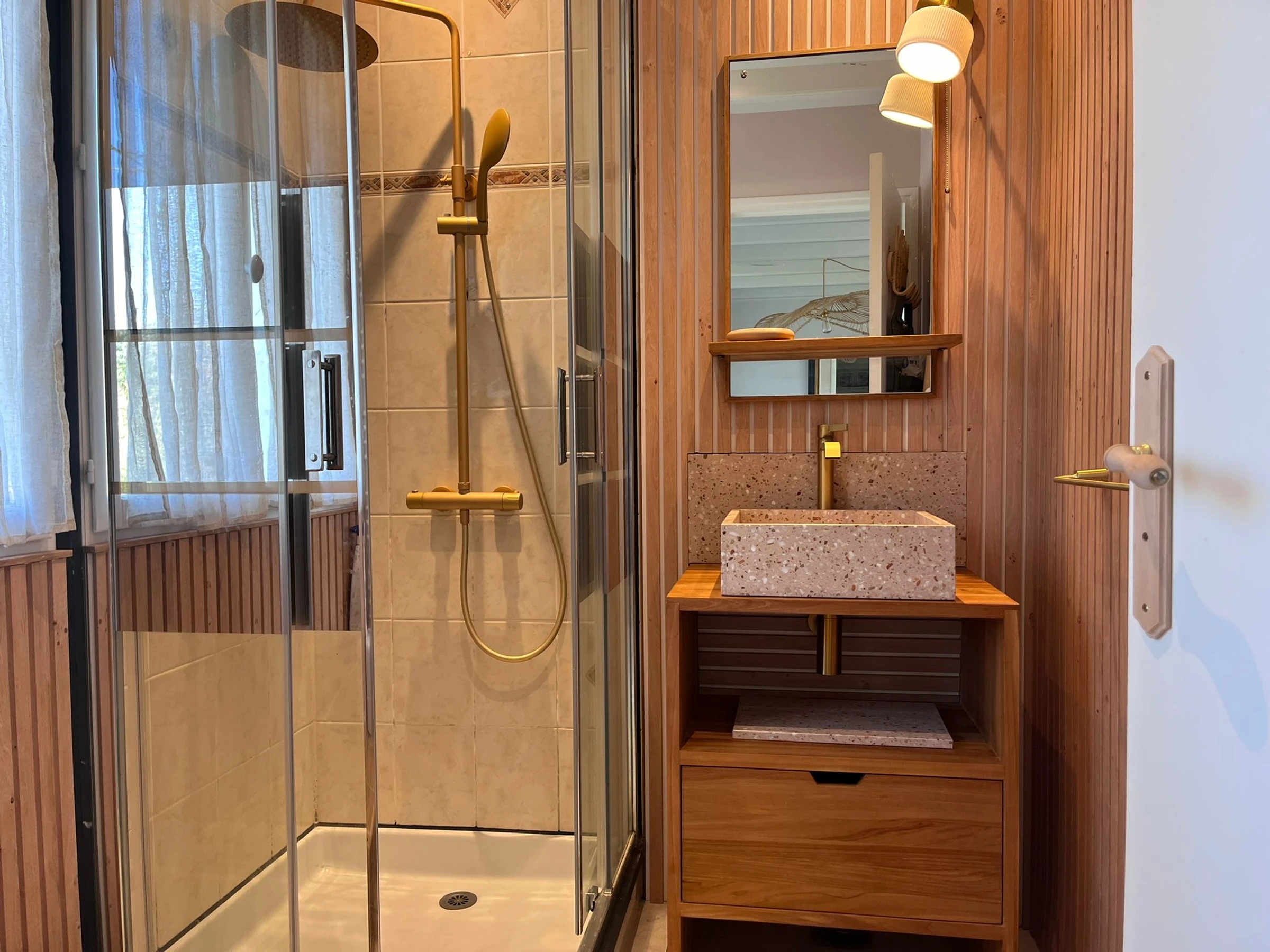 Bestehend aus: Wohnzimmer mit Küchenbereich, Duschraum mit WC im Erdgeschoss.