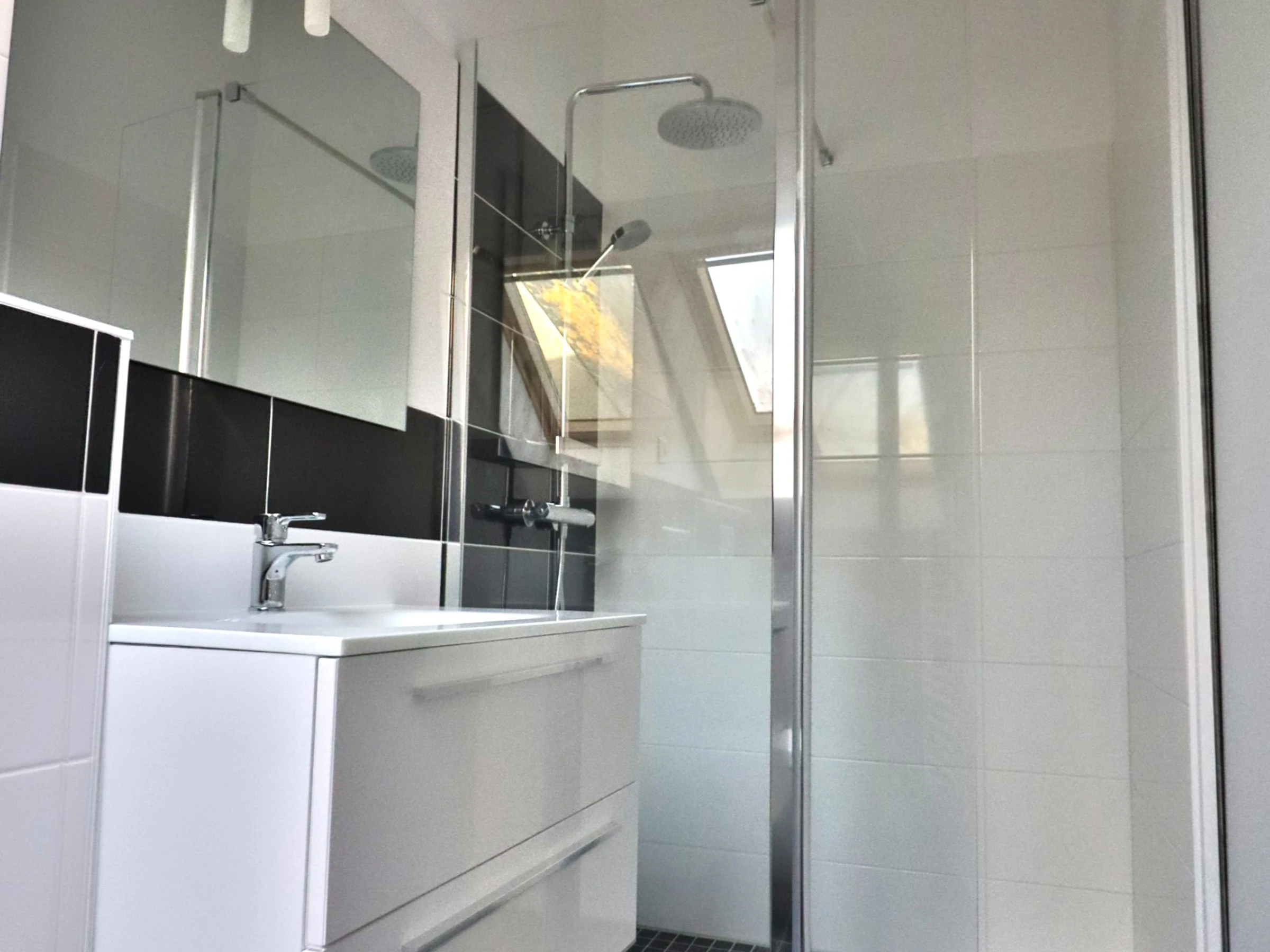 Im Dachgeschoss: 1 Schlafzimmer mit 160cm Bett, Duschbad mit WC.