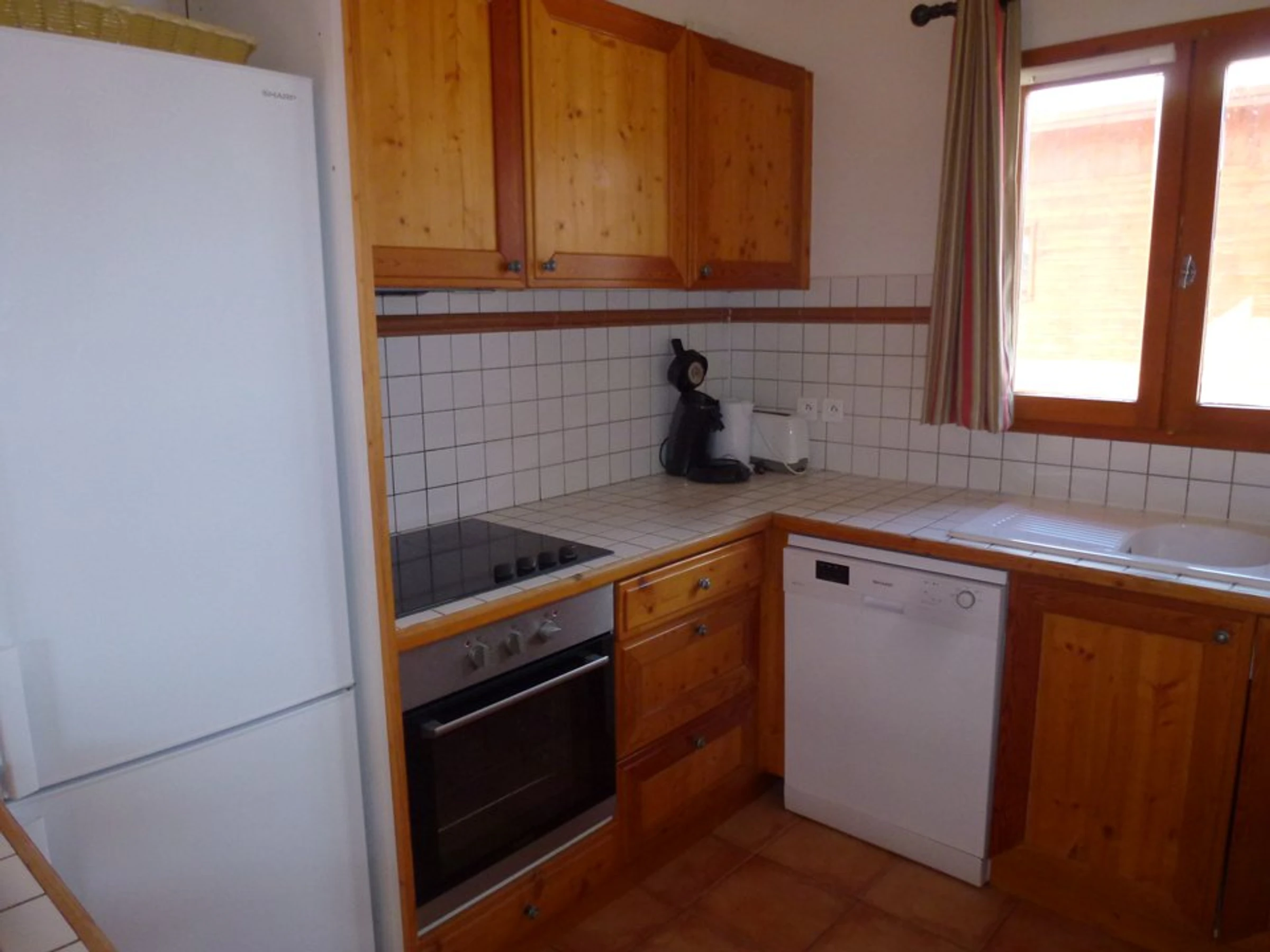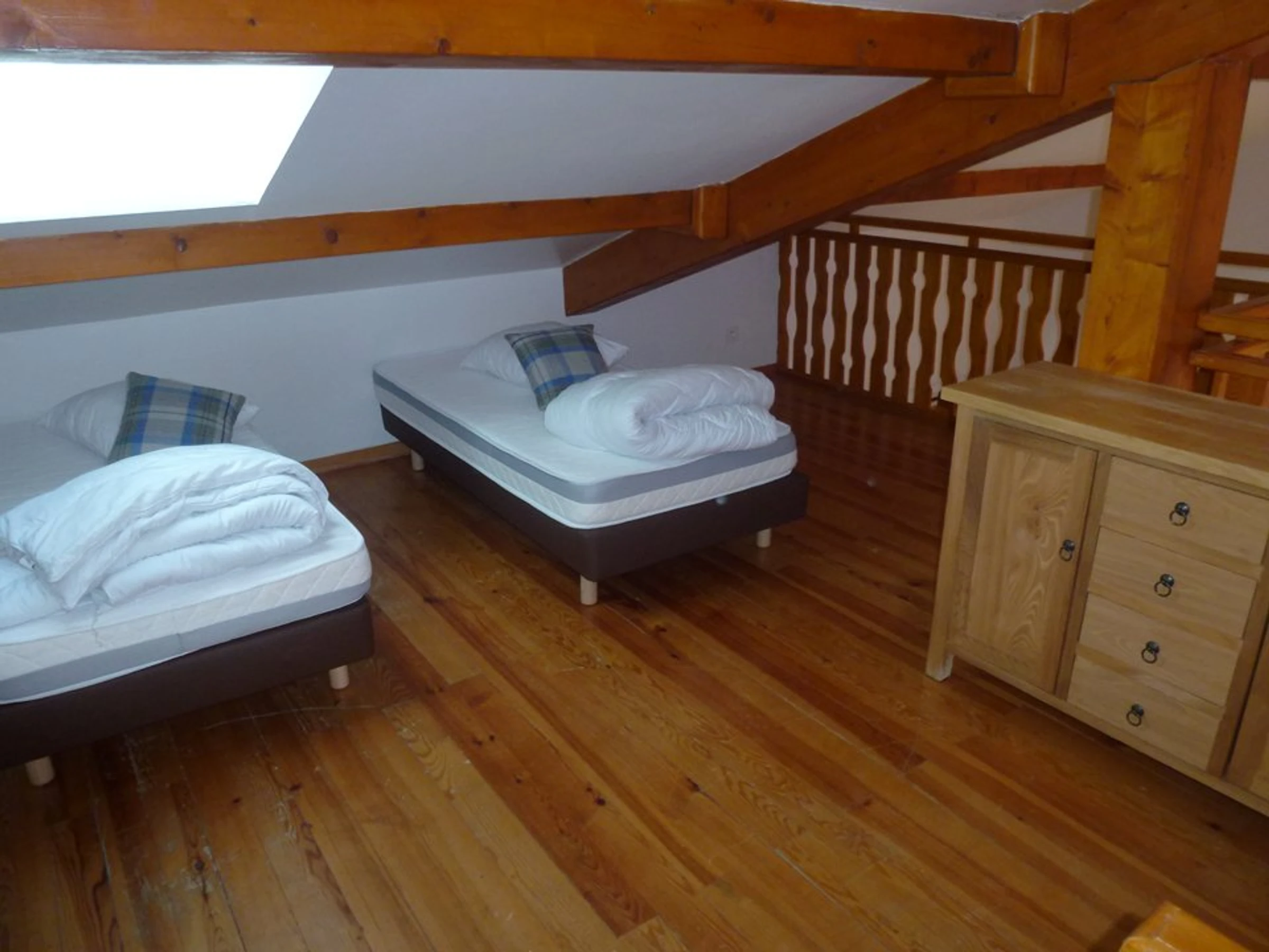 Für das Chalet: Erdgeschoss mit Wohnzimmer (Doppelschlafcouch), amerikanische Küche, Essbereich, Garage für 1 Fahrzeug, separates WC, Etage: 1 Duschbad, 1 Schlafzimmer mit 2 Einzelbetten, und im Zwischengeschoss 2 Einzelbetten. Ebene -1, 1 Doppelzimmer mit Bad WC, 1 Schlafzimmer mit 2 Einzelbetten, Duschbad WC.
