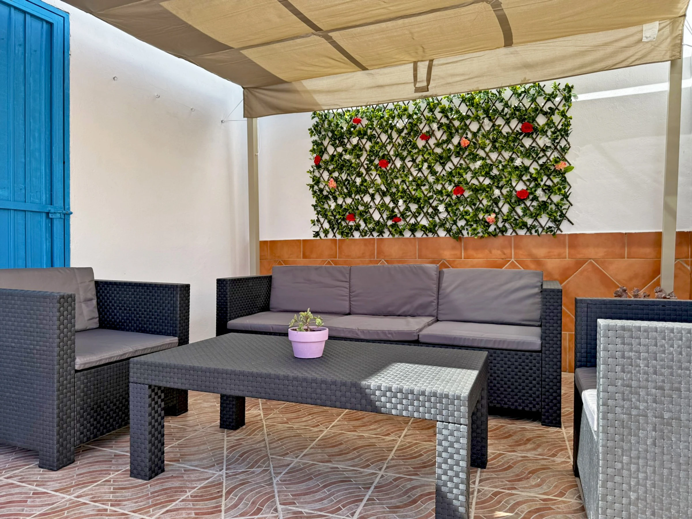 Die Unterkunft verfügt über garten, gartenmöbel, terrasse, waschmaschine, grill, kamin, bügeleisen/-brett, internet (WLAN), haartrockner, balkon, alarm, heizung, klimaanlage, 1 Fernseher.