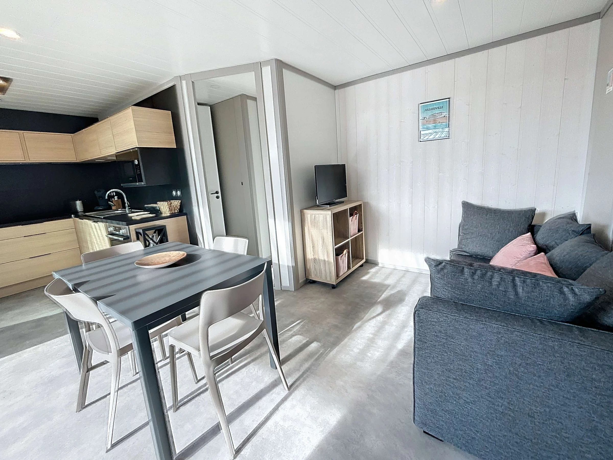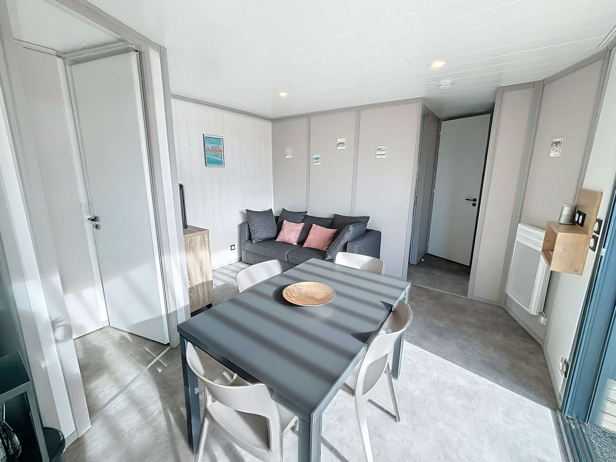 Das Apartment Scissy Plage verfügt über einen Wohnbereich mit Wohn-/Esszimmer, eine voll ausgestattete Küche, ein Hauptschlafzimmer mit einem Queensize-Bett, ein zweites Schlafzimmer mit zwei Einzelbetten, ein Duschbad und ein separates WC.