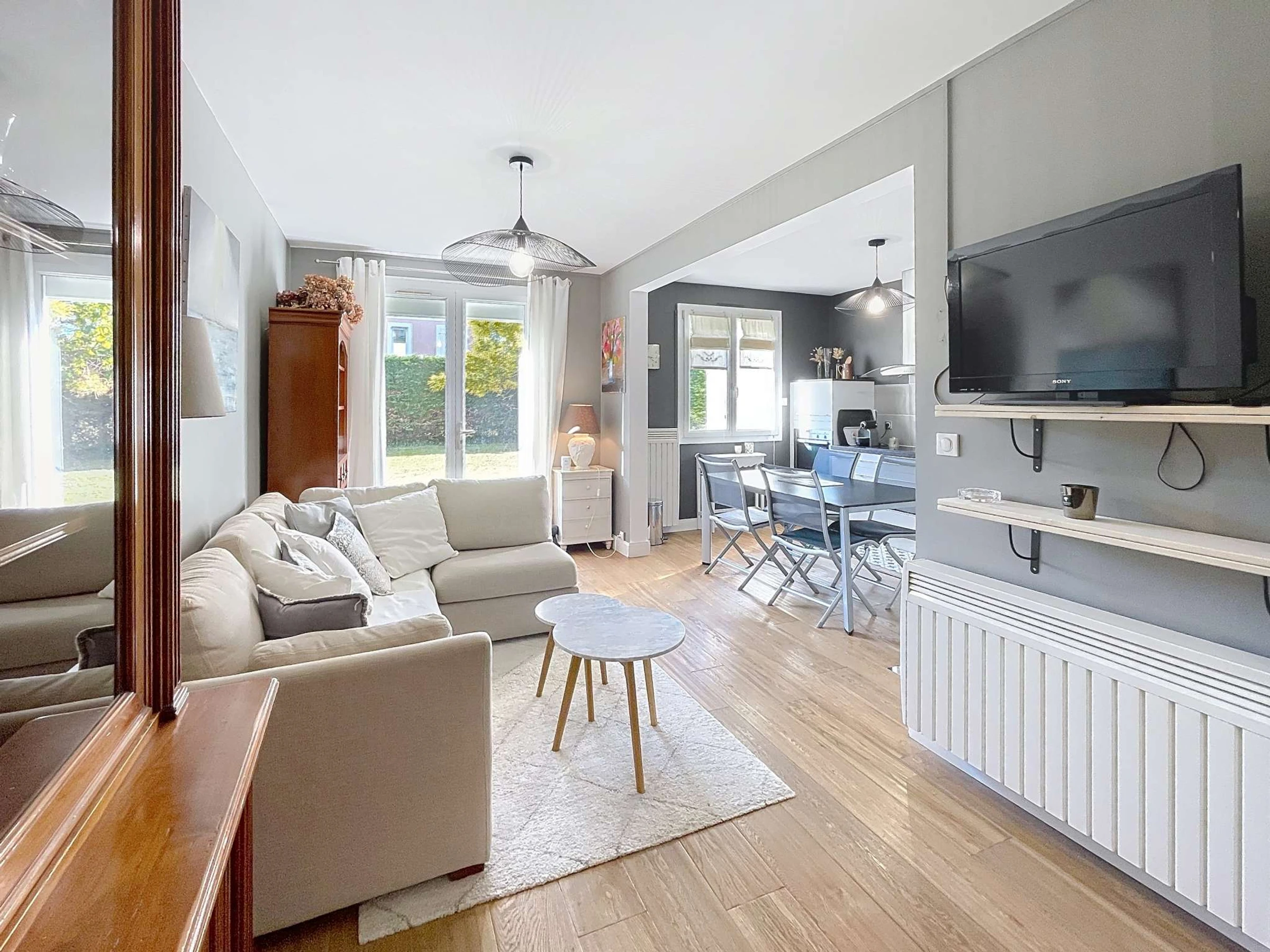 In der kleinen Residenz „VIKINGS“, nur 320 m vom Strand und 800 m von den Geschäften in Jullouville entfernt, erwartet Sie dieses Erdgeschoss-Apartment mit Garten und Terrasse. Es besteht aus einem Wohn-/Esszimmer mit TV und Zugang zur Terrasse, einer Küchenzeile (Kochfeld, Kühlschrank, Geschirrspüler), einem Schlafzimmer mit Doppelbett (140 cm), einem Badezimmer (Dusche und Waschbecken) mit Waschmaschine sowie einem zweiten Schlafzimmer mit Doppelbett (140 cm).