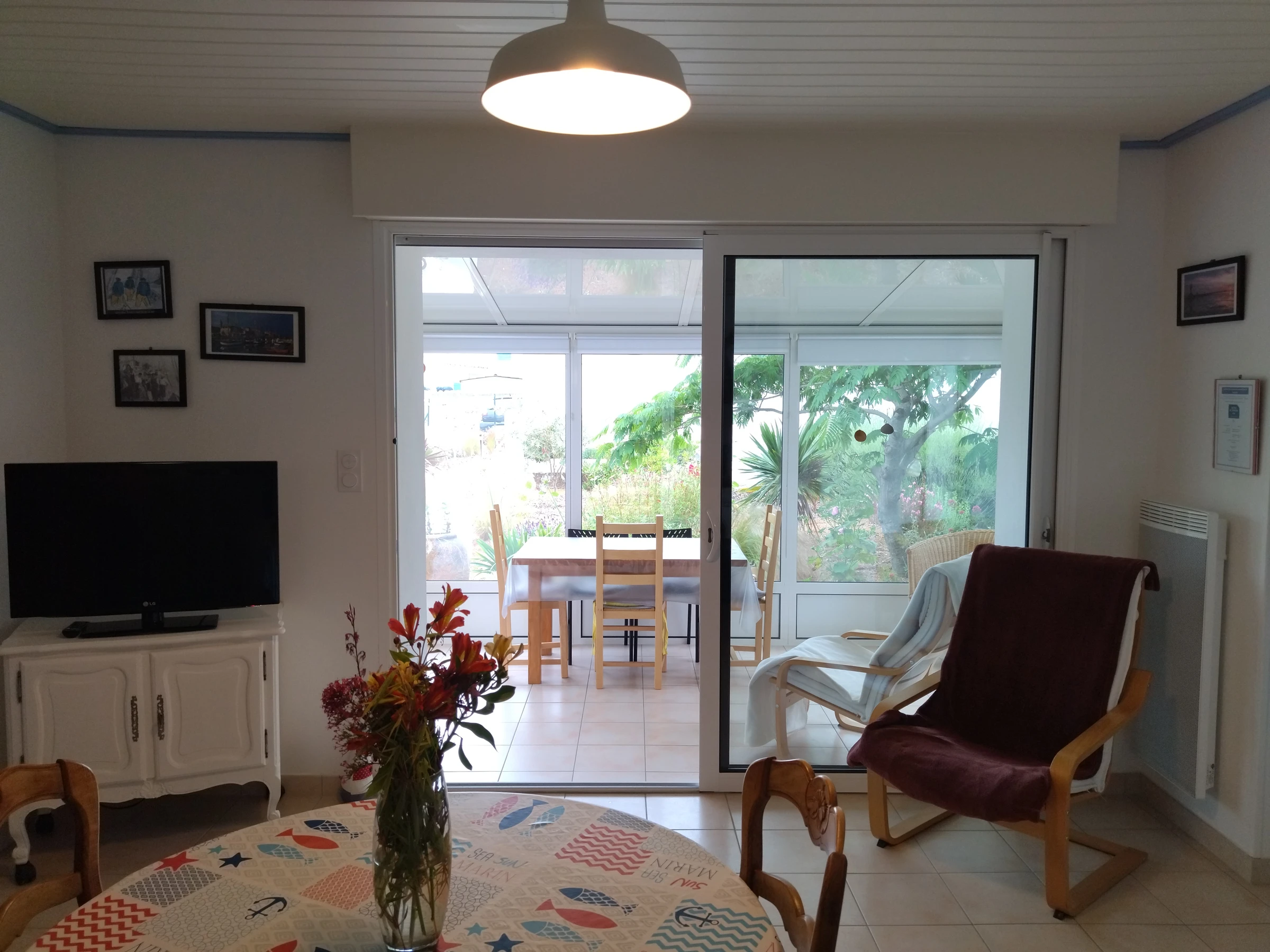 Ebenerdiges Landhaus auf der Rückseite des komfortablen Grundstücks mit Veranda – ca. 66 m2 – Ruhige Lage – 4 Personen inkl. Wohnraum mit Einbauküche – ein Schlafzimmer mit 160 cm Bett, ein Schlafzimmer mit 1 90 cm Bett & 140 cm Bett mit angrenzendem 5 m2 Gepäckraum – Duschraum – separates WC – Waschmaschine, Geschirrspüler, Mikrowelle, Flachbildfernseher – 18 m2 Garage zur Unterbringung von Fahrrädern und Brettern – Eingezäunter Blumengarten mit Terrasse & Sonnenschirm – Pergola – Gartenmöbel mit zwei Liegestühlen, Grill & Bank. Parkplatz für zwei Autos auf dem Grundstück – Haustiere nicht erlaubt – Reinigungsgebühr vorhanden: 87 €.
