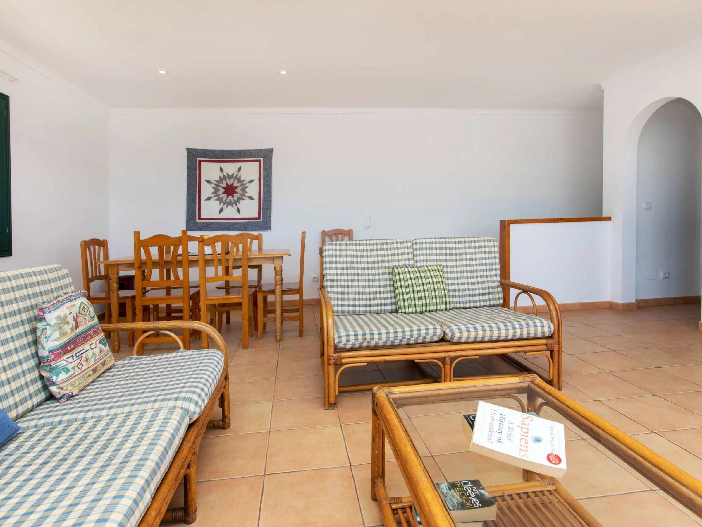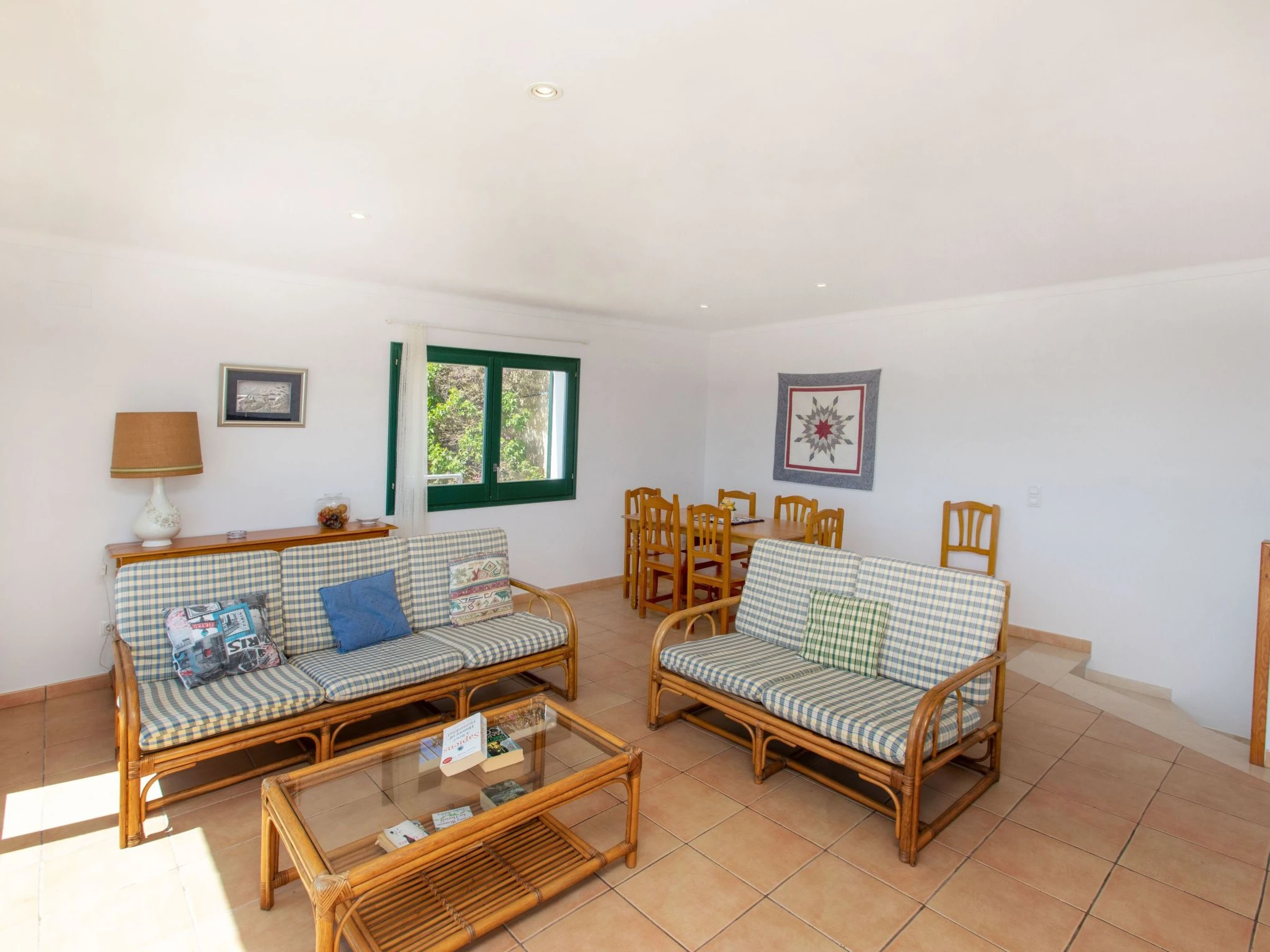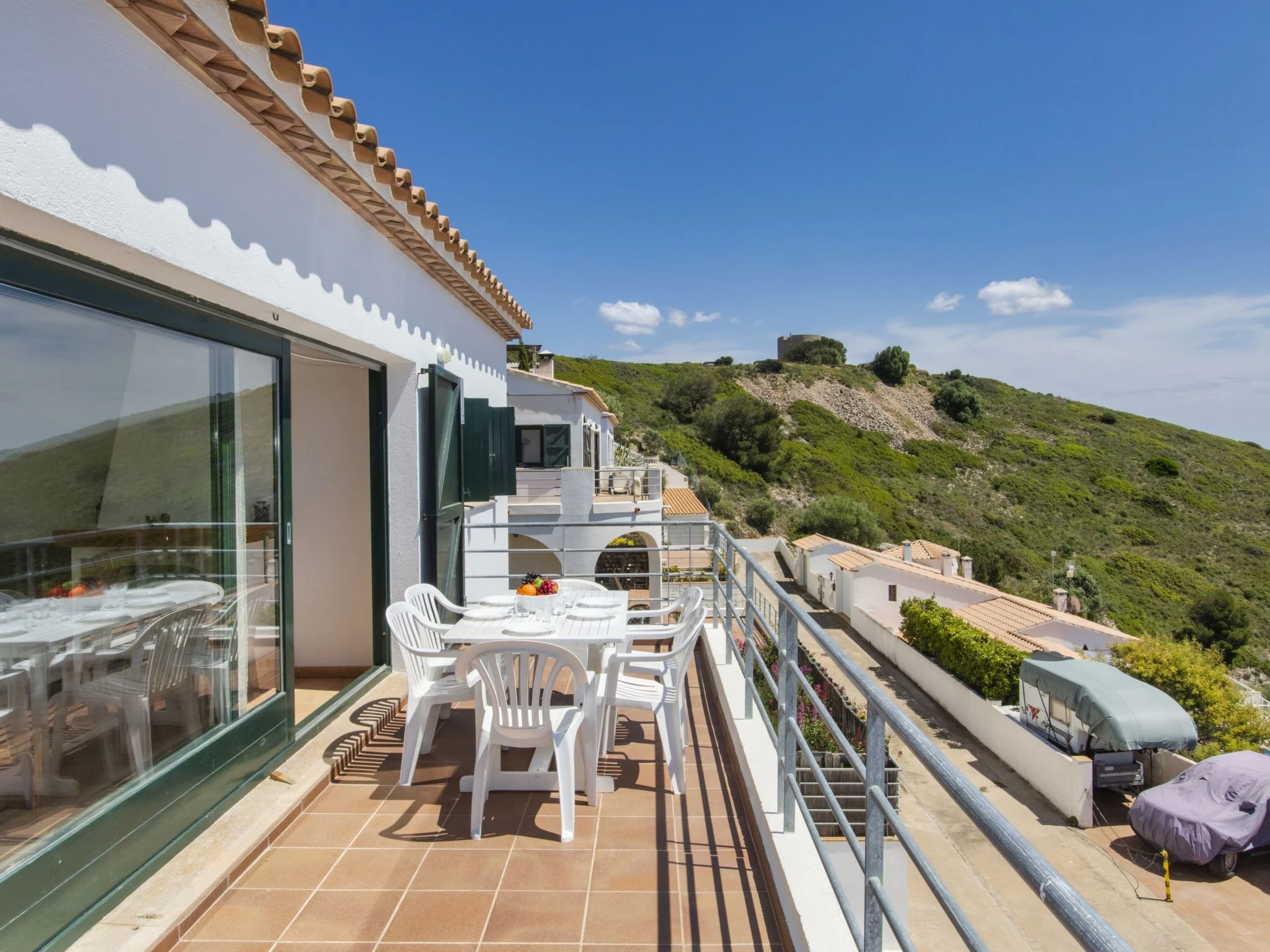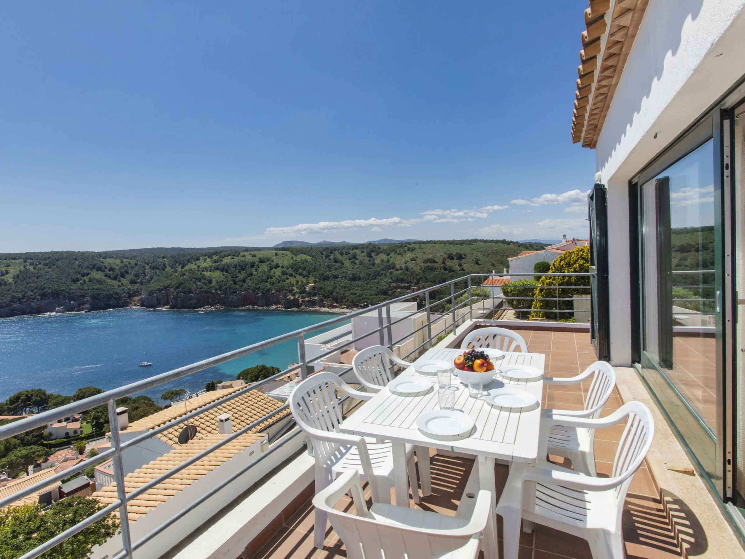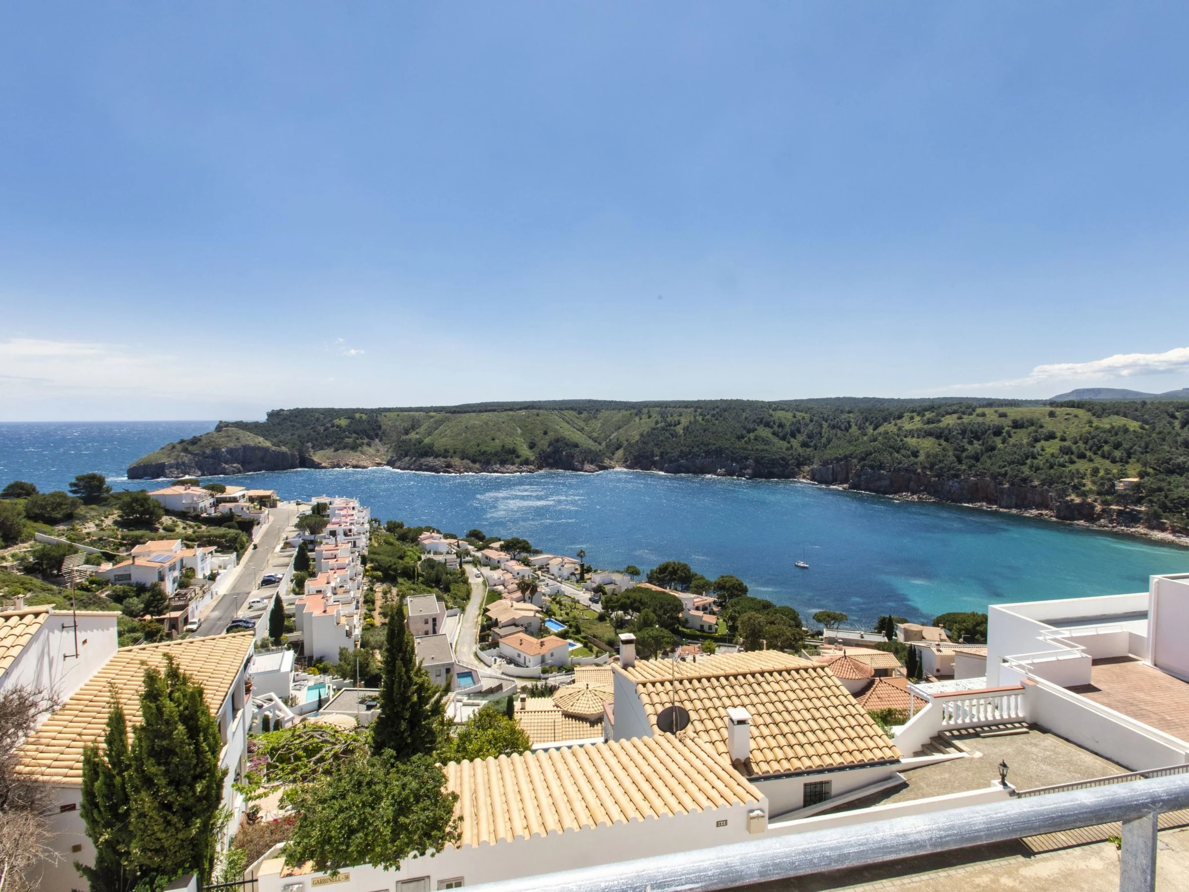 "Garbinell II", 4-Zimmer-Haus 185 m2 auf 2 Stockwerken. Zweckmässig und gemütlich eingerichtet: 1 Zimmer mit 1 franz. Bett (150 cm, Länge 200 cm). Ausgang zur Terrasse. 1 Zimmer mit 2 Betten (90 cm, Länge 190 cm). 1 Zimmer, ohne Schrank mit 2 Betten (80 cm, Länge 190 cm). Dusche/Bidet/WC. Boiler (150 Liter). Obergeschoss: Wohn-/Esszimmer mit offenem Kamin (nur Deko), Esstisch, Digital-TV und Flachbildschirm. Ausgang zur Terrasse. Küche (Backofen, Geschirrspüler, 4 Glaskeramikplatten, Toaster, Wasserkocher, Mikrowelle, Tiefkühler, elektrische Kaffeemaschine). Sep. WC. E-Heizung. Heizung nicht in allen Räumen. Terrasse 15 m2, Terrasse 11 m2 teilweise überdacht. Terrassenmöbel. Herrliche Sicht auf das Meer und die Landschaft. Zur Verfügung: Waschmaschine, Bügeleisen, Haartrockner. Bitte beachten: Nichtraucher-Haus. TV nur ES. [hidden] // Reg. Nr.: ESFCTU00001701000029214500000000000000[hidden]-548