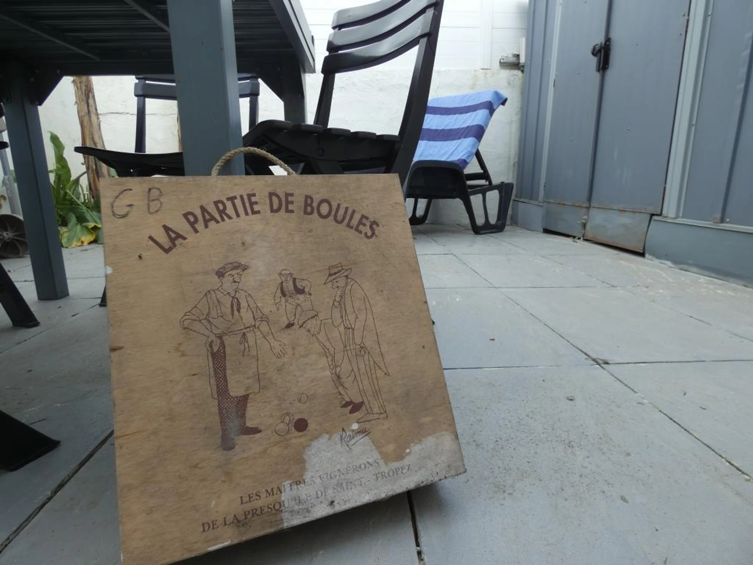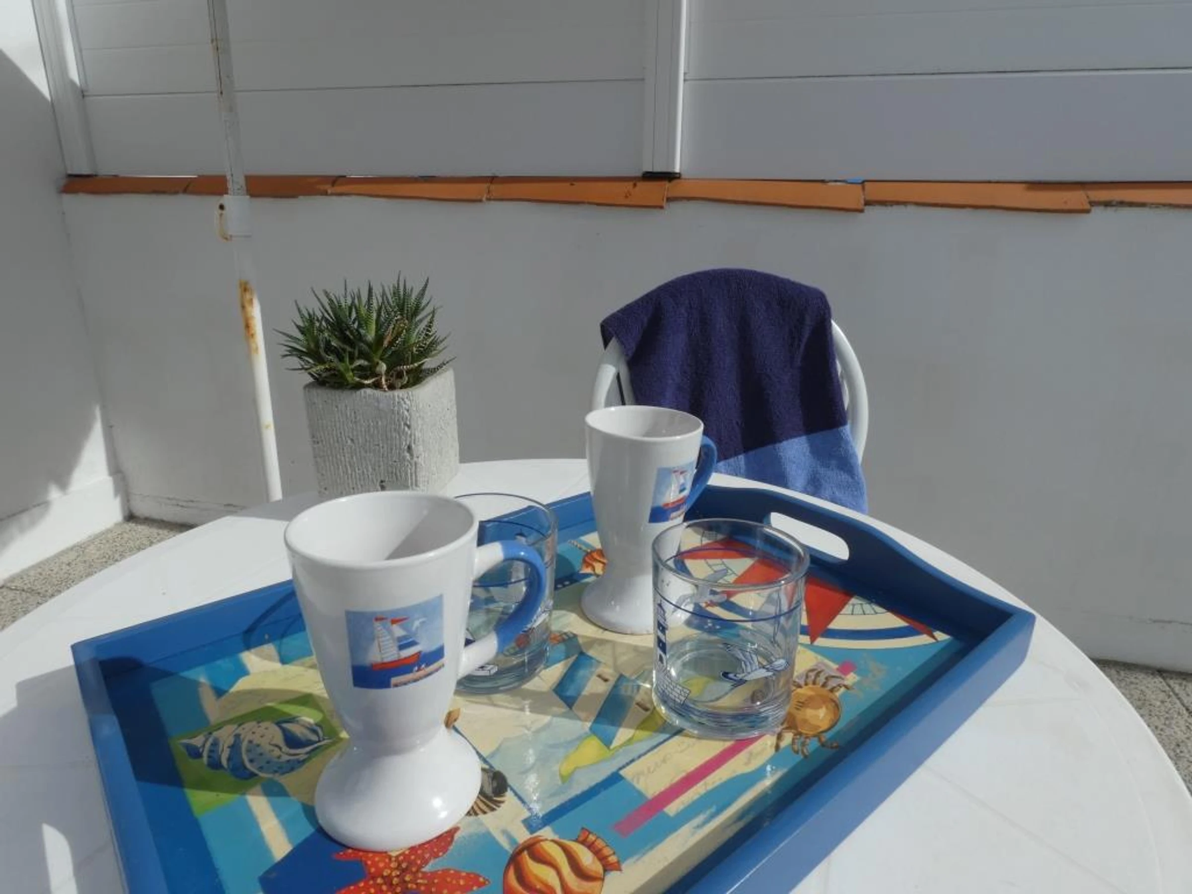 - Eine Nordterrasse mit einem Tisch und 4 Stühlen, einem Gasgrill, zwei Liegestühlen und einem Spielbrett, einen Sonnenschirm. Angenehme Terrasse, die vor Blicken geschützt ist.
