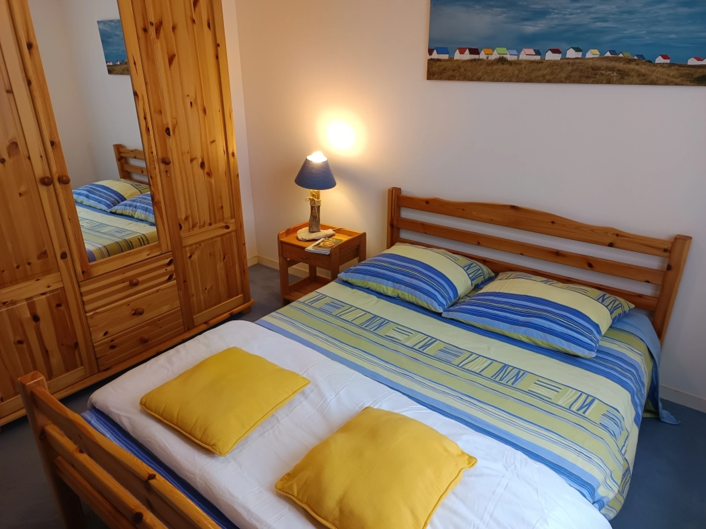 Das Haus verfügt über drei Schlafzimmer (zwei im Erdgeschoss und eines im Zwischengeschoss) und bietet insgesamt 6 Schlafplätze (2 Doppelbetten und 2 Einzelbetten). Ein Badezimmer mit Dusche und ein WC vervollständigen die Innenausstattung. Individuelle Elektroheizung und Warmwasserbereitung über einen elektrischen Warmwasserspeicher.