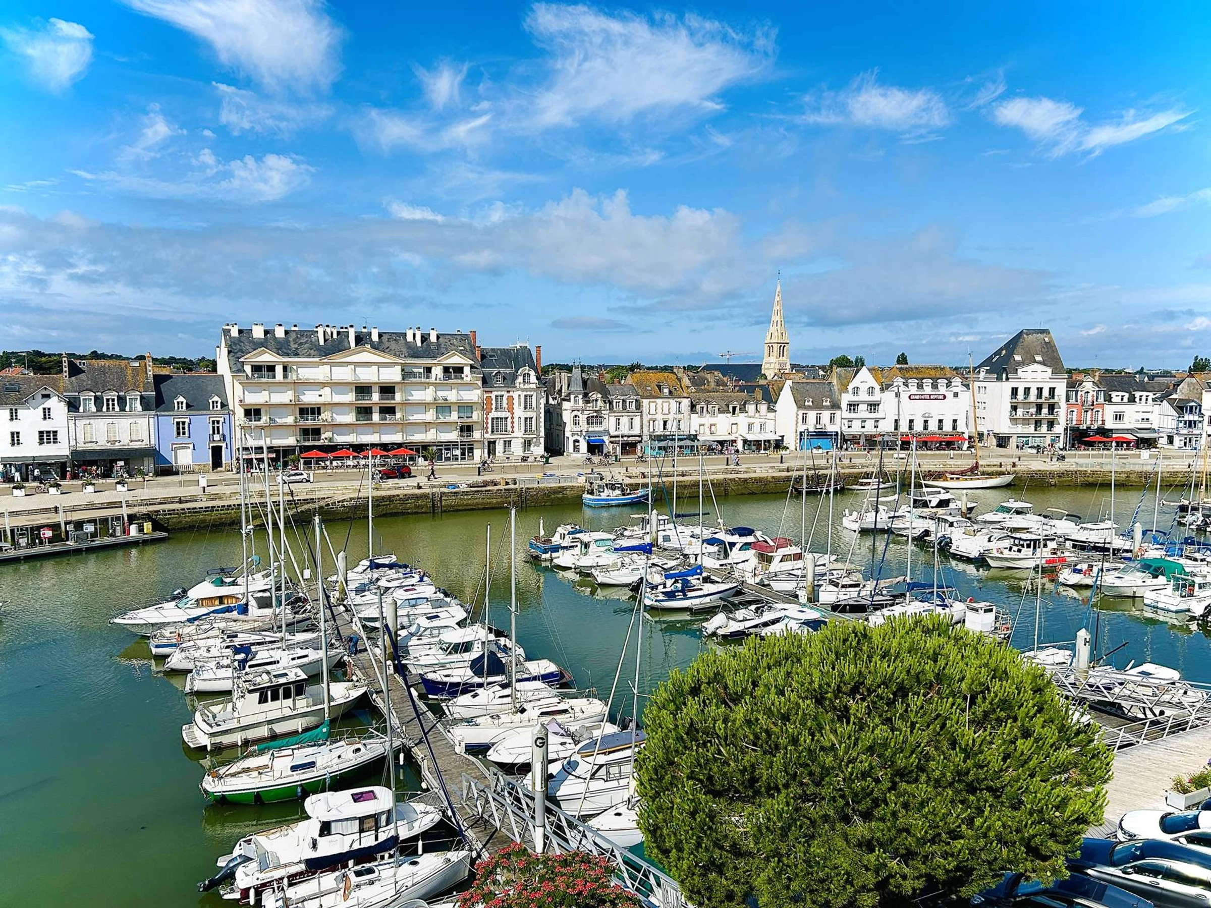 Die Highlights dieser Ferienwohnung am Strand: Genießen Sie im obersten Stockwerk einer Residenz mit Aufzug den Blick auf den Hafen von Le Pouliguen. Entspannen Sie auf der Terrasse mit Blick auf den Yachthafen und das Meer. Die Wohnung bietet Platz für bis zu 8 Personen. Ideal für große Familien oder Gruppen von Freunden.