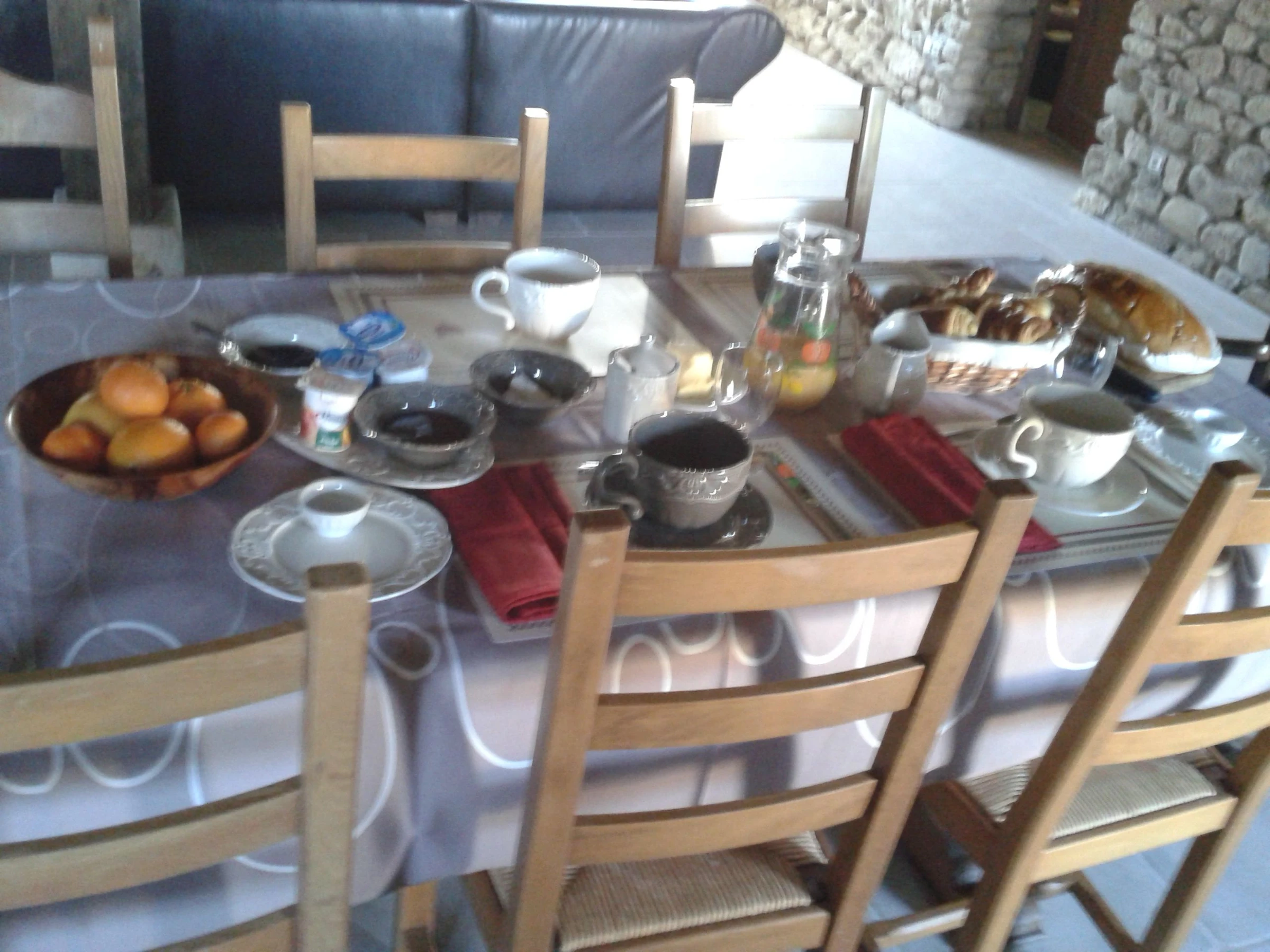 Frühstück mit hausgemachten Marmeladen und Kuchen.