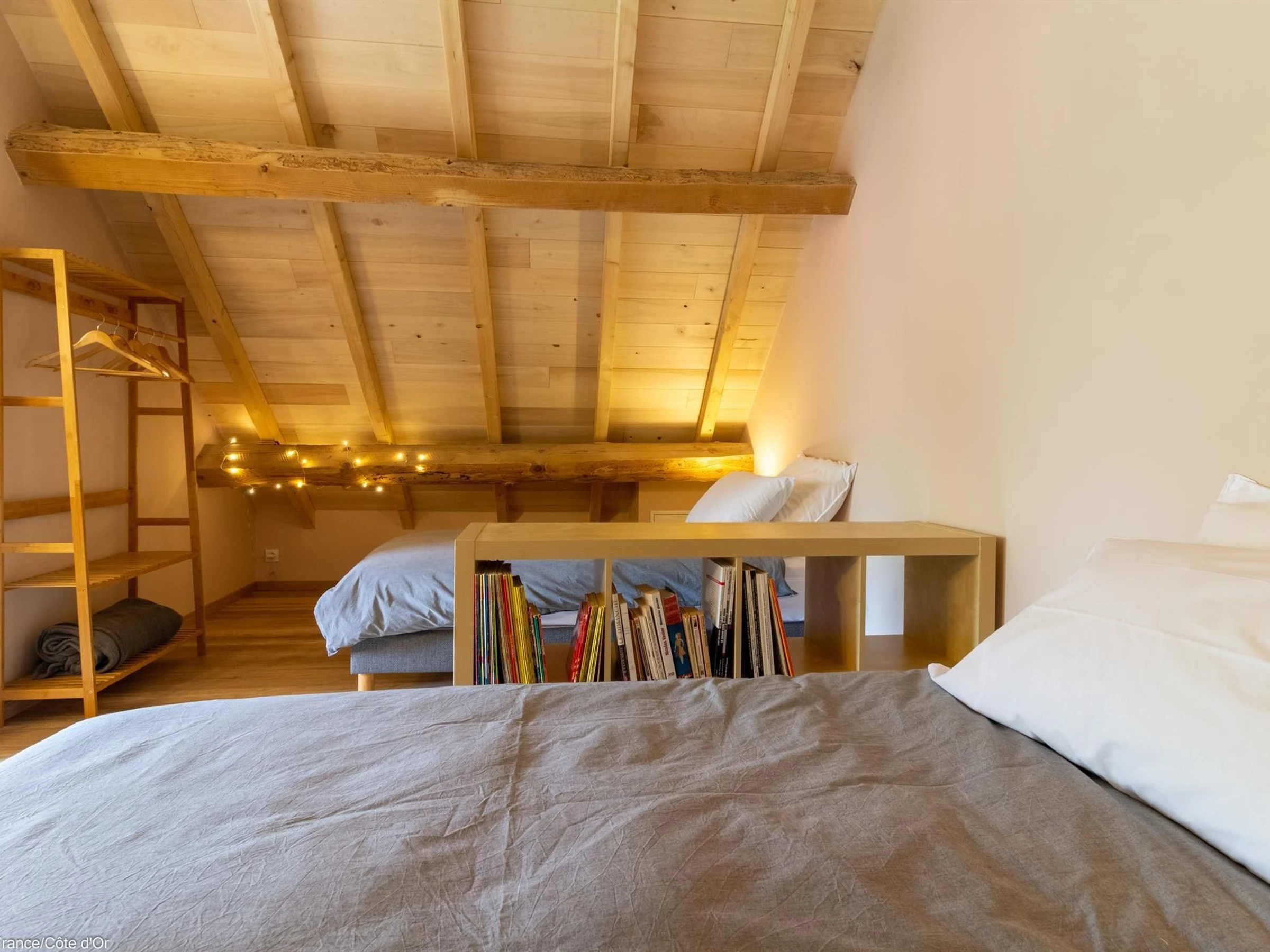 In diesem wunderschönen, mit großer Sorgfalt renovierten Gebäude mit Charakter werden Sie den Charme und Komfort dieser geräumigen und harmonischen Zimmer in sanften Farben und mit hübscher Einrichtung zu schätzen wissen. Liebhaber alter Steine, Authentizität und Raffinesse werden begeistert sein. Es stehen 5 Zimmer zur Verfügung, darunter zwei Familienzimmer und 1 Suite. Für Ihren Komfort sorgt ein schönes Wohnzimmer mit einer großen Bibliothek. Das Frühstück wird im Speisesaal oder bei schönem Wetter im umzäunten, von Bäumen gesäumten Garten serviert. Es stehen frische, regionale und hausgemachte Produkte zur Verfügung. Unterkunft mit der Kennzeichnung „Green Key“ und „Accueil Vélo“. Fahrradverleih. Parken im durch ein Tor abgeschlossenen Hof. Fahrradaufbewahrung in einem geschlossenen Schuppen. Restaurant im Dorf. Autobahnausfahrt A38, Anschlussstelle Nr. 30 in Pont-de-Pany. Im Anbau des Eigentümerhauses, im Erdgeschoss, mit separatem Zugang, hübsches Schlafzimmer für 2 Personen mit einem 160x200 cm großen Bett. Offenes Duschbad und separates WC. Ausgestattete Küche zur gemeinsamen Nutzung mit dem Zimmer „Les 3 Vallées“. WLAN-Zugang.