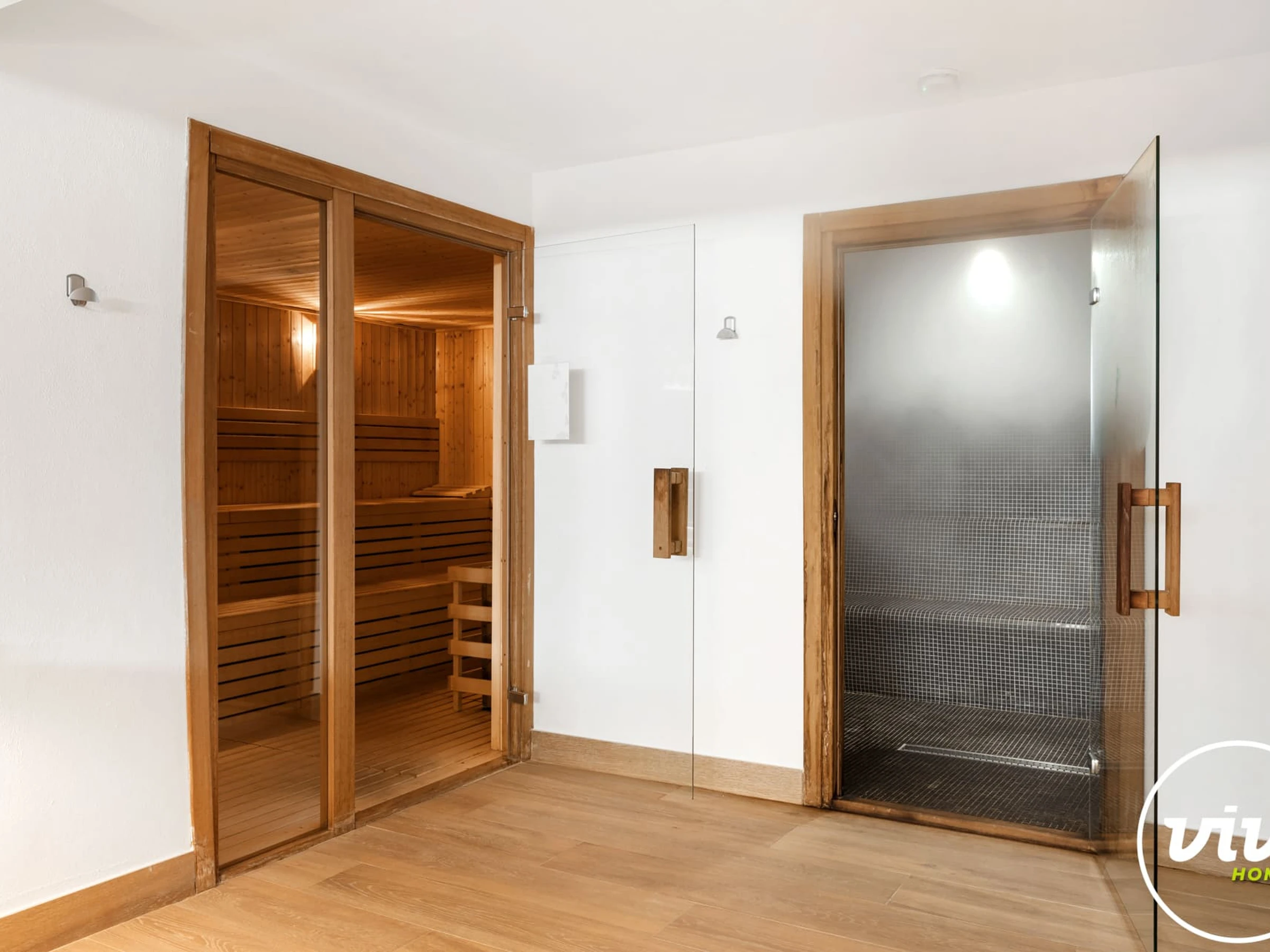 Die Unterkunft verfügt über aufzug, gartenmöbel, umzäuntes grundstück, 18 m² terrasse, waschmaschine, trockner, bügeleisen/-brett, safe, internet (WLAN), haartrockner, balkon, fitnessraum, spa, zentralheizung, klimaanlage in der ganzen unterkunft, swimming-pool gemeinschaftlicher swimming-pool, klimatisierter pool gemeinschaftlicher swimming-pool, garage in auf dem grundstück, 1 Fernseher.