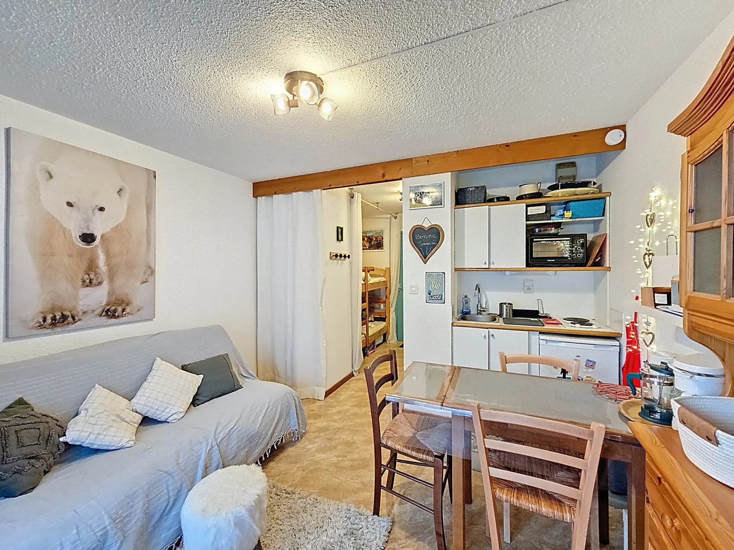Eingangsbereich mit Schlafbereich (zwei Etagenbetten, 90 x 190 cm), Badezimmer mit separatem WC, helles Wohnzimmer mit voll ausgestatteter Küchenzeile und Schlafcouch (140 x 190 cm).