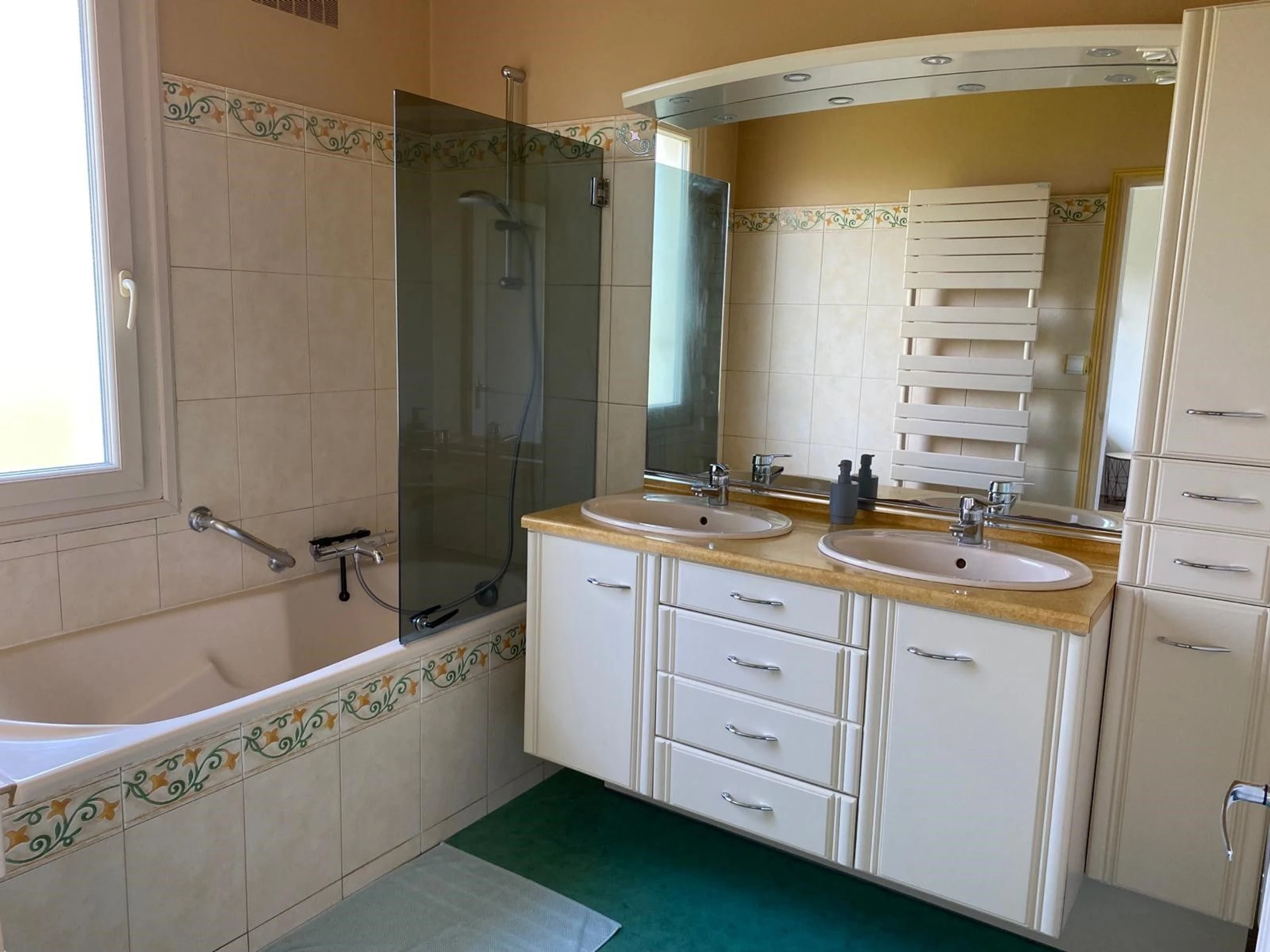 Im Erdgeschoss: ein Wohnzimmer von 40 m2 mit TV-Loungebereich, Esszimmer. Einbauküche (Geschirrspüler, Kühlschrank mit Gefrierfach, Backofen, Mikrowelle). 1 Schlafzimmer mit 2 90x200 Betten, 1 Schlafzimmer mit 2 90x200 Betten. Badezimmer mit Badewanne und Doppelwaschbecken. 1 unabhängige Toilette.