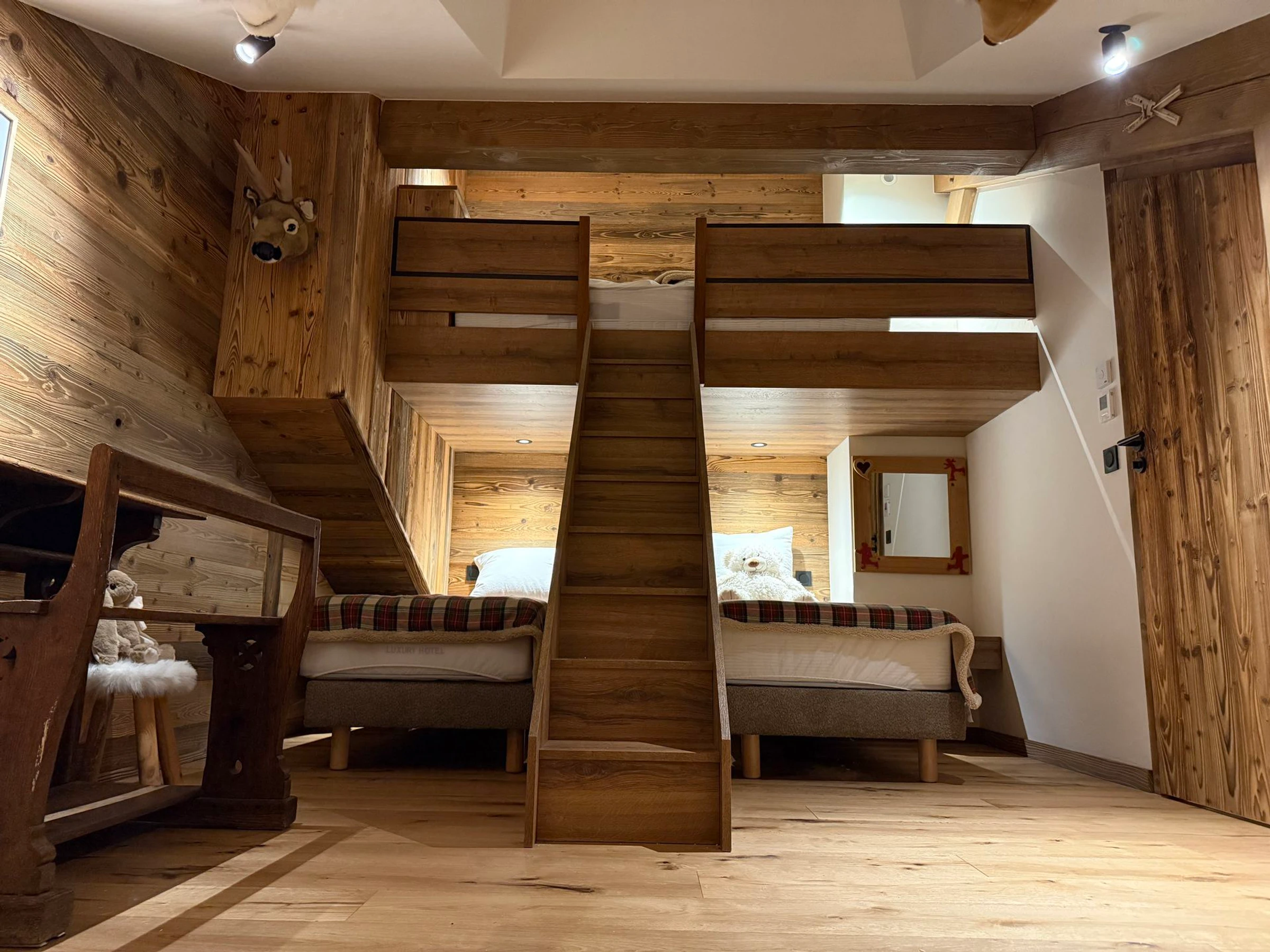 Im Erdgeschoss: Eingang mit Garderobe, Helmablage, Safe, Schuhregal – Keller (4,20 m²) mit Waschmaschine und Trockner – WC (1,50 m²) – Großes Wohnzimmer (42,50 m²), sehr hell, mit Tisch für 12 Personen, atemberaubender Blick auf die Massive Aiguille, Beauregard und Balme, Sitzecke mit Ecksofa, Kamin, TV, zum Wohnzimmer offene, ausgestattete Küche mit Mittelinsel: Kühlschrank mit Gefrierfach (280 l), Backofen, Mikrowelle, Kochfeld mit Dunstabzugshaube, Geschirrspüler, Wasserkocher, Nespresso, Toaster, Raclette-Gerät, Fondue-Maschine, Crêpe-Maker – Terrasse (45,2 m²), Ost-Süd- und Südbalkon: Gartenmöbel und Tisch im Sommer. Im ersten Stock: Separates WC (1,80 m²) - Badezimmer (5,20 m²) mit Badewanne, Doppelwaschbecken, Spiegel, Handtuchwärmer und Nordfenster - Schlafzimmer 1 (9,50 m²) mit 160 cm Doppelbett, TV, Schränken/Garderobe, Zugang zum gemeinsamen Südbalkon mit Berg- und Skipistenblick - Schlafzimmer 2 (13,30 m²) mit 160 cm Doppelbett, TV, privatem Duschraum mit Waschbecken, Spiegel, Handtuchwärmer und Dusche, Schränken/Garderobe, Zugang zum gemeinsamen Südbalkon mit Berg- und Skipistenblick - Schlafzimmer 3 (12,40 m²) mit zwei 90 cm Betten, die zu einem Doppelbett zusammengeschoben werden können, Nordfenster, TV, privatem Duschraum mit Waschbecken, Spiegel, Handtuchwärmer und Dusche, Schränken/Garderobe. Im zweiten Stock: Schlafzimmer 4 (11,90 m², davon 2,20 m² <1,80 m) mit 160 cm breitem Doppelbett, TV, eigenem Bad mit Waschbecken, Spiegel, Handtuchwärmer und Dusche, Schränken/Garderobe, Dachfenster – WC (1,60 m², davon 0,70 m² <1,80 m) – Kinderschlafsaal (19,90 m², davon 9,50 m² <1,80 m) mit zwei 80 cm breiten Betten und einem 140 cm breiten Bett im Zwischengeschoss, Spielbereich, Dachfenster, Abstellraum.