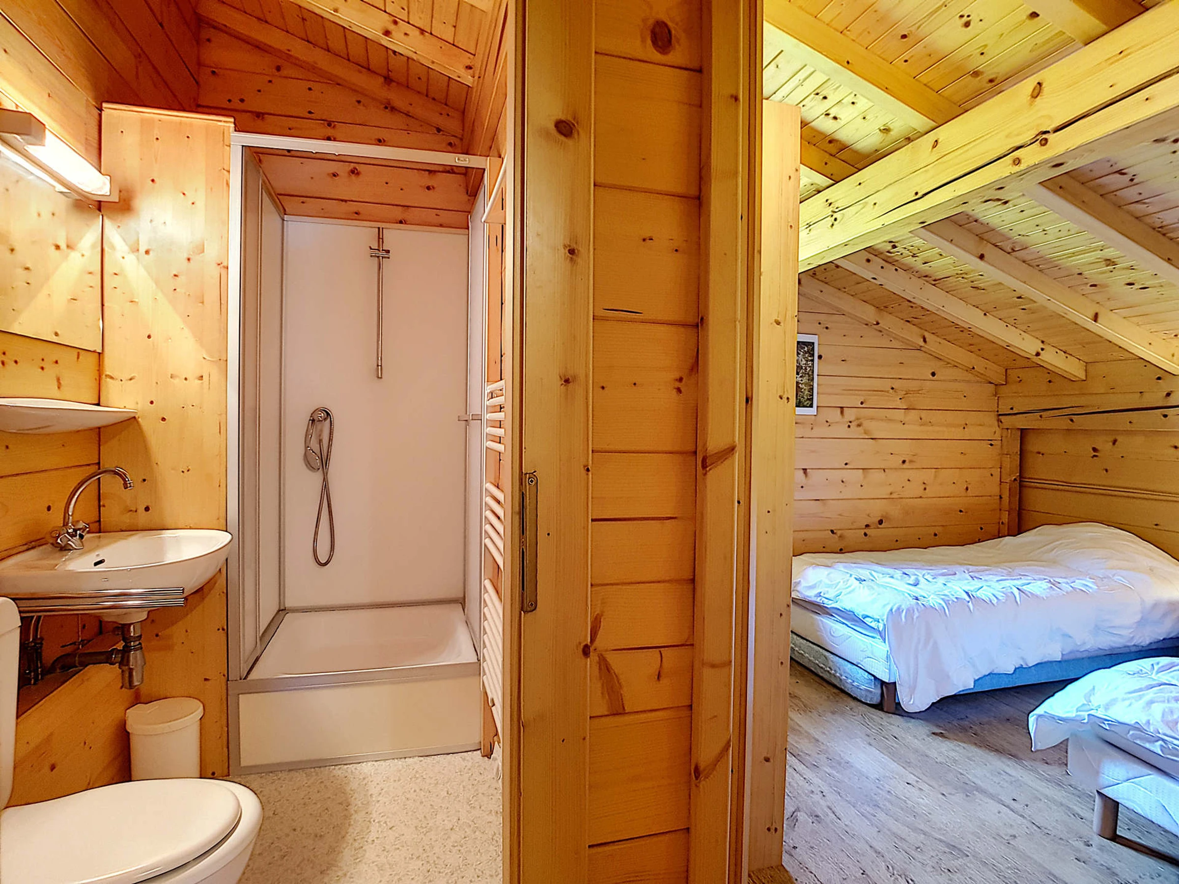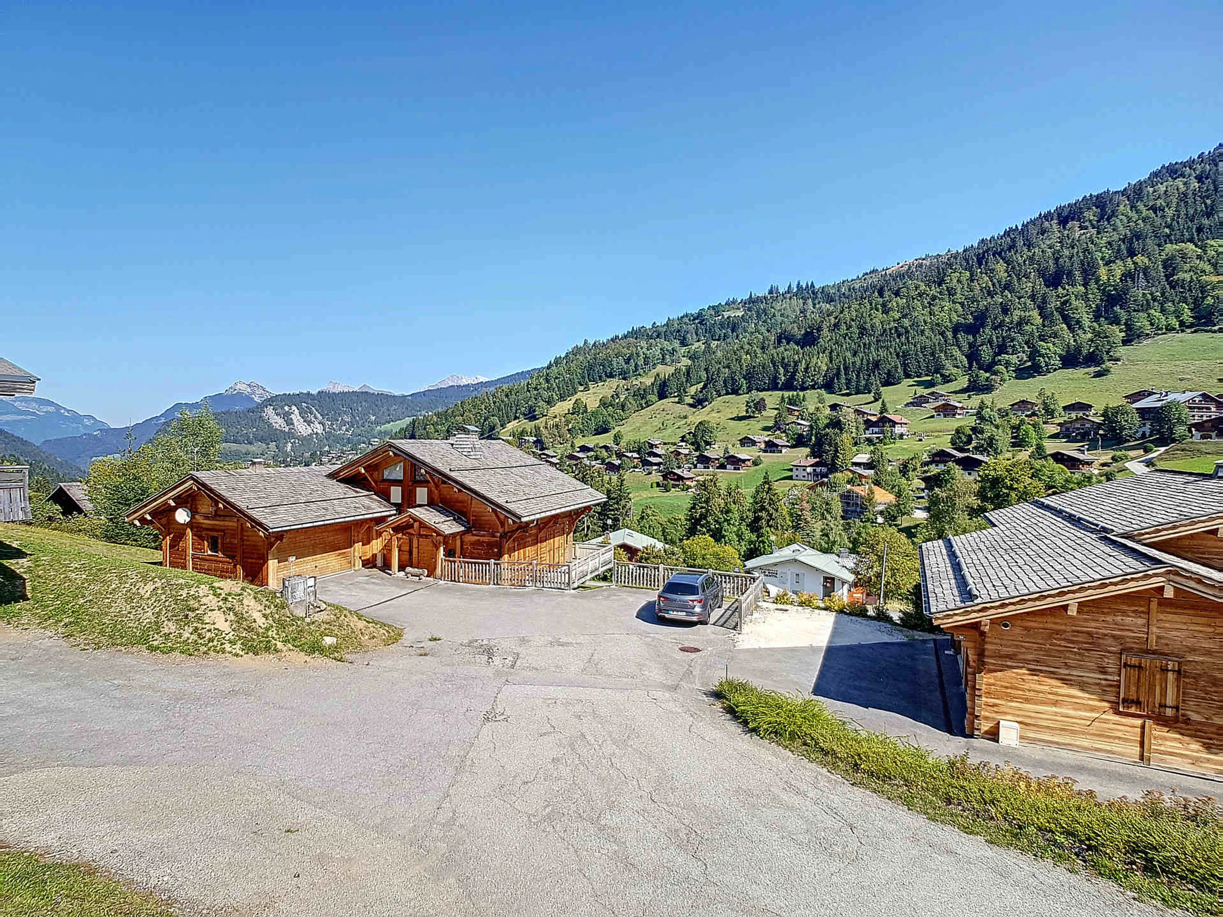 Doppelhaushälfte im Aravis-Tal, einem Ort namens „Les Converses“, 2,5 km vom Ortszentrum entfernt, erreichbar mit einem kostenlosen Skibus. Am Fuße des grünen Hangs von Envers hinter Beauregard und Joux et Laquais gelegen, der den Zugang zu allen Bergmassiven des Resorts ermöglicht. 400 m vom Telemix Etale und Transval entfernt, der das Aiguille-Massiv verbindet.