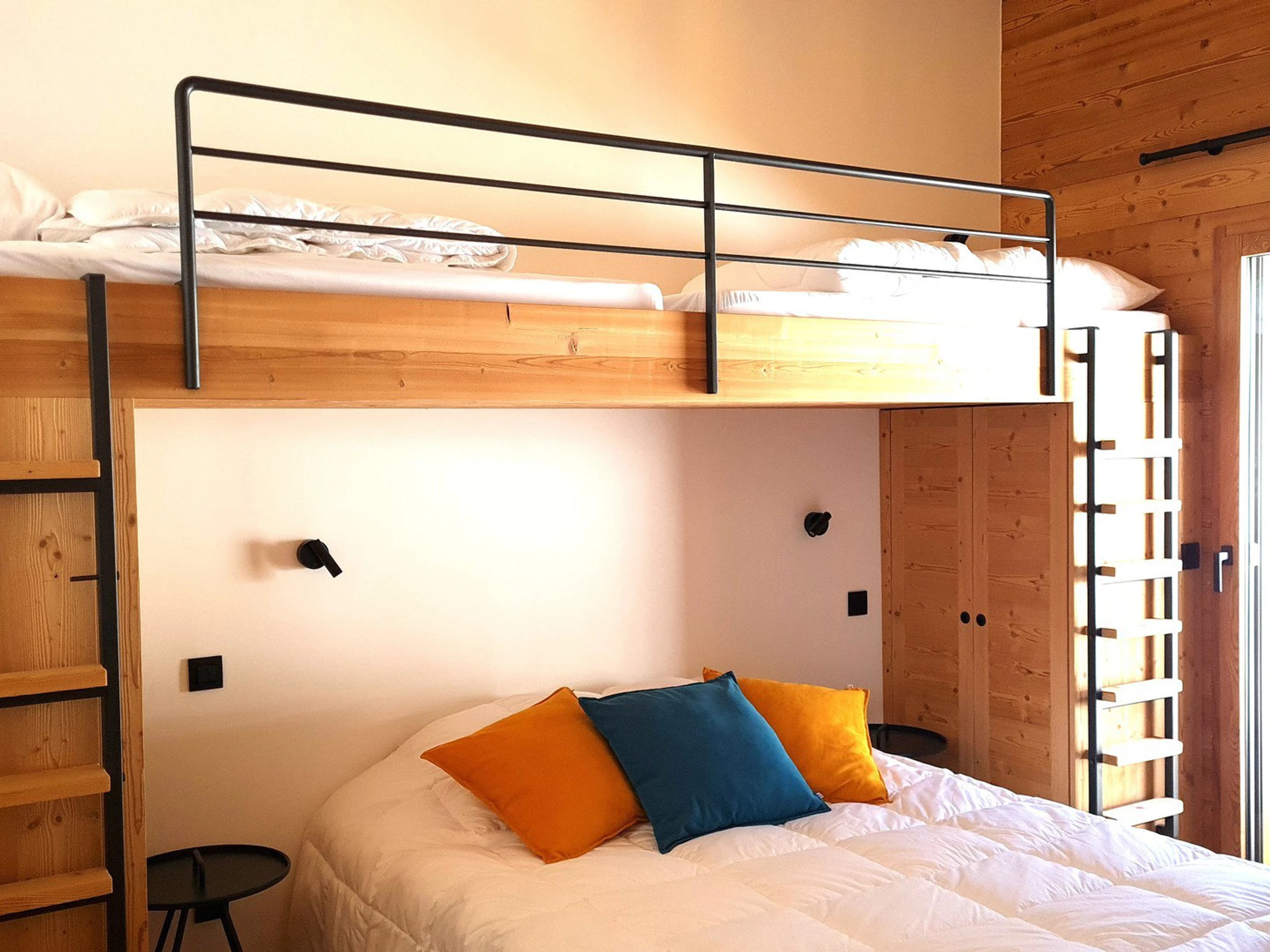 Erster Stock: Schlafzimmer 1 (12,31 m²) mit 160 cm breitem Bett, angrenzendes Duschbad (3,68 m², davon 1 m² & 1,80 m): Dusche, Waschbecken, Spiegel, Handtuchhalter, WC, Föhn, Zugang zum Balkon – Schlafzimmer 2 (11,73 m²) mit 160 cm breitem Bett, Zugang zum Balkon – Schlafzimmer 3 (8,55 m²) mit 160 cm breitem Bett, Zugang zum Balkon – Badezimmer (4,26 m²): Badewanne, Doppelwaschbecken, Spiegel, Handtuchheizkörper – WC (1,34 m²). Zusätzliche Serviceleistungen: Endreinigung inklusive (exkl. Mülltonnen und Geschirr), Bettwäsche wird gestellt, Betten sind bei Ankunft bezogen. Fußbodenheizung - Bettdecken - Haustiere nicht erlaubt - Nichtraucherunterkunft - WLAN (Achtung: 5G-Schlüssel 300g/Monat, danach gesperrt) - Klassifizierung in Bearbeitung: **** Schlafmöglichkeiten für 6 Personen - Nicht barrierefrei und nicht geeignet für Personen mit eingeschränkter Mobilität (Stufen zum Zugang zum Chalet und interne Treppen).