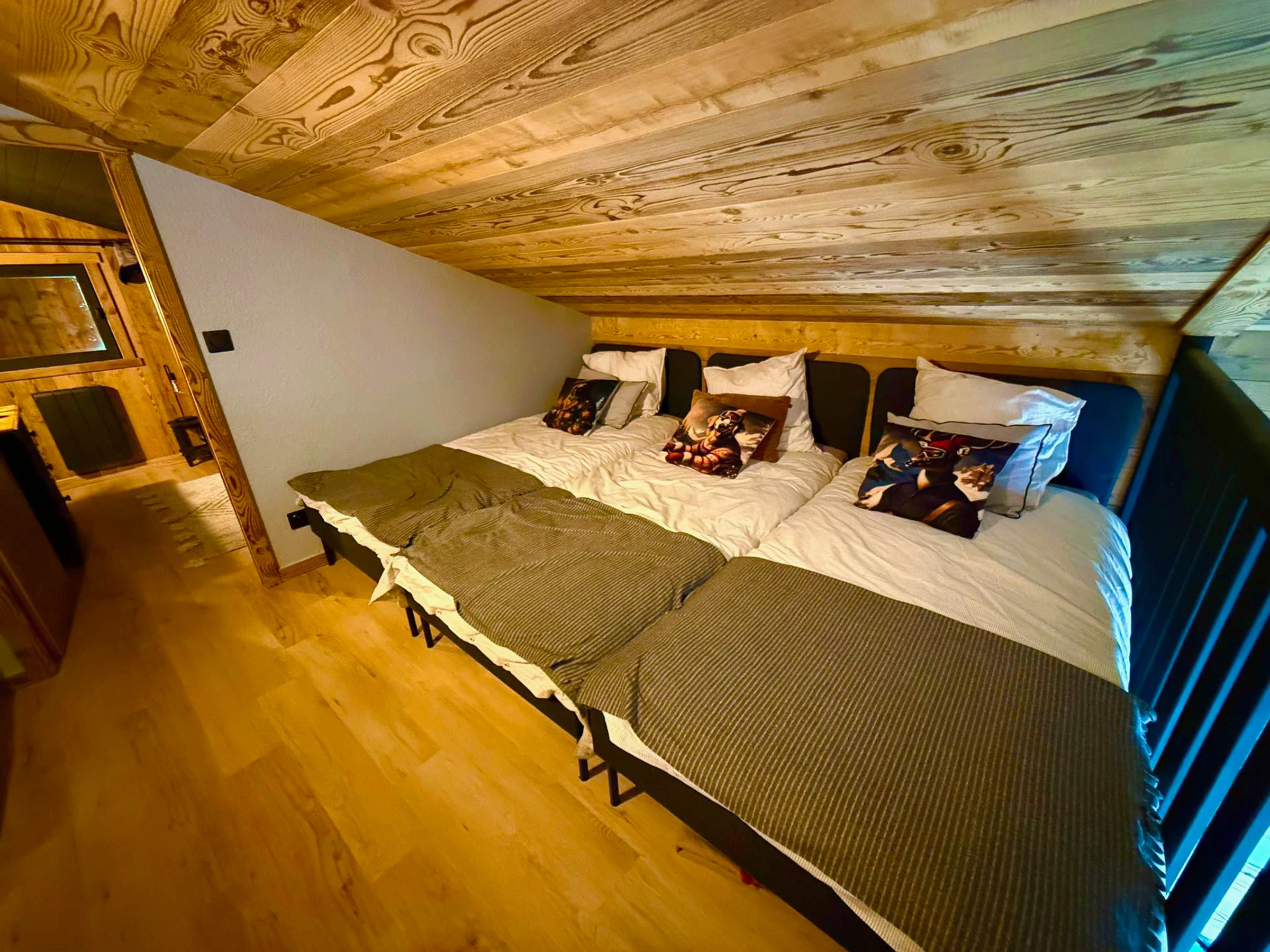 Galerie (9,40 m² mit 9,40 m² Schlafzimmer (unter 1,80 m²): 2 Einzelbetten (2 x 90 cm) – Bettdecken 14 x 200 cm