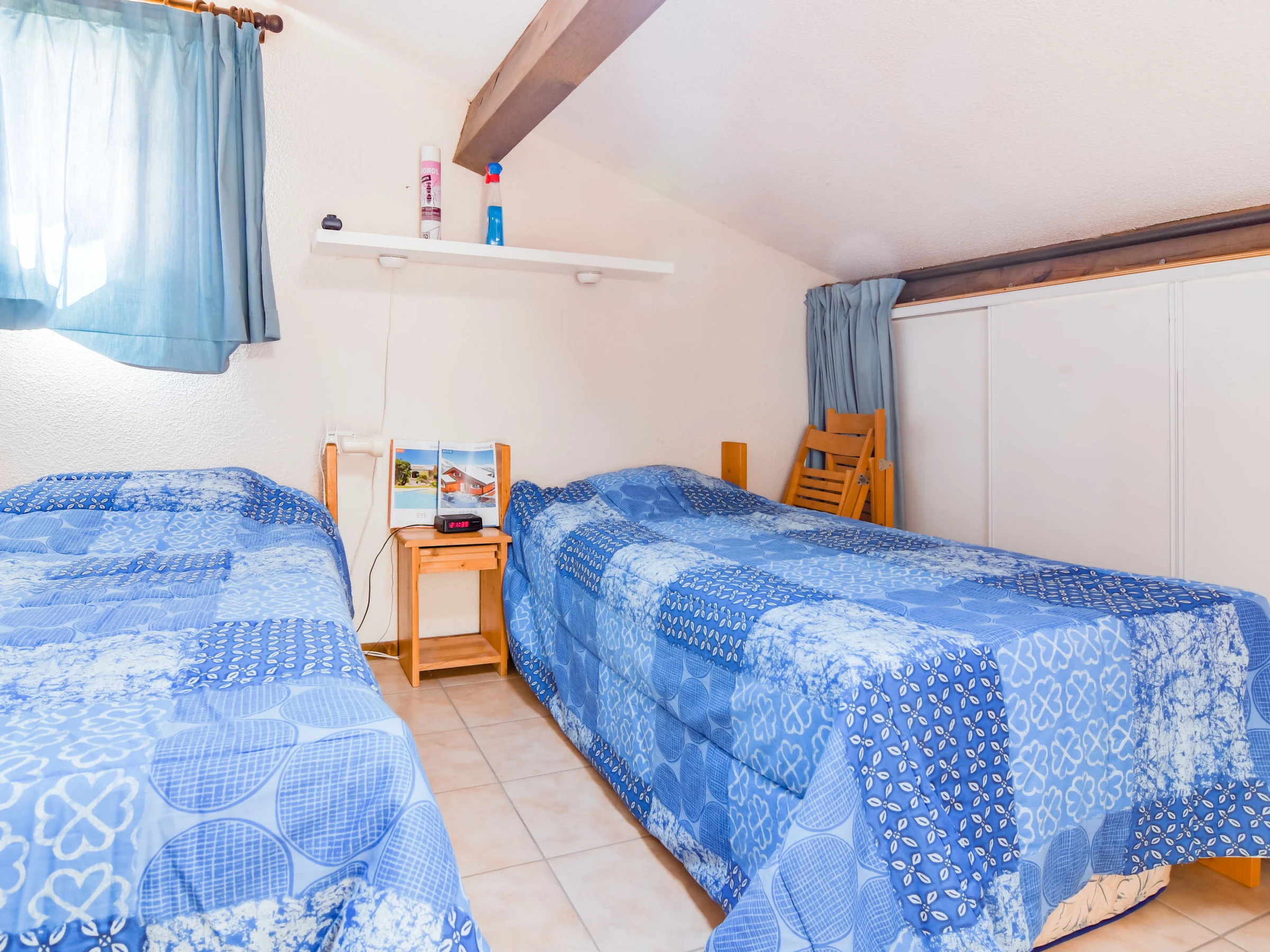 2-Zimmer-Reihenhaus 32 m2 auf 2 Stockwerken. Zweckmässig und schön eingerichtet: Wohn-/Esszimmer mit 1 Diwanbett (160 cm, Länge 200 cm), TV (Flachbildschirm), Klimaanlage. Ausgang zur Terrasse. Offene Küche (Geschirrspüler, 3 Glaskeramikherd Platten, Toaster, Wasserkocher, Mikrowelle, elektrische Kaffeemaschine, Kapseln für die Kaffeemaschine (Tassimo) extra). Dusche/WC. E-Heizung. Obergeschoss: (steile Treppe) 1 abgeschrägtes Zimmer mit Schiebetür mit 2 Betten (90 cm, Länge 190 cm), E-Heizofen. Terrasse 36 m2, überdacht, Garten 150 m2. Terrassenmöbel. Eingeschränkte Sicht auf das Meer und die Landschaft. Zur Verfügung: Bügeleisen, Haartrockner. Internet (Wireless LAN, extra). Parkplatz Nr. F4. Bitte beachten: Rauchmelder. [hidden]