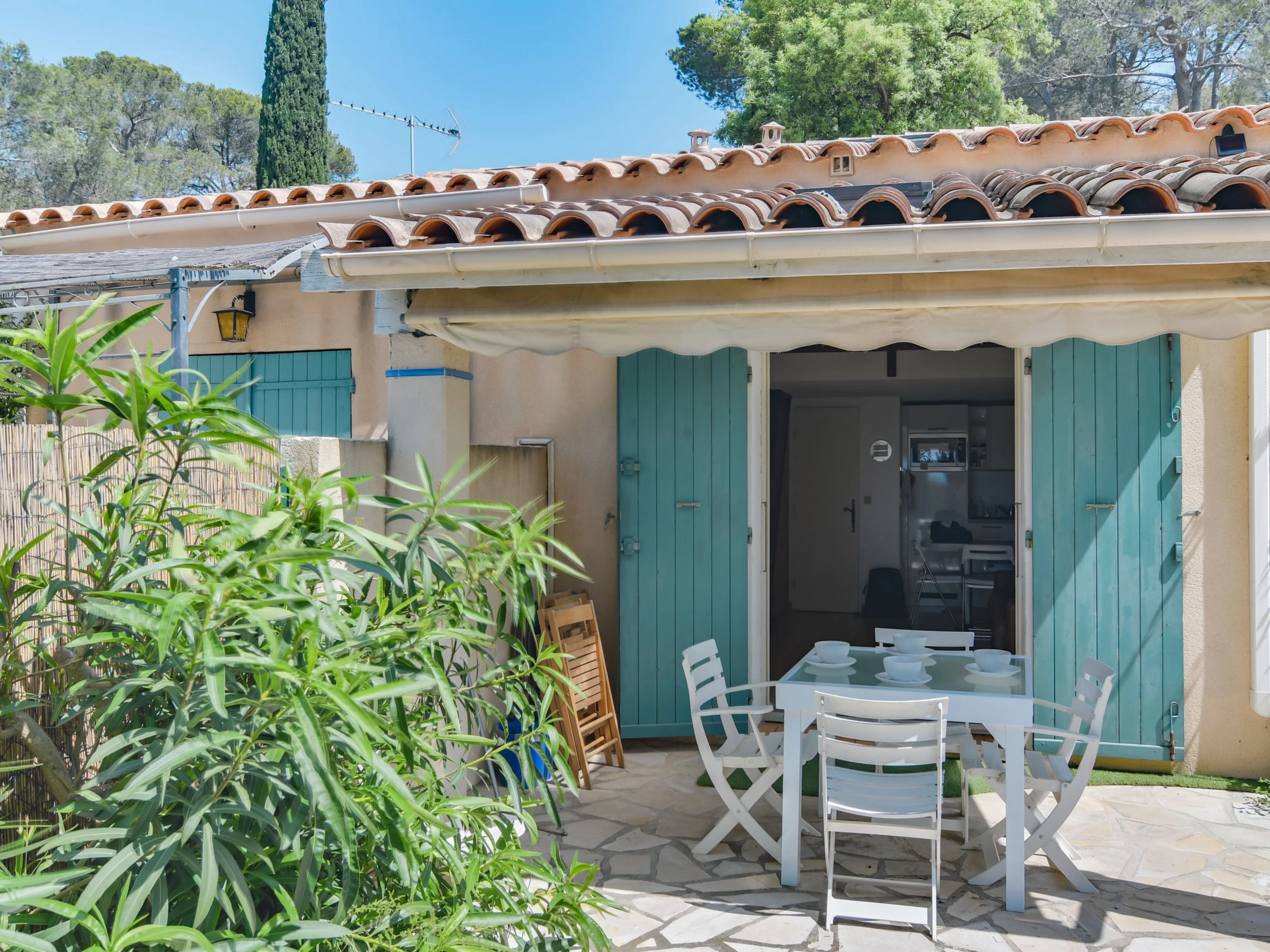Residenz "Le Clos de la Ricarde". Ausserhalb des Ortes, 3.2 km vom Zentrum von La Croix Valmer, 1.2 km vom Meer, 1.2 km vom Strand. Einkaufsgeschäft, Lebensmittelgeschäft 500 m, Supermarkt 3 km, Einkaufszentrum 9.6 km, Restaurant 500 m, Bar 800 m, Bäckerei 500 m, Sandstrand "Plage du Débarquement" 1.2 km, Park "Aqualand" 20.4 km. Minigolf 10.3 km, Reitstall 4.3 km. Nahe gelegene Sehenswürdigkeiten: Azur Park, Paint-ball 9.5 km, Bowling à Port-Grimaud 12.2 km, St-Tropez 14.5 km, St-Maxime 18 km. Wandergebiete: Sentier du Fenouillet 6 km, Sentier du littoral 5.8 km, Toulon 70 km. Bitte beachten: Das Foto ist nur ein Hausbeispiel. In diesem Haus sind weitere Ferienwohnungen mietbar.