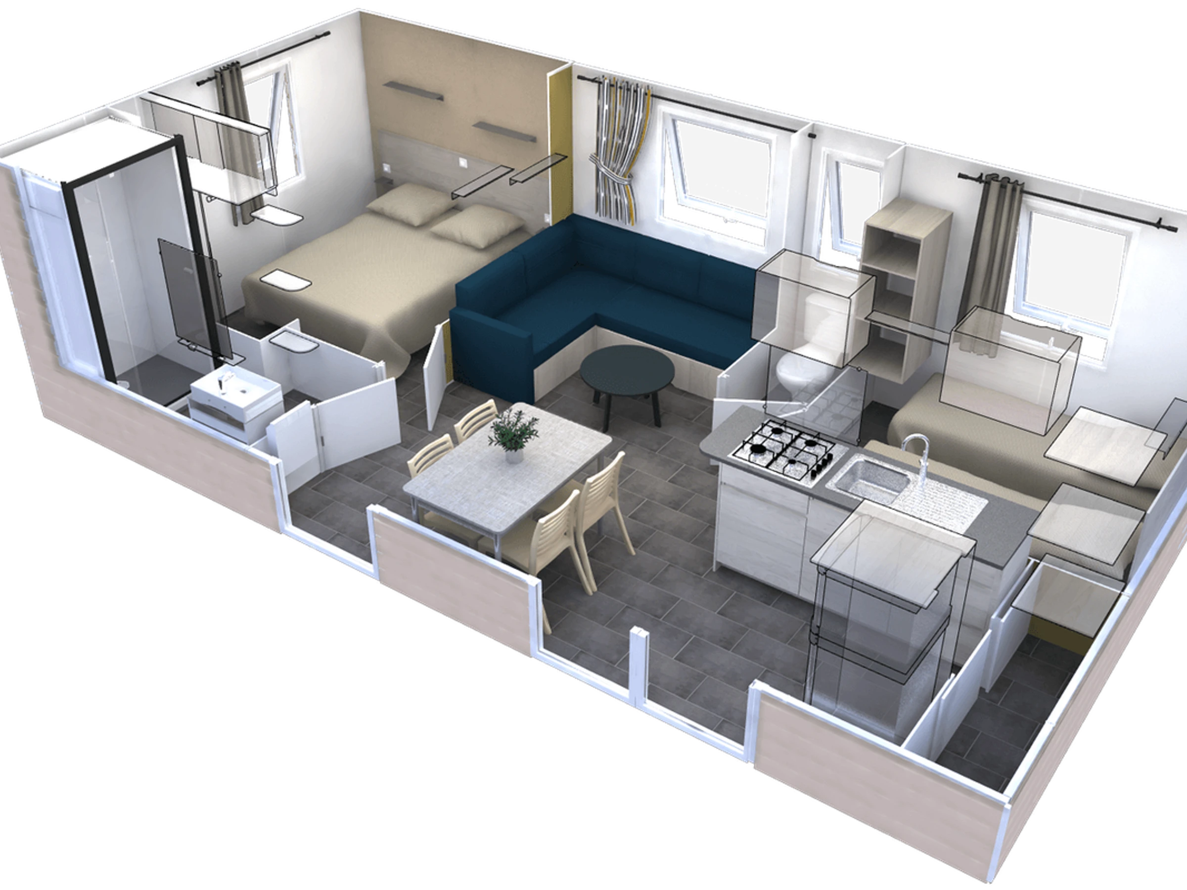 29 m² großes Mobilheim für 4 Personen: