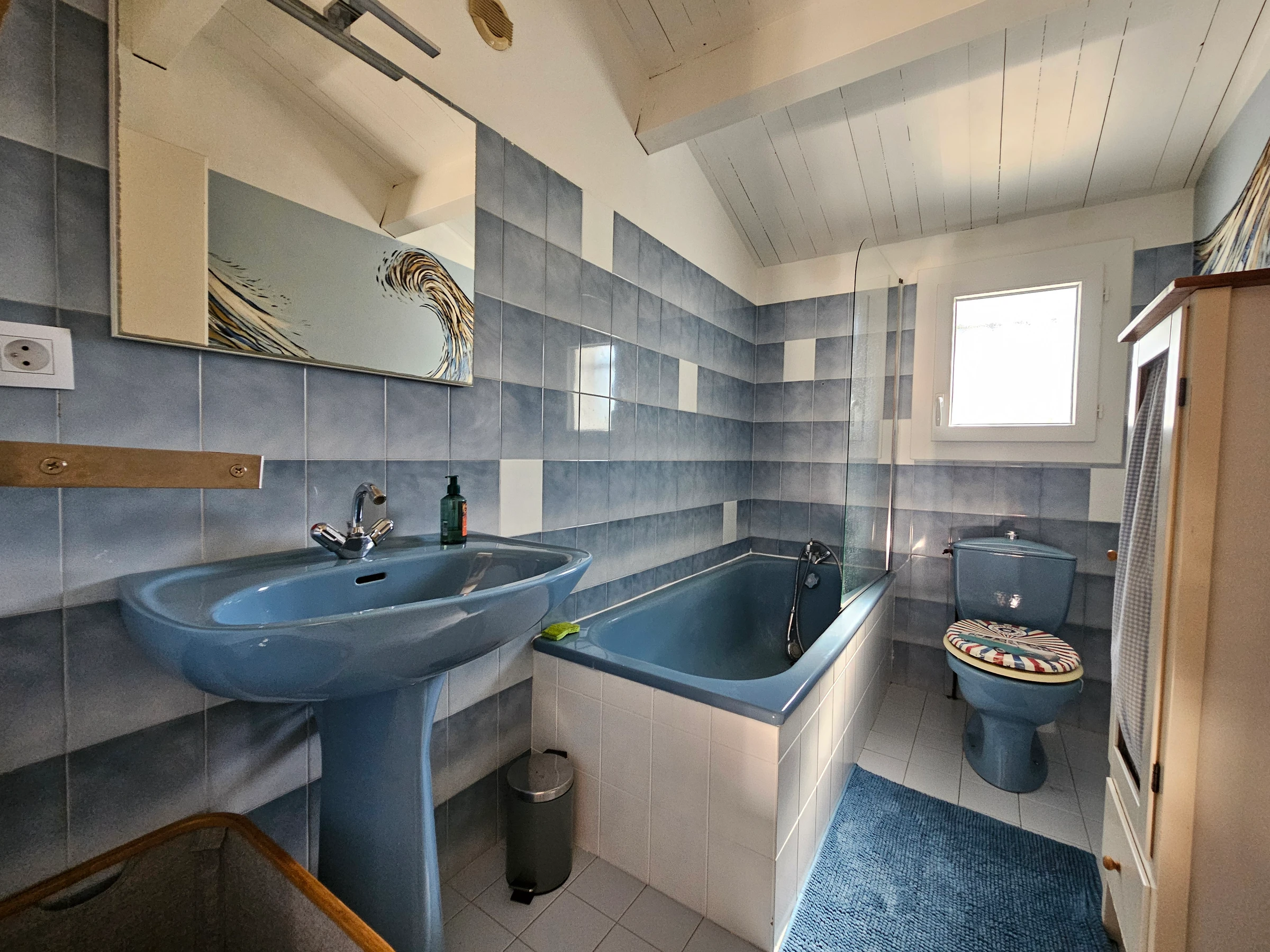 Im Obergeschoss befinden sich eine Galerie (Wohnbereich) mit TV und WLAN, ein Badezimmer mit Badewanne, Waschbecken und WC, ein Schlafzimmer mit zwei 90 cm breiten Betten und einem 80 cm breiten Bett sowie ein drittes Schlafzimmer mit einem 160 cm breiten Bett. Eine Garage mit Wäschetrockner und Waschmaschine ist ebenfalls vorhanden. Der angelegte Garten bietet Terrassen, Gartenmöbel, einen Grillplatz, eine Markise und zwei Außenduschen. Die Reinigung obliegt dem Mieter. Bettwäsche wird nicht gestellt, kann aber bei unserem Partner gemietet werden; bitte kontaktieren Sie uns. Die Heizkosten werden vom 1. Oktober bis zum 31. Mai zusätzlich berechnet und richten sich nach dem Zählerstand.