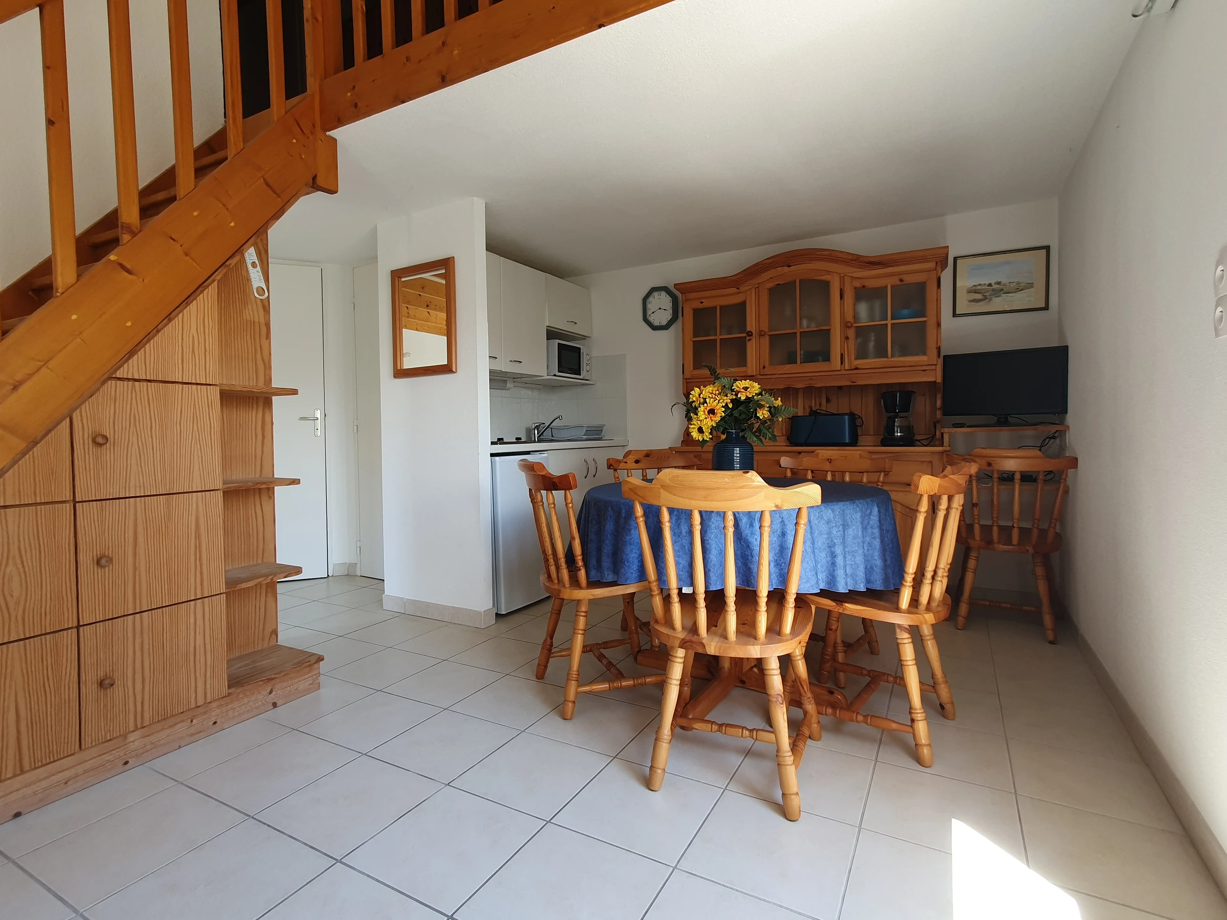 Das Hotel liegt in einer charmanten Residenz mit typischer Vendée-Architektur. 1800 m vom Sandstrand und 1200 m von den Geschäften entfernt. Einschließlich: Wohnzimmer mit Zugang zur Terrasse mit FERNSEHER. Ausgestattete Küchenzeile: Elektroherd, MIKROWELLE und oberer Kühlschrank. Ein Zimmer mit 1 Bett für 2 Personen. Badezimmer mit Badewanne, Waschbecken und WASCHMASCHINE - separates WC. Im Obergeschoss: Zwischengeschoss mit 2 Einzelbetten. + ein Einzelschlafsofa für 1 Person. Terrasse mit Gartenmöbeln und Grill. Privater Pool und privater Parkplatz. Hauswirtschaft für den Mieter. Haushaltswäsche wird nicht gestellt, Vermietung bei unserem Partner möglich, kontaktieren Sie uns. Heizung vom 1. Oktober bis 31. Mai zusätzlich nach Zählerstand. WLAN-Verleih mit 5G-Box möglich: 40 €/Woche