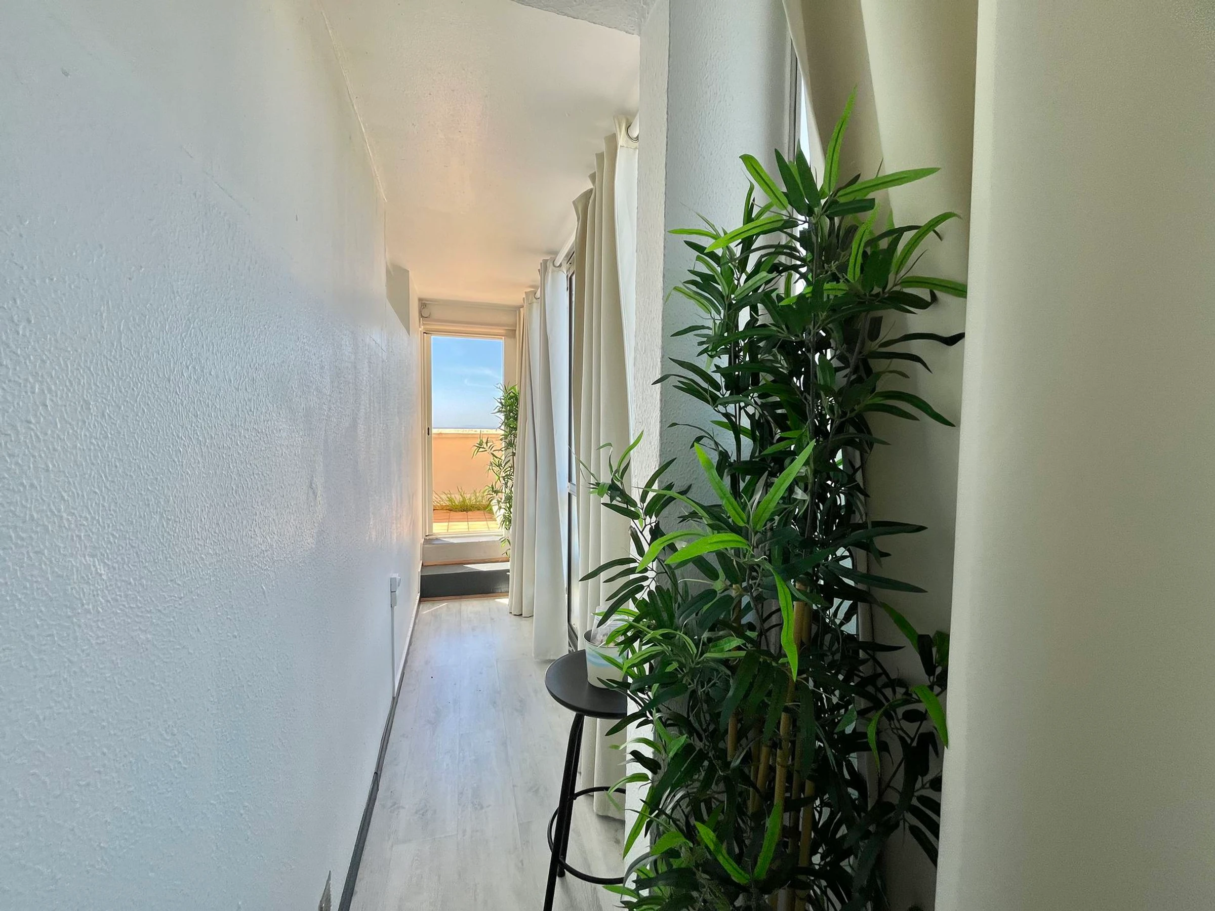 Genießen Sie eine große 28 m² große Terrasse mit Panoramablick auf La Grande Motte. Das Apartment verfügt über ein Wohnzimmer mit Sofa und Fernseher, WLAN, eine voll ausgestattete Küchenzeile (kleiner Kühlschrank, Mikrowelle, Wasserkocher, Kaffeemaschine), ein Badezimmer mit Dusche und WC sowie einen großen, verglasten Flur, der zur Terrasse führt.