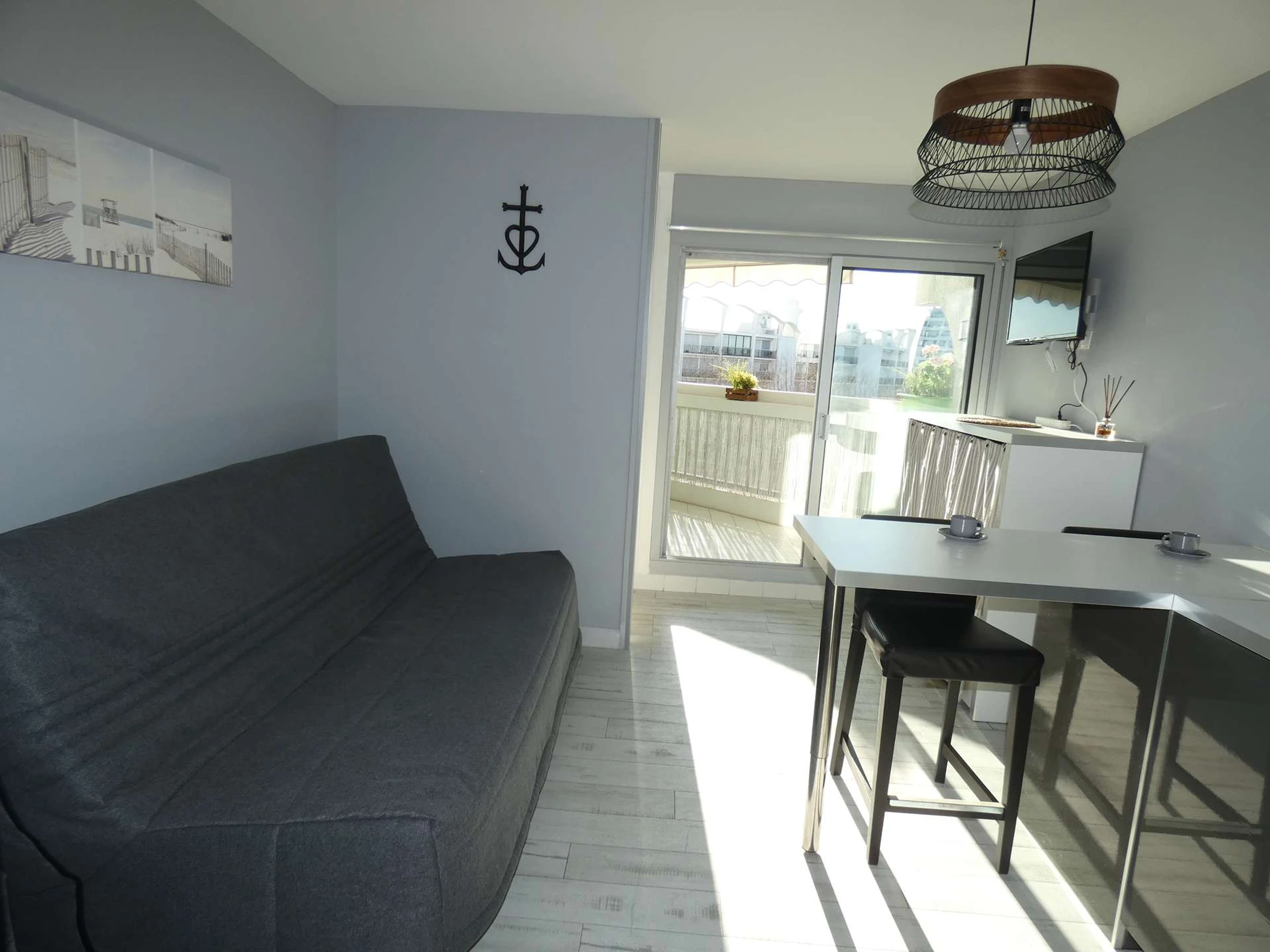 Studio-Hütte für 4 Personen, 22 m² + 6 m² Loggia, im 3. Stock mit Aufzug, Südwestlage, Blick auf Gärten und Wege, privater Parkplatz im Untergeschoss.