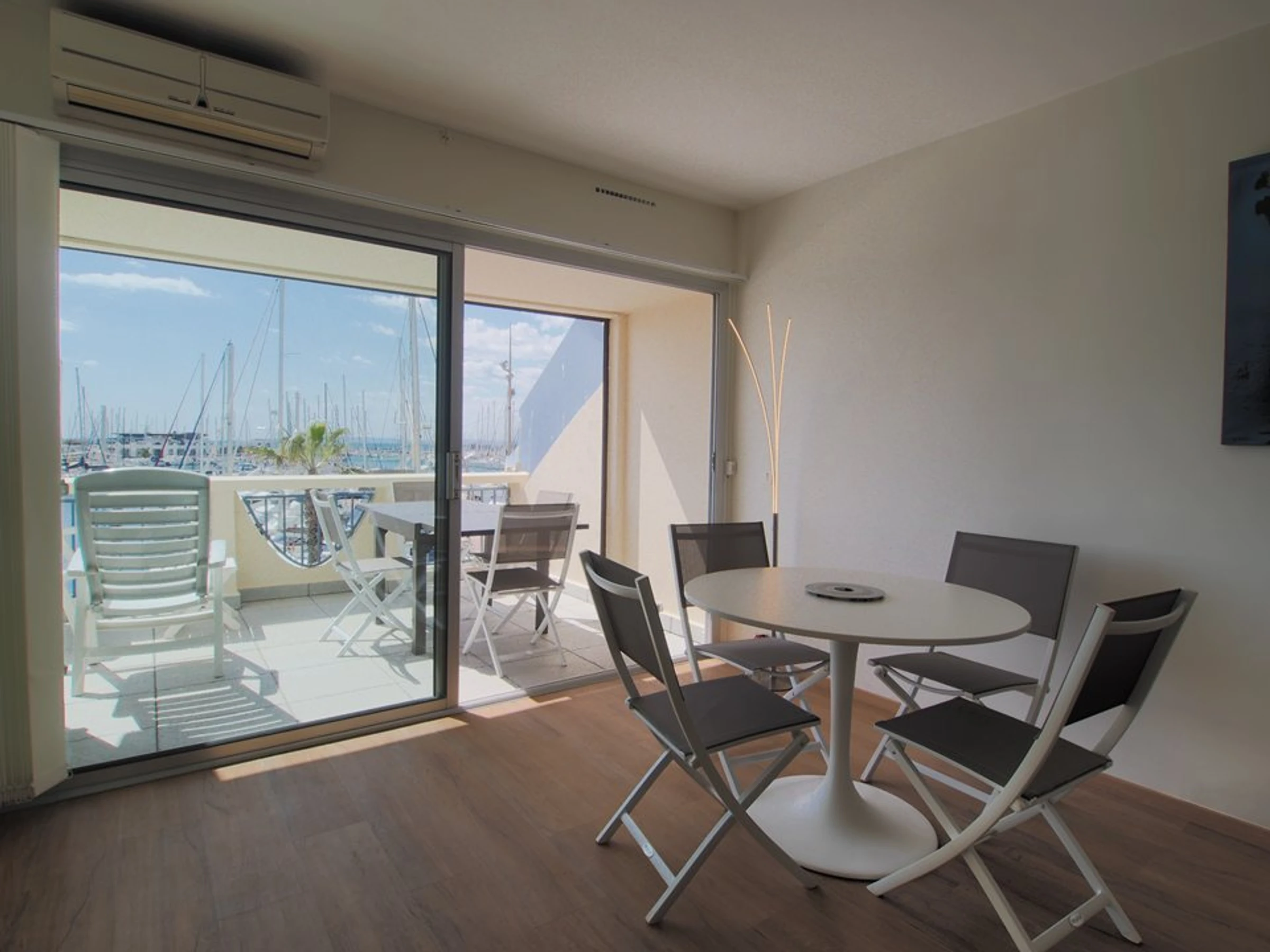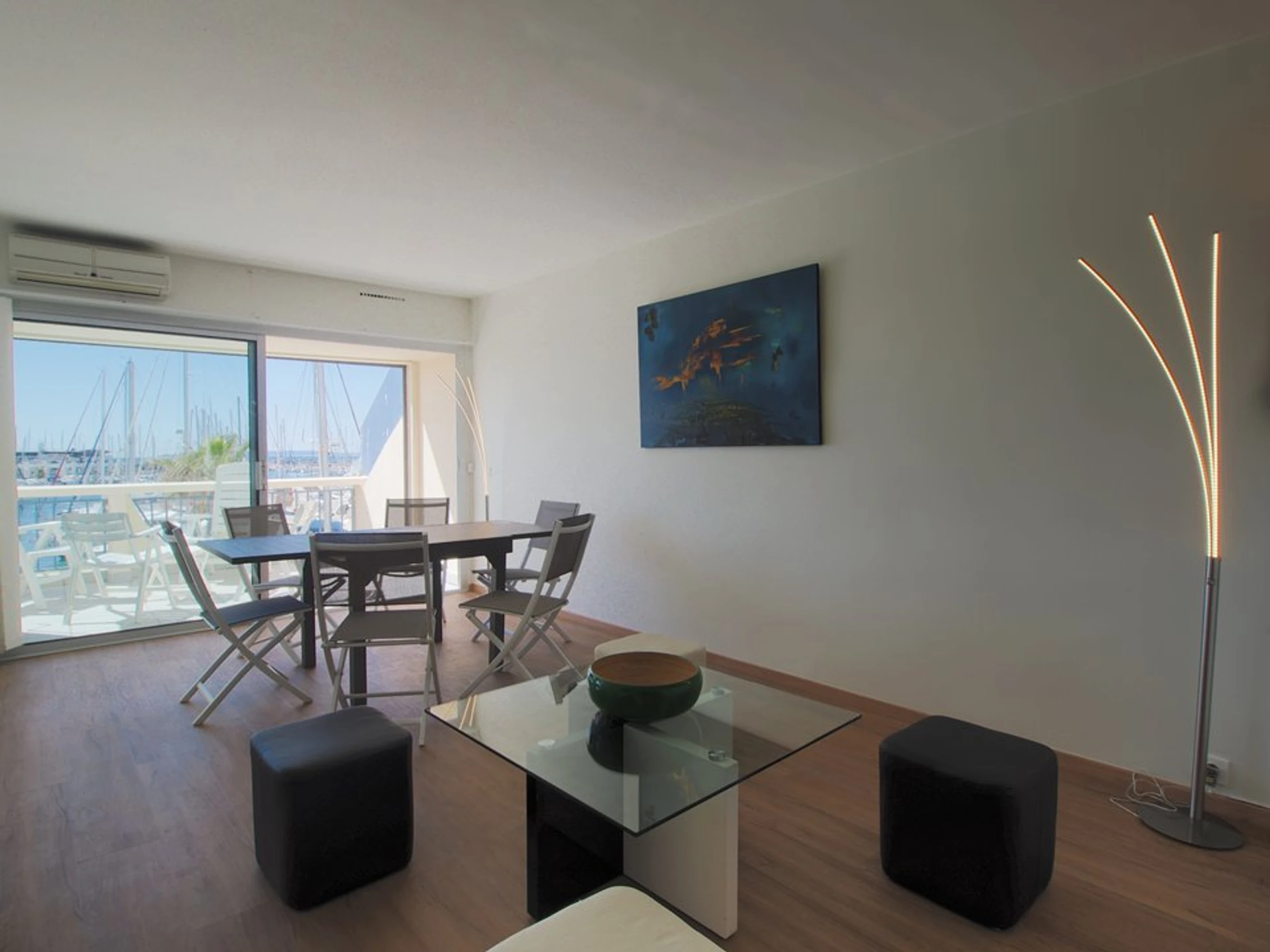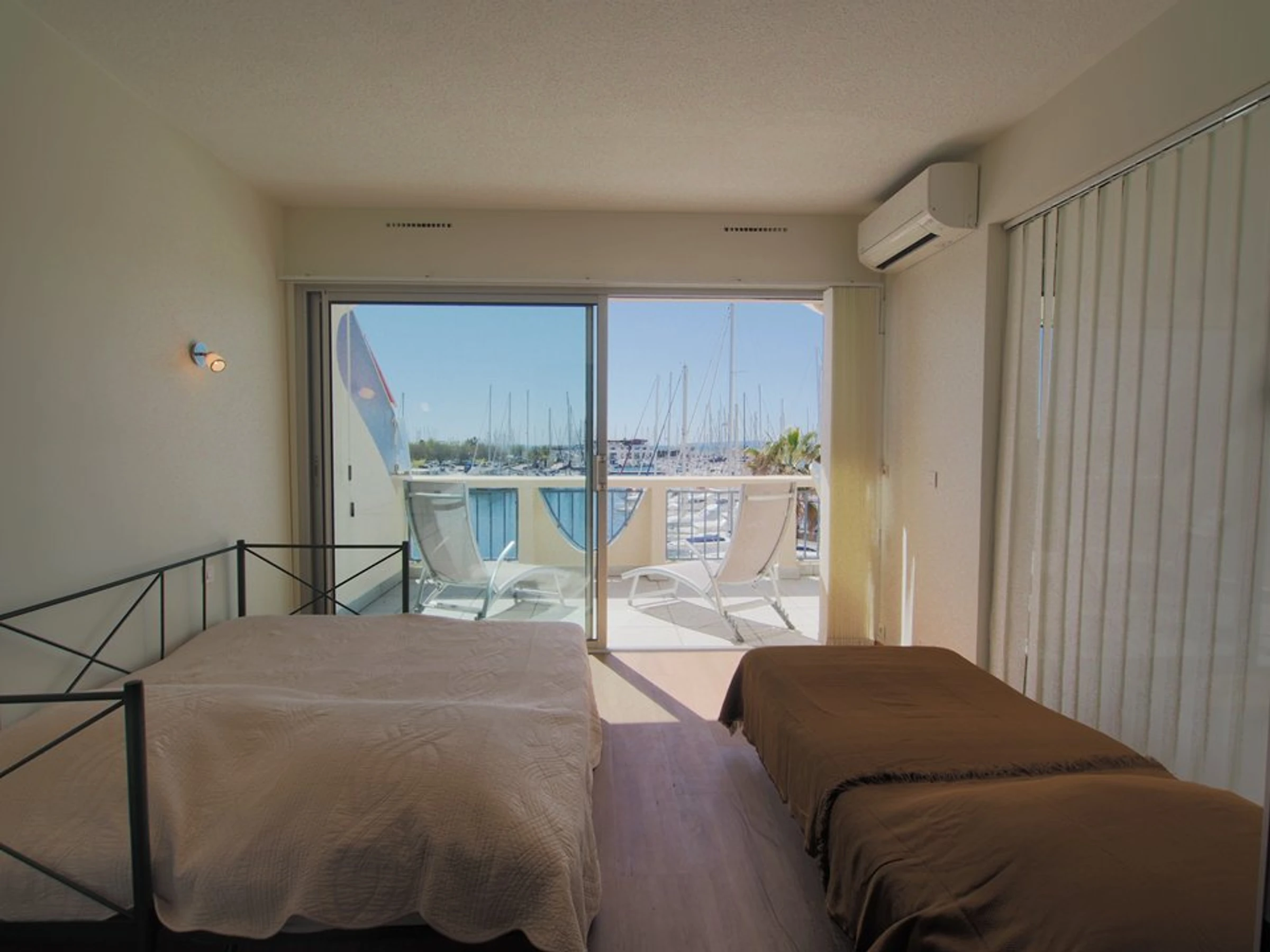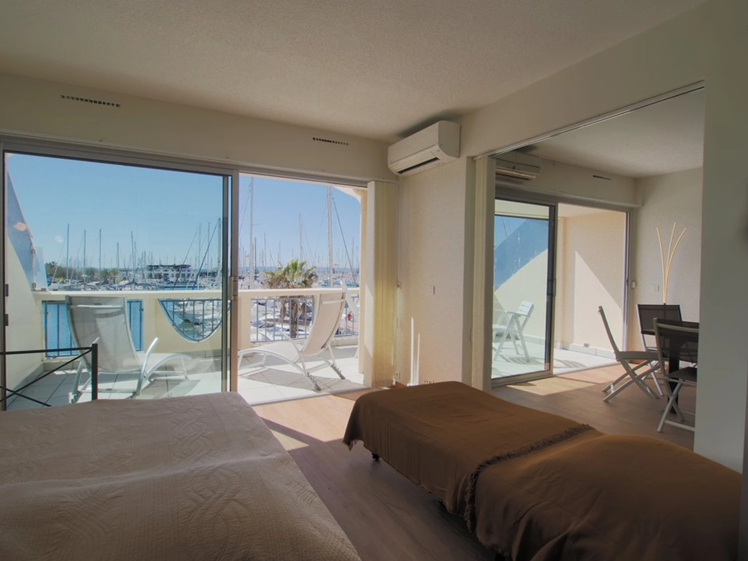 Im Herzen von La Grande Motte, nur 100 Meter vom Strand und den Geschäften entfernt, bietet dieses komplett renovierte, klimatisierte Apartment mit zwei Schlafzimmern einen atemberaubenden Blick auf den Hafen und das Meer. Es bietet Platz für 5 Personen.