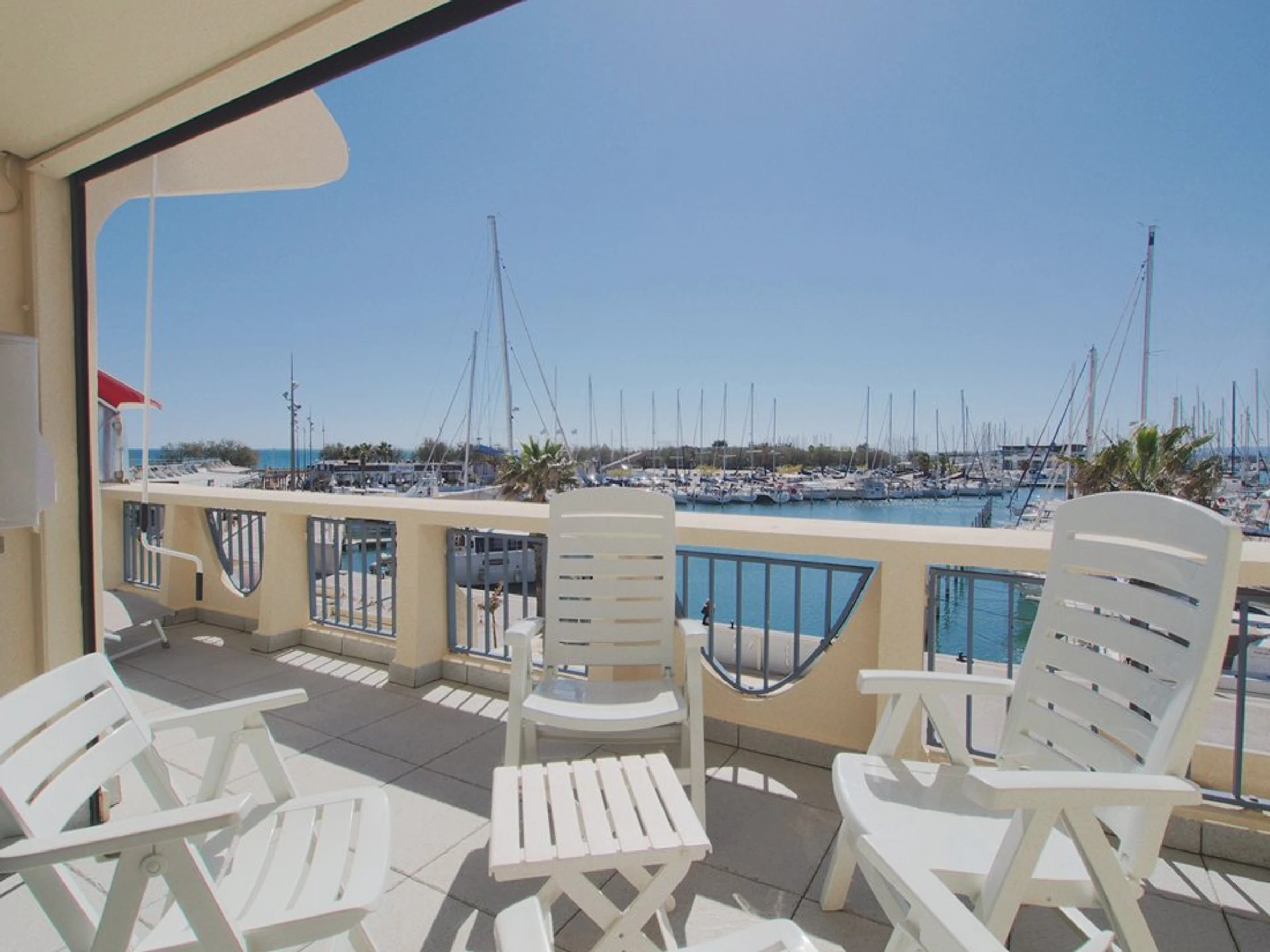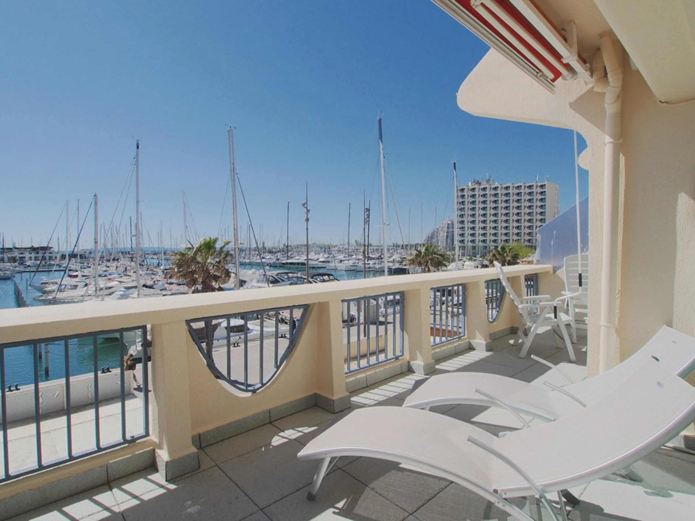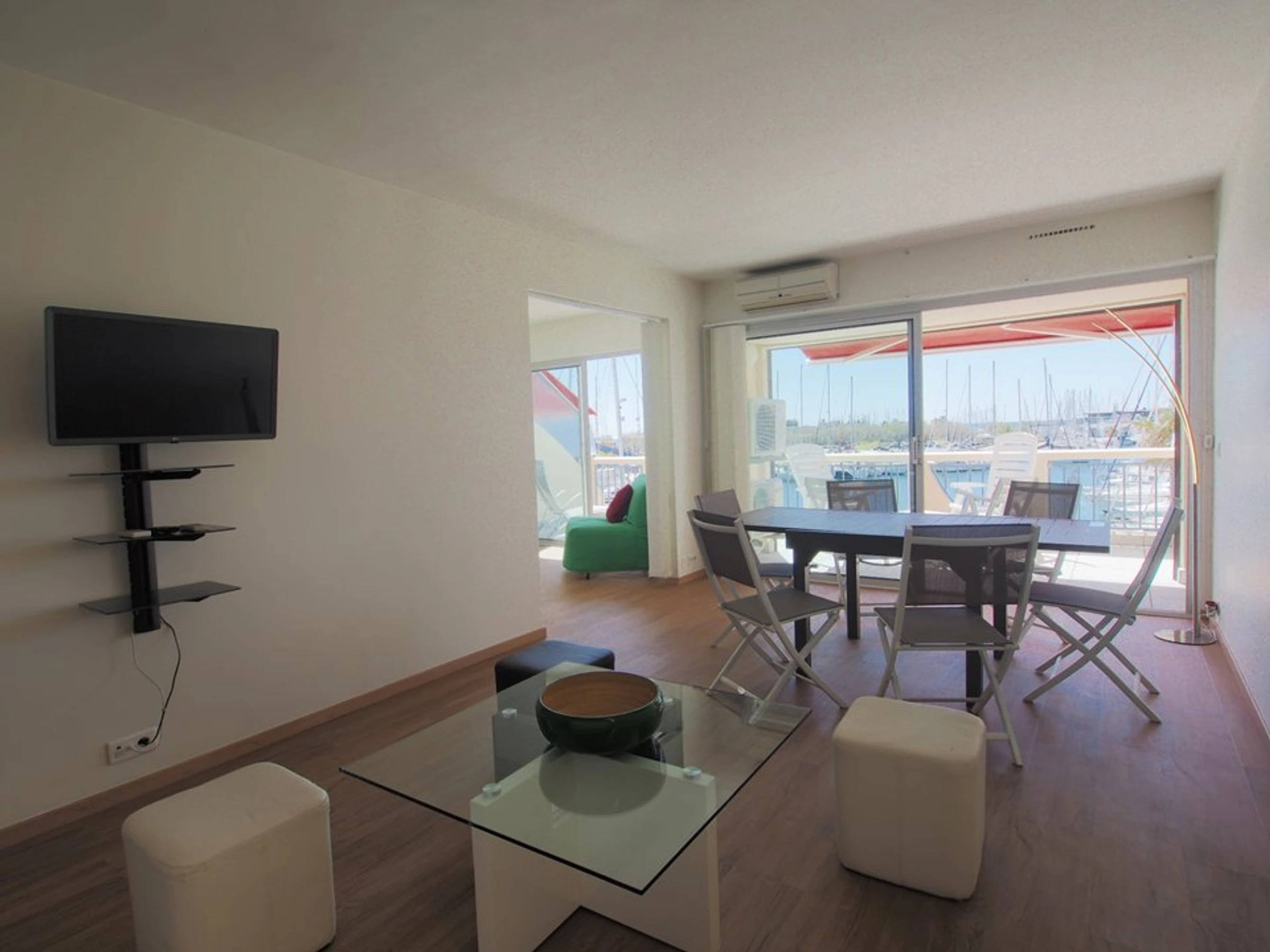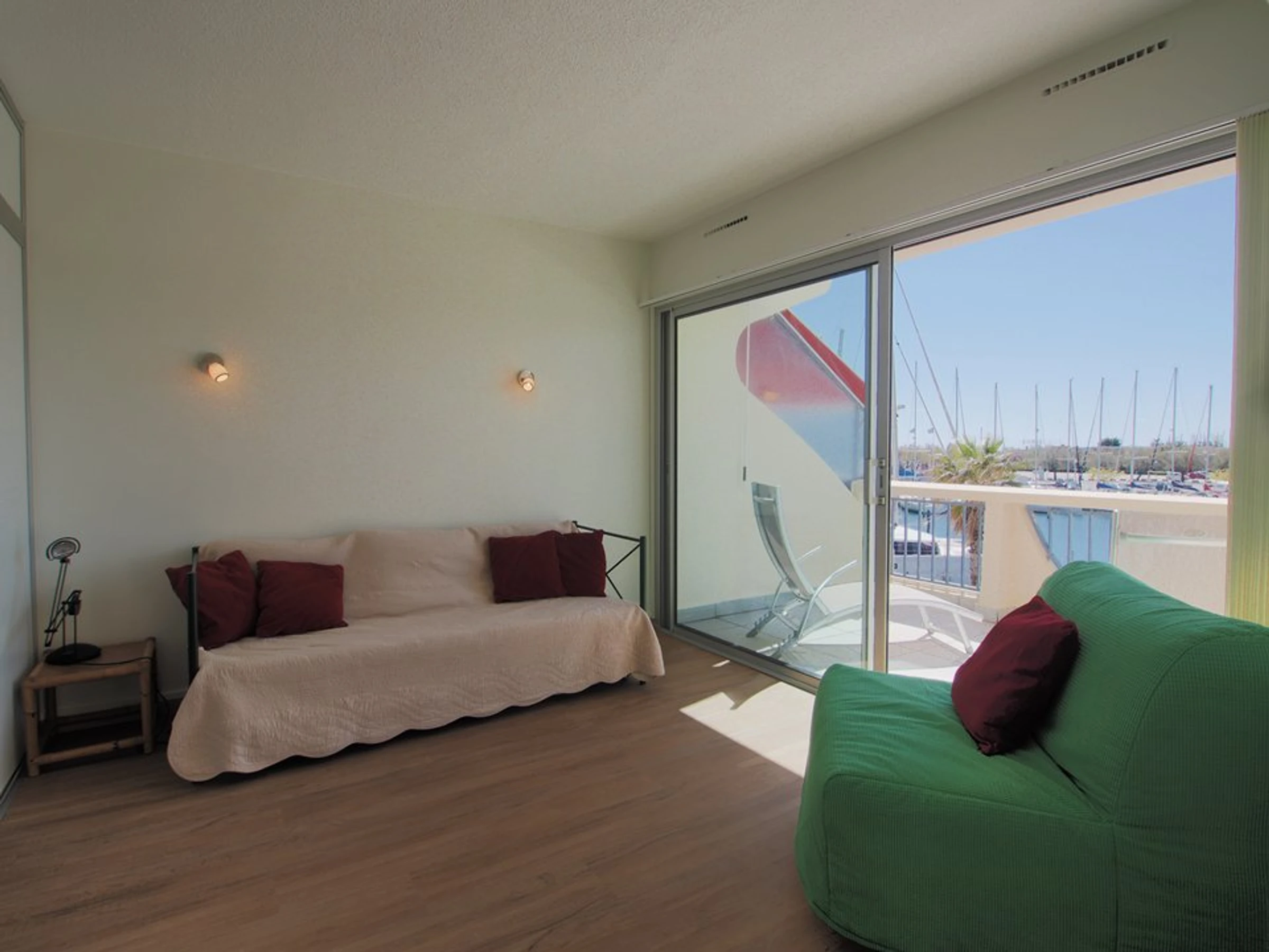 Im Herzen von La Grande Motte, nur 100 Meter vom Strand und den Geschäften entfernt, bietet dieses komplett renovierte, klimatisierte Apartment mit zwei Schlafzimmern einen atemberaubenden Blick auf den Hafen und das Meer. Es bietet Platz für 5 Personen.