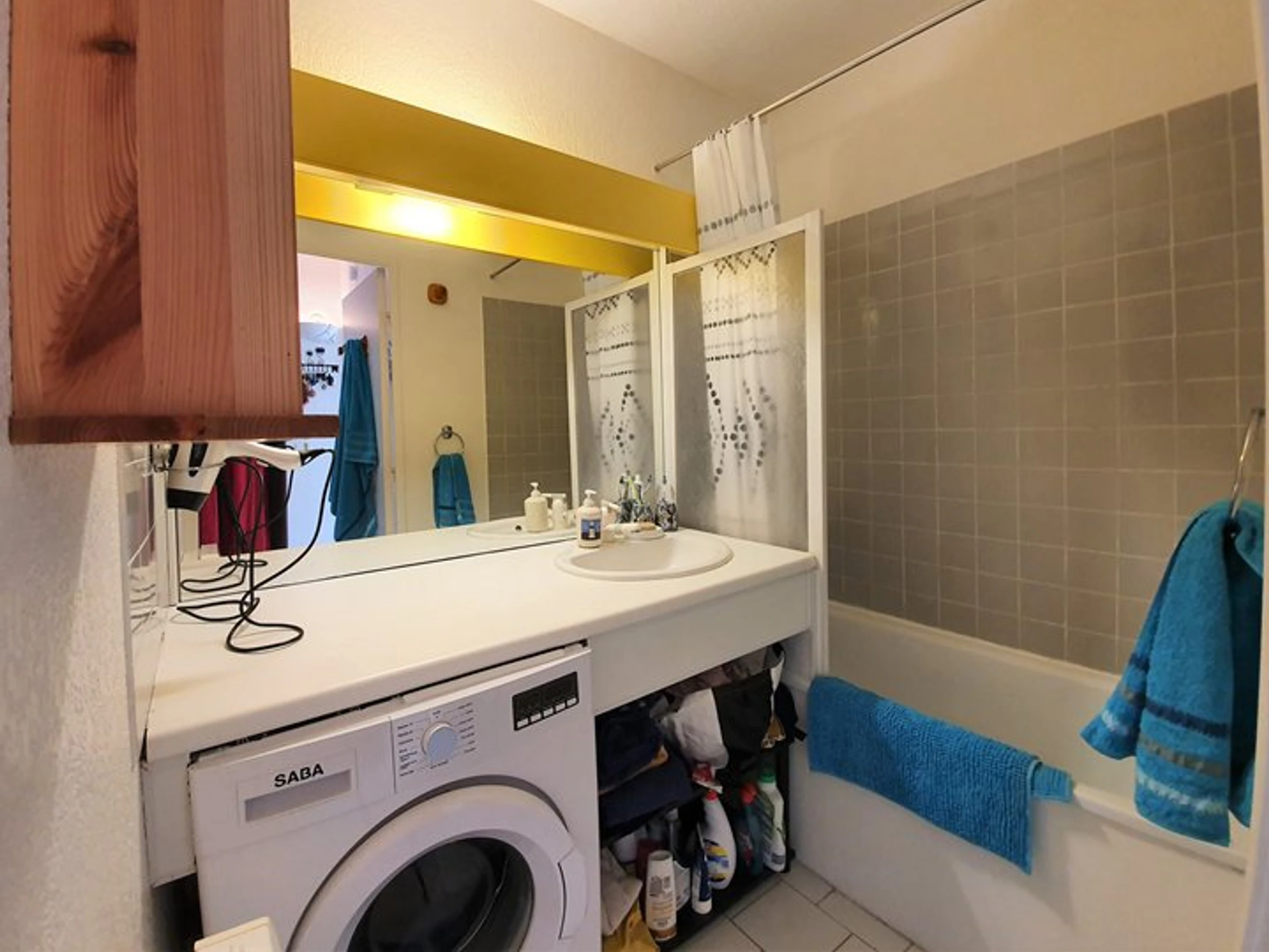 Das Apartment bietet allen Komfort, darunter Klimaanlage, Waschmaschine, Geschirrspüler und Terrasse, sowie einen privaten Parkplatz und Zugang zum Swimmingpool und den Fahrradständern der Residenz.