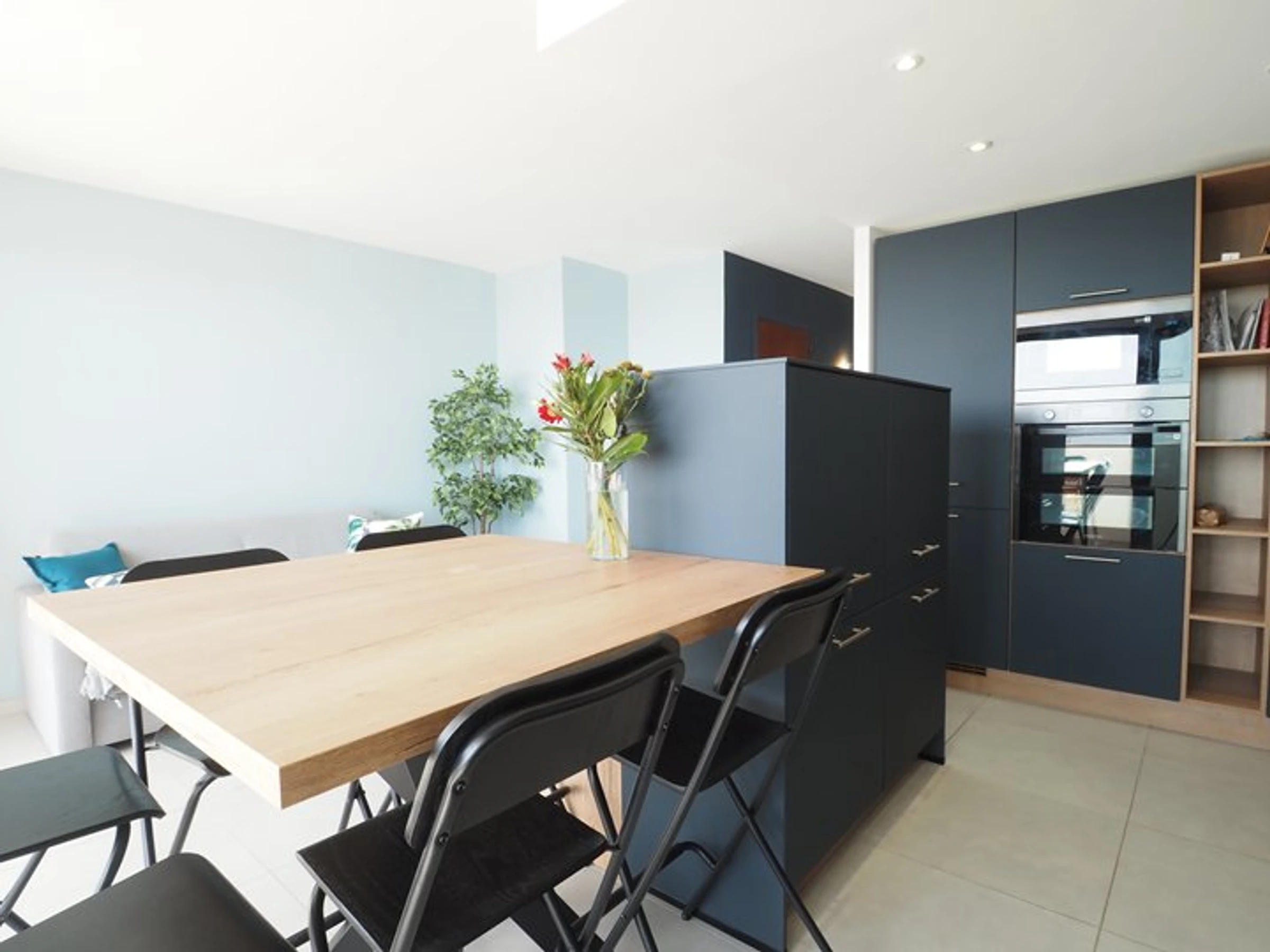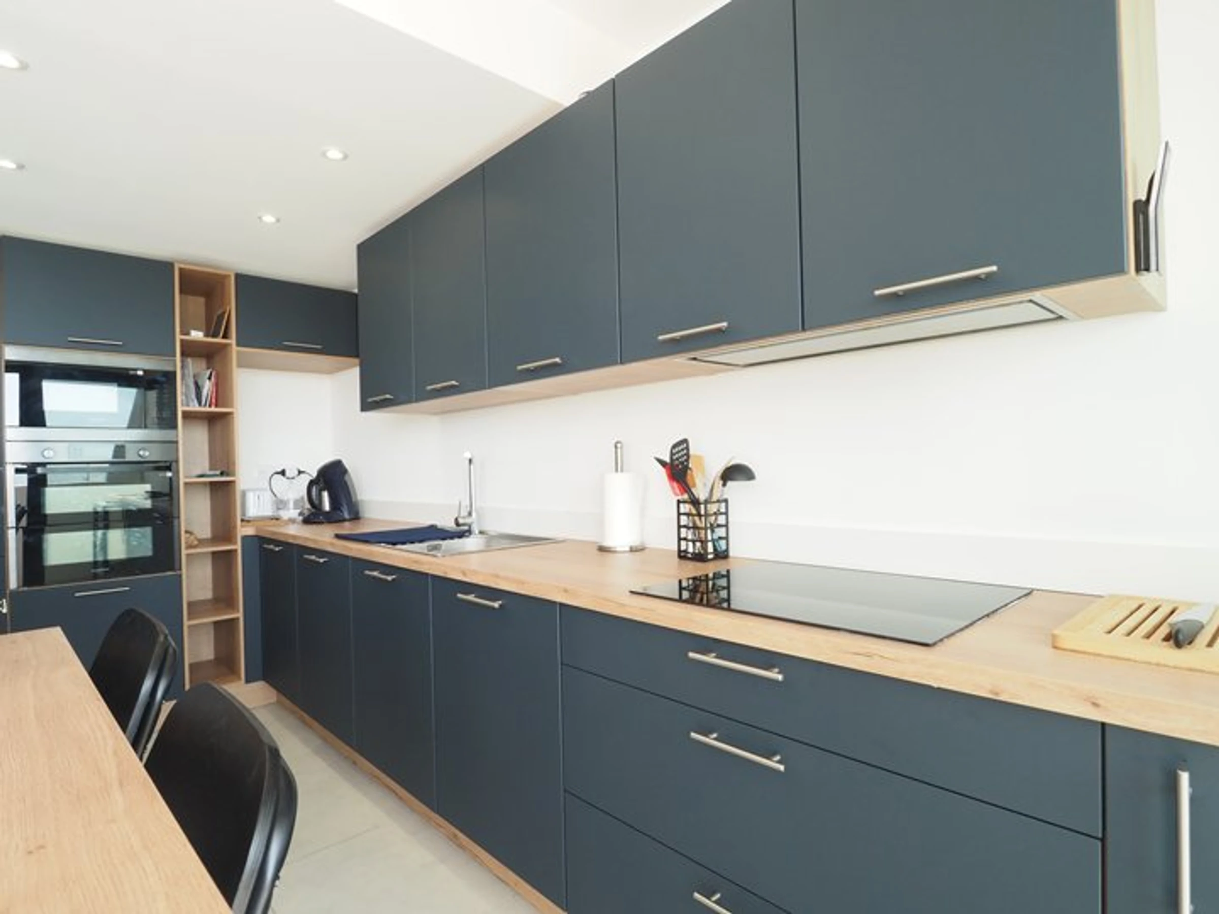 Das Apartment bietet ein 23 m² großes Wohnzimmer mit Schlafcouch (160 x 200 cm) und eine offene, voll ausgestattete Küche (Kühlschrank, Gefrierschrank, Geschirrspüler, Induktionskochfeld, Backofen, Mikrowelle, Senseo-Kaffeemaschine, Wasserkocher, Toaster etc.), die auf eine 9 m² große, nach Südwesten ausgerichtete Terrasse führt. Die Wohnung ist vollklimatisiert und verfügt über WLAN sowie einen Kleiderschrank mit Waschmaschine.