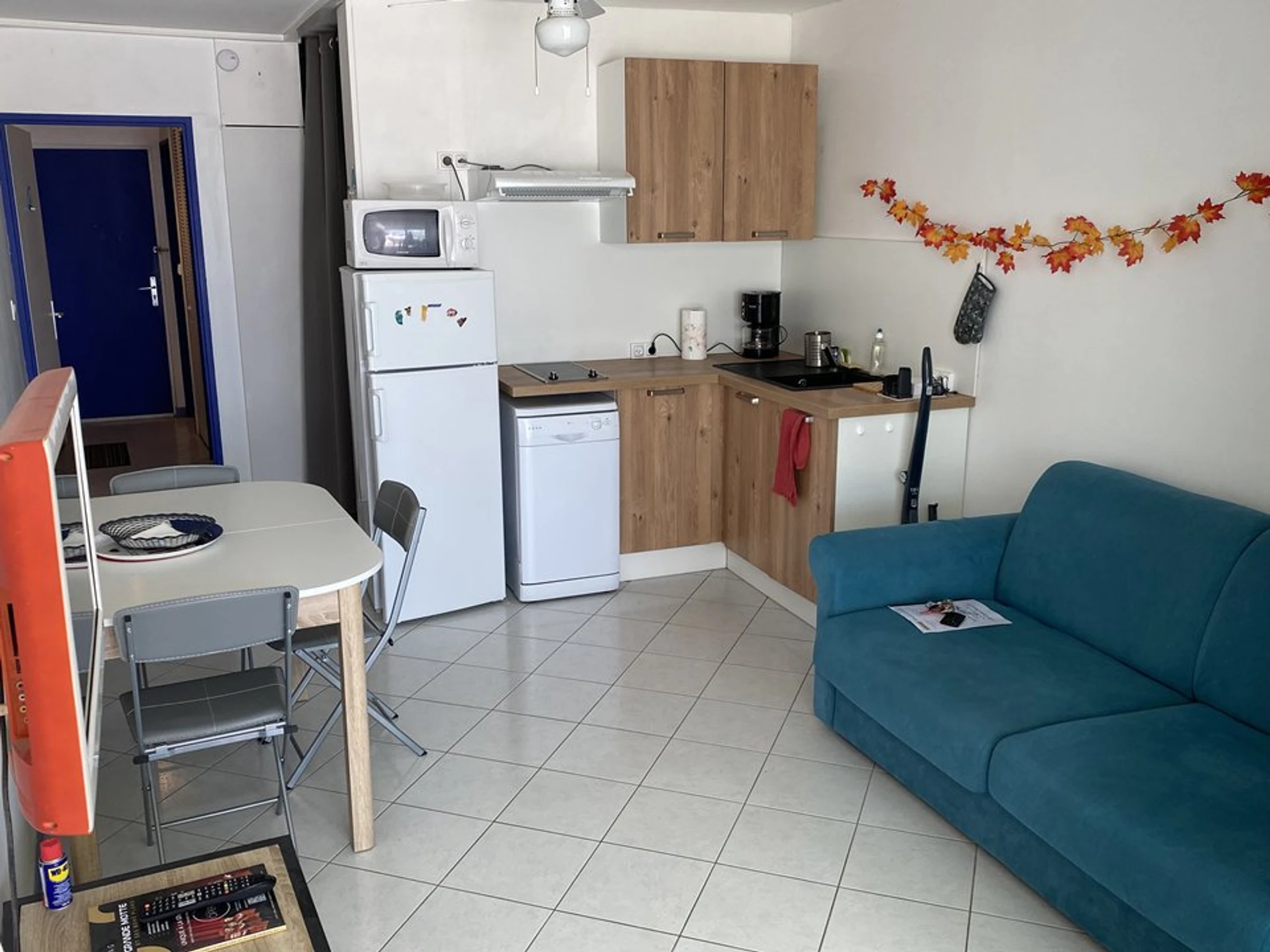 Das klimatisierte Studio bietet Platz für bis zu 4 Personen. Beim Betreten des Studios erwartet Sie ein heller Wohnbereich mit einem Schlafsofa (160/200 cm) und einer voll ausgestatteten Küche inklusive Geschirrspüler. Ein Schlafbereich mit zwei Etagenbetten (je 90 cm) ist ideal für Kinder.