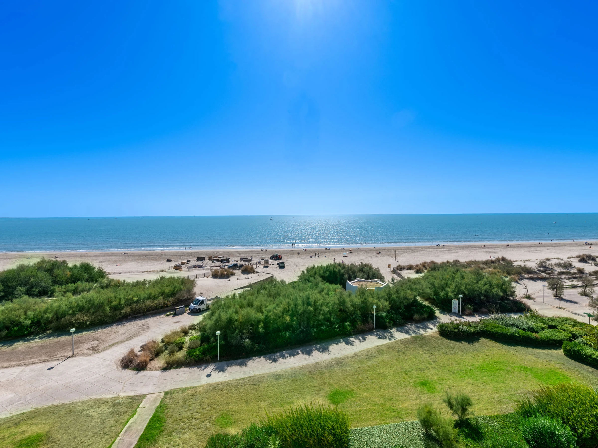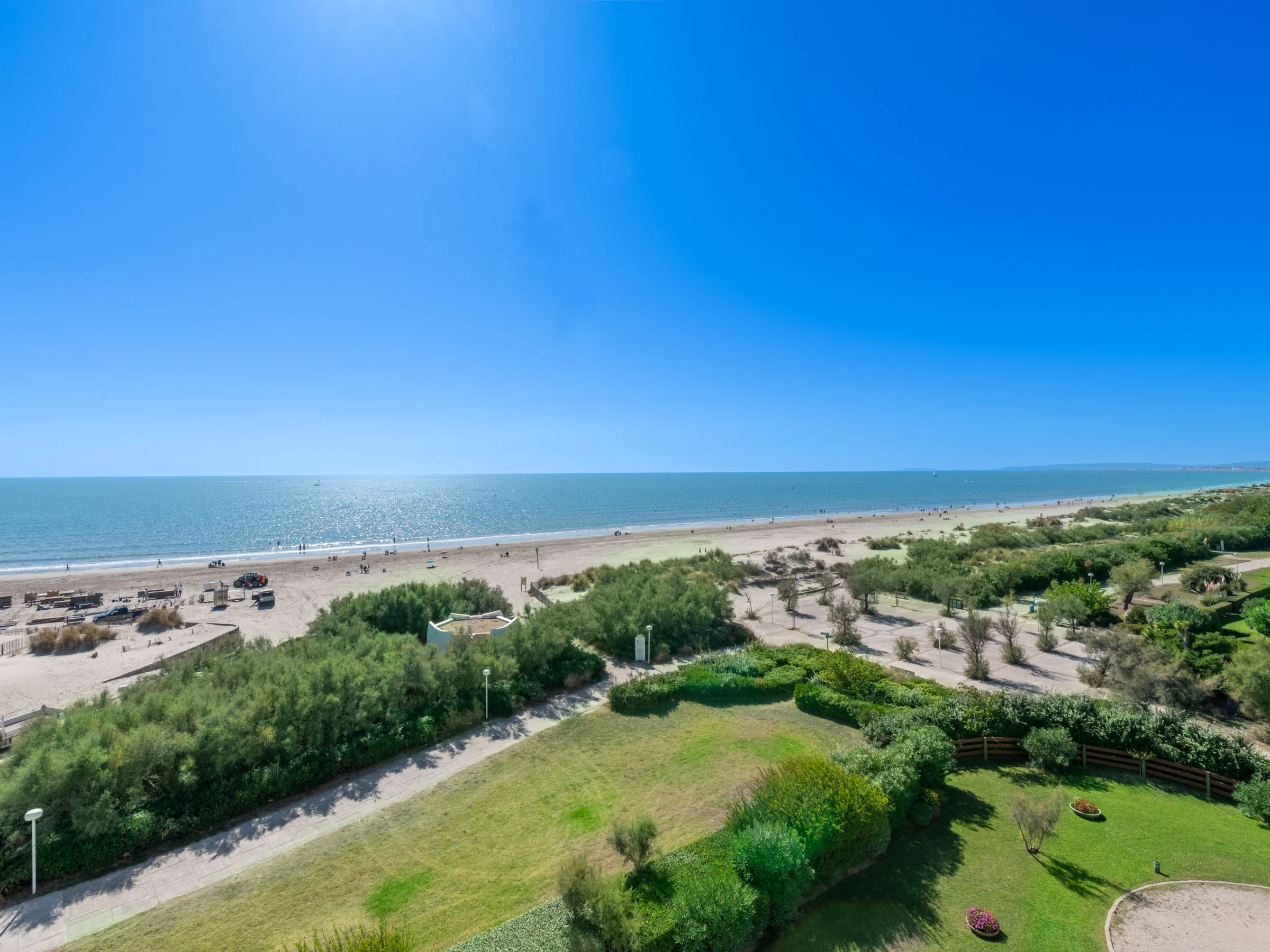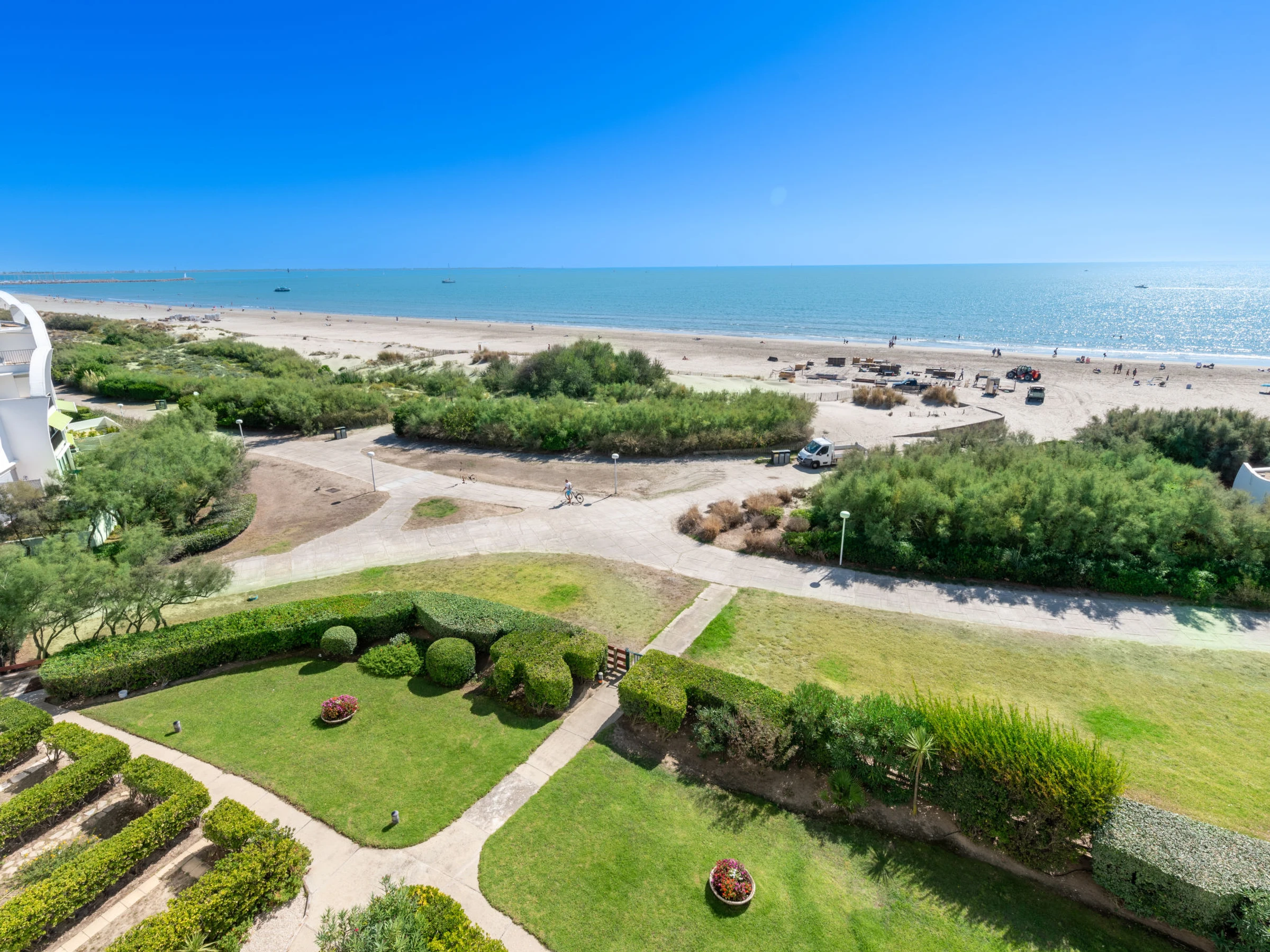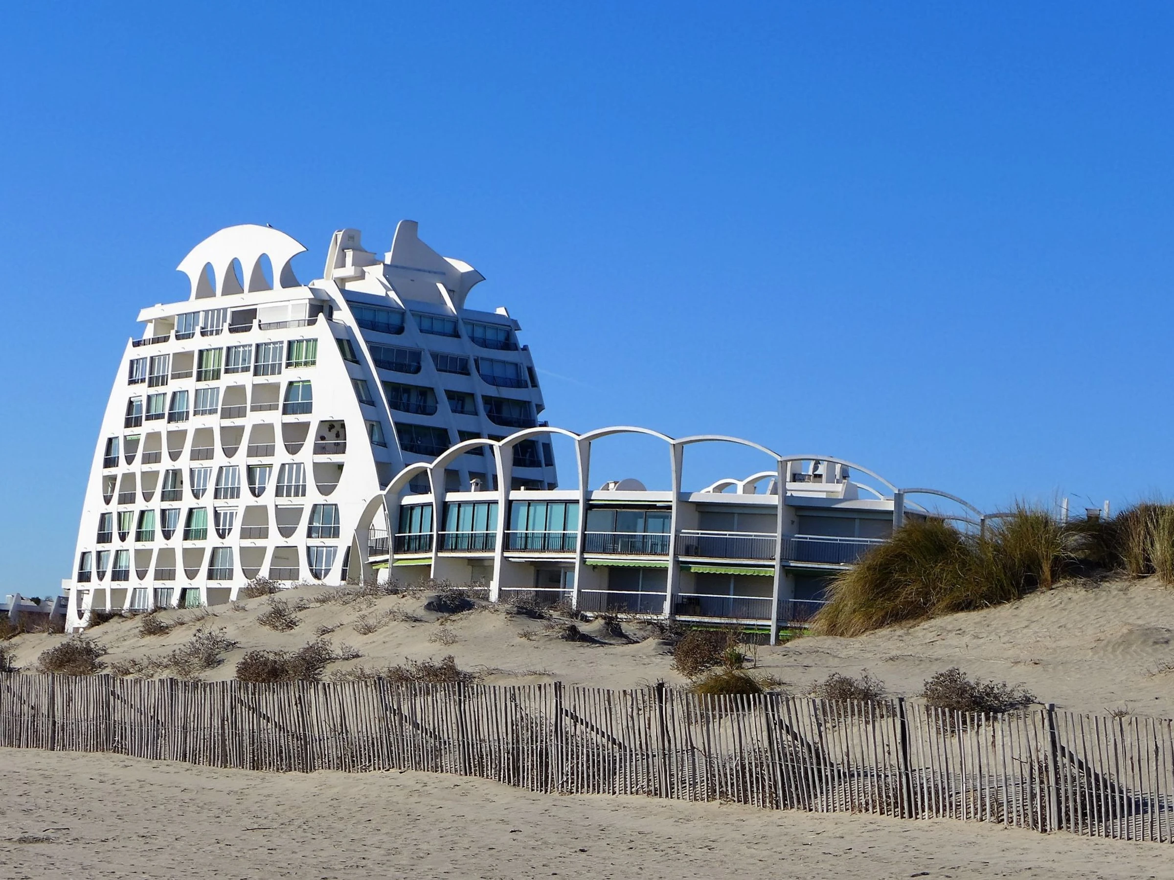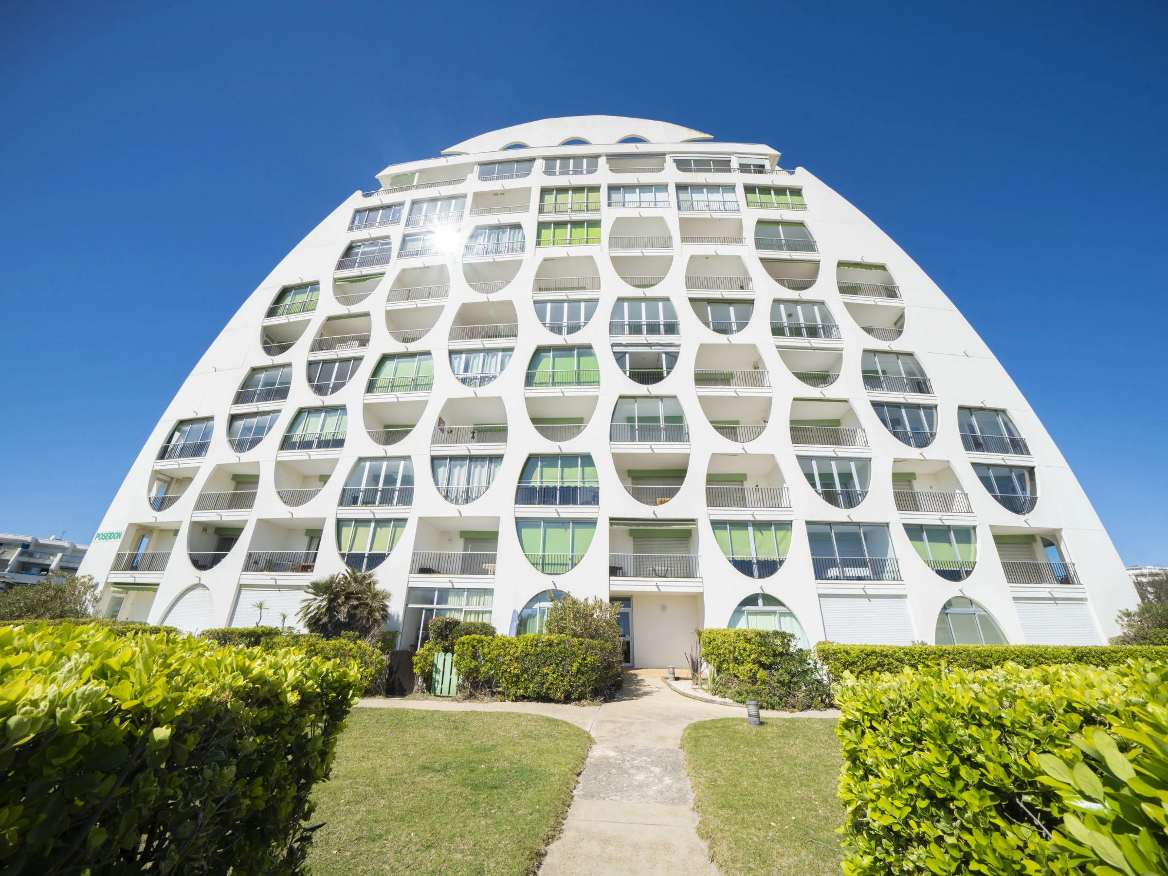 Residenz "Poséidon", auf 8 Stockwerken. Im Ortsteil La Motte du Couchant, 2 km vom Zentrum, 100 m vom Meer, 180 m vom Strand, direkter Zugang zum Strand. In der Anlage: Fahrstuhl. Einkaufszentrum 200 m, Restaurant, Bushaltestelle 450 m, Bahnstation "Montpellier" 25 km, Sandstrand 50 m, Hallenbad 3.3 km, Thermalbad "Thalasso Spa" 2.5 km. Sporthafen 1.3 km, Golfplatz (18 Loch) 3.6 km, Segelschule 1.3 km, Tennis 3.3 km, Reitstall 1.4 km. Nahe gelegene Sehenswürdigkeiten: Le Seaquarium du Grau Du Roi 10 km, Les Remparts d'Aigues Mortes 12 km, Les saintes Maries de la Mer 40 km. Bitte beachten: Flugplatz in der Nähe 20 km vom Haus.