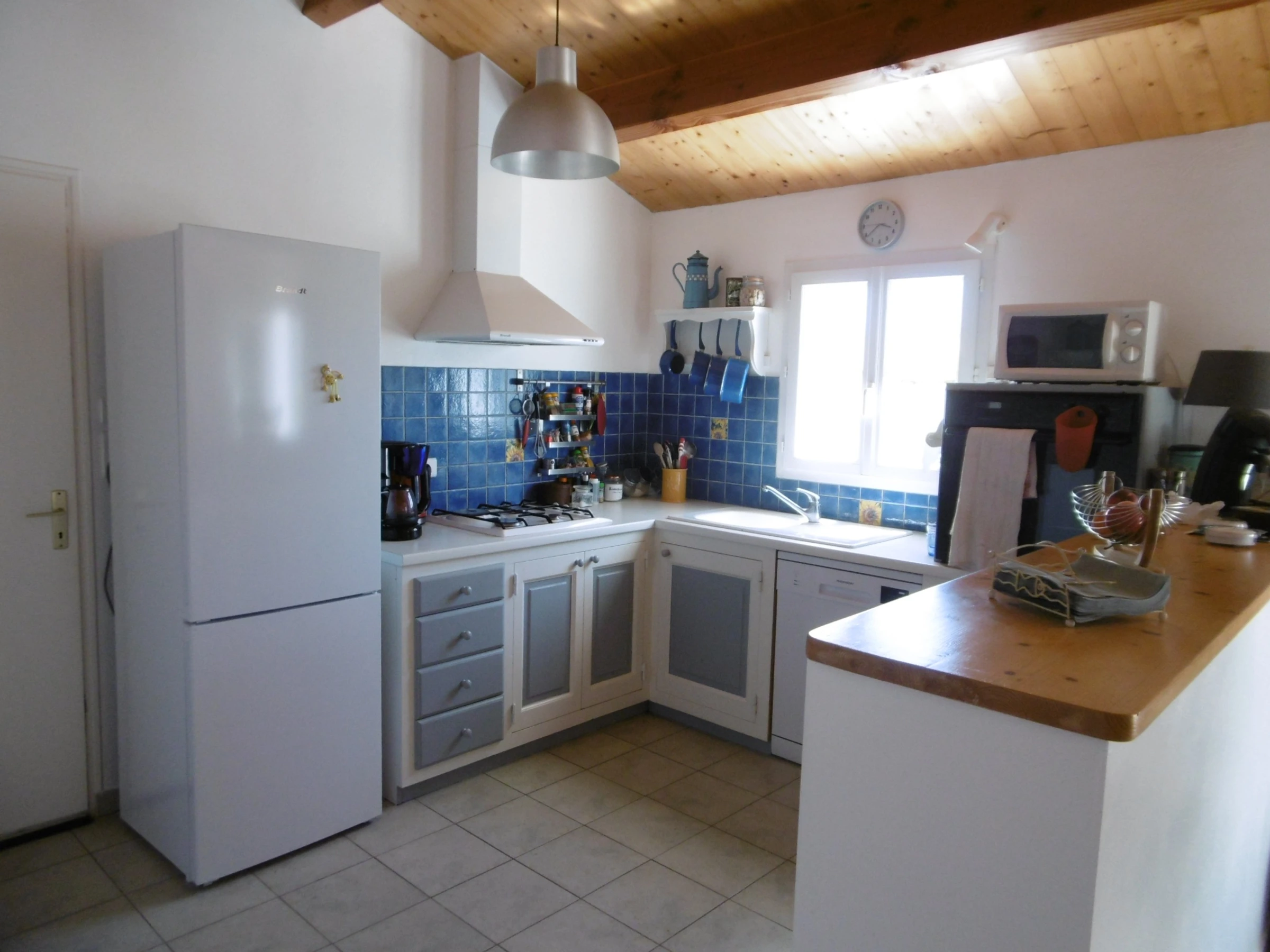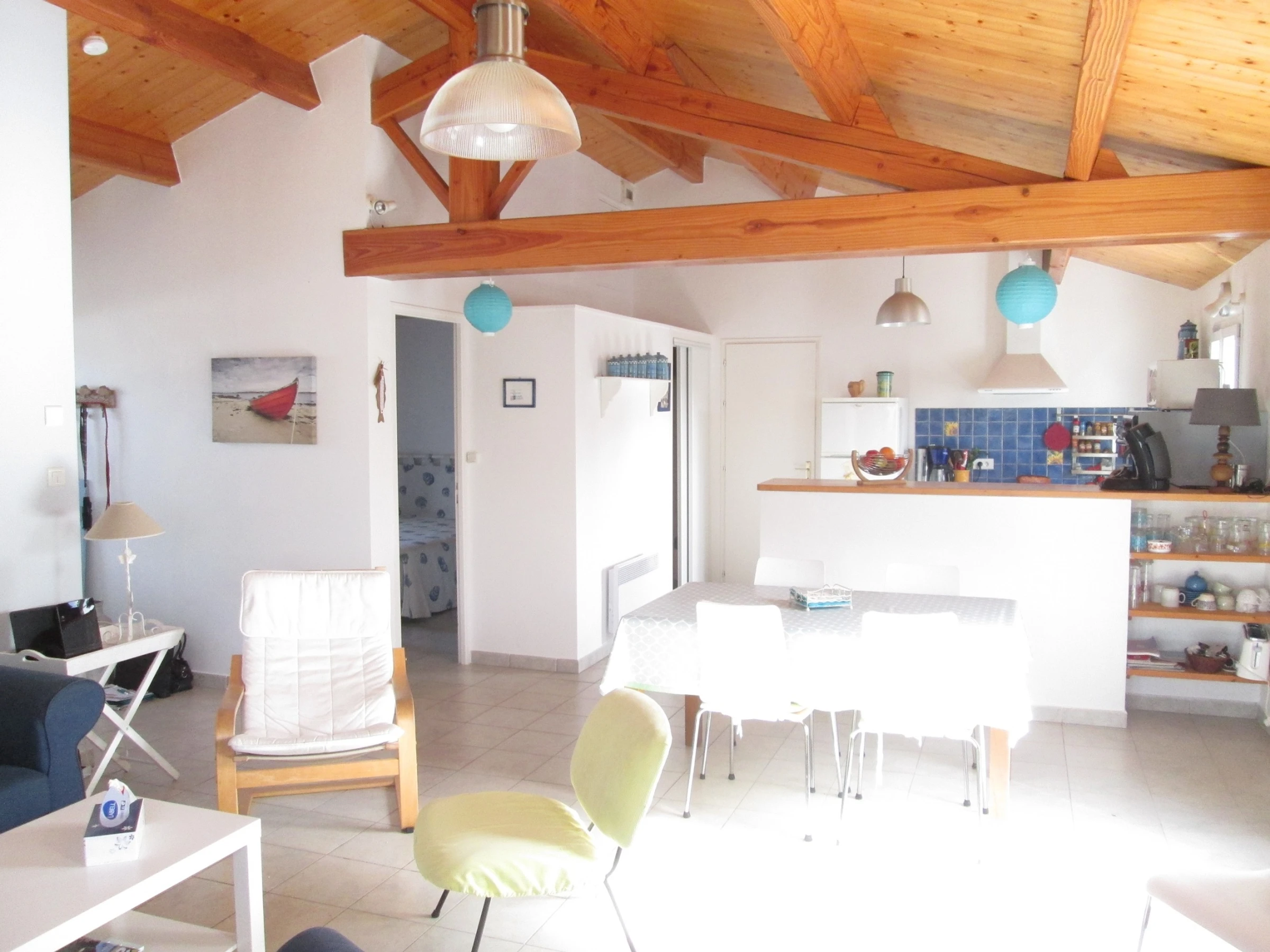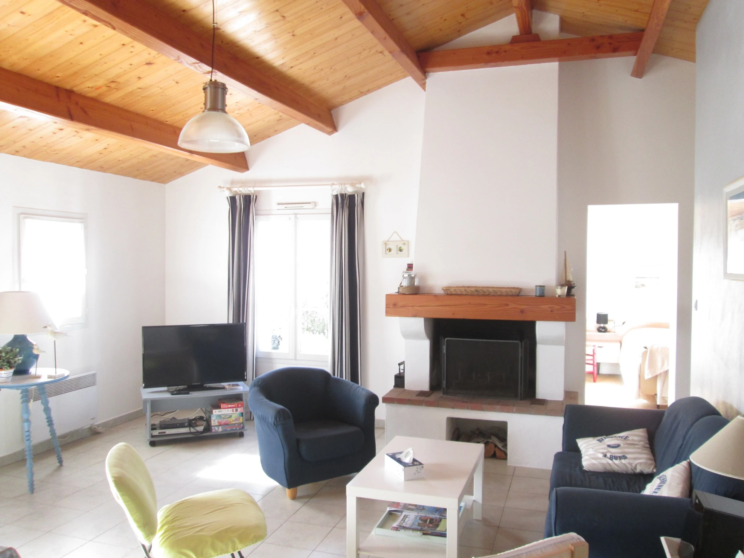 Angenehmes, komfortables einstöckiges Haus – ca. 75 m² – Bestehend aus einer Eingangshalle mit Schrank, einem Wohnzimmer/Aufenthaltsbereich (Kamin nicht in Gebrauch) mit offener, möblierter und ausgestatteter Küche, einem Schlafzimmer mit einem 140 cm breiten Bett, einem Schlafzimmer mit einem 140 cm breiten Bett und einem 90 cm breiten Bett, einem Schlafzimmer mit Zugang zu einer Terrasse mit einem 140 cm breiten Bett, Duschraum, Toilette, Garage zur Fahrradaufbewahrung – Babybett + Badewanne in der Garage und Kinderstuhl im Eingangsschrank – Waschmaschine, Geschirrspüler, Mikrowelle, Backofen, Gefrierfach, Fernseher – Umzäunter Garten mit Terrasse und Gartenmöbeln, festem Grill, 3 Liegestühlen, Sonnenschirm – Parken auf dem Grundstück – Haustiere erlaubt – Reinigungsgebühr: 97 €.