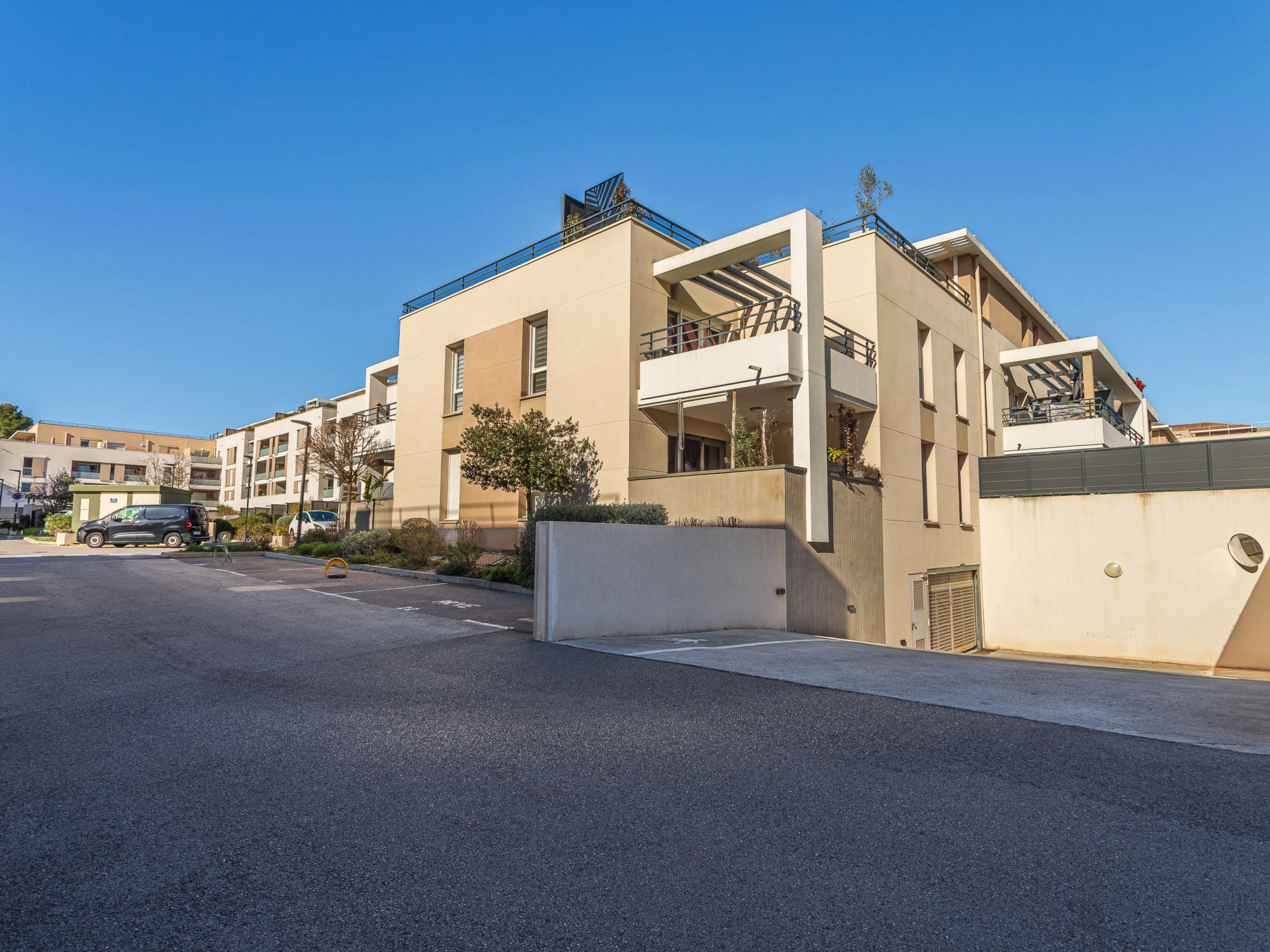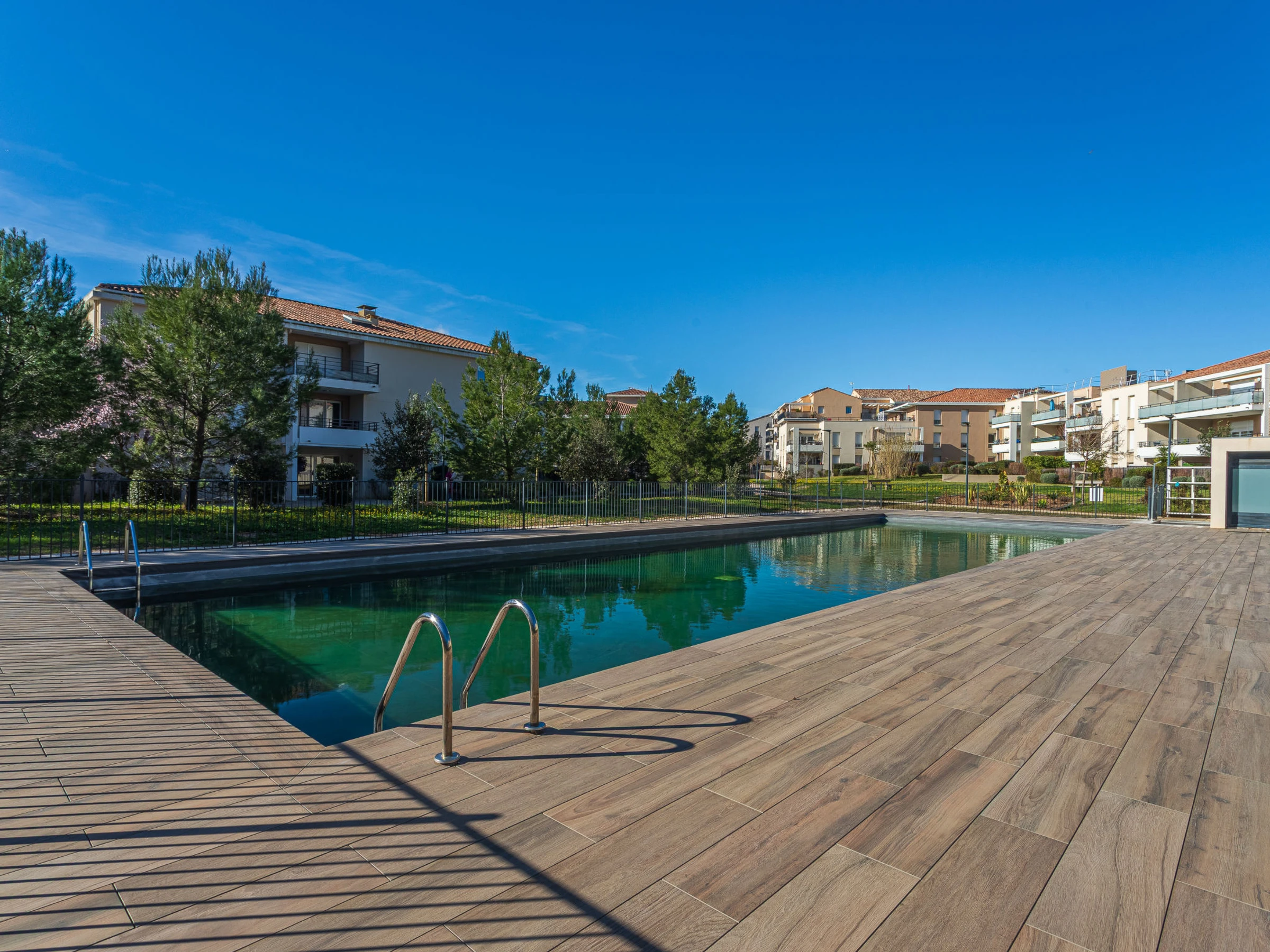 Gemütliche Residenz "Nouvelles Terres E4", auf 3 Stockwerken, umgeben von Bäumen. Im Ortszentrum von La Londe Les Maures, ruhige, sonnige Lage, 3 km vom Meer, 3 km vom Strand. Zur Mitbenutzung: Schwimmbad eckig (20 x 9 m, 50 - 150 cm tief, saisonale Verfügbarkeit: [hidden] - [hidden] Öffnungszeiten Schwimmbad: 08:00-21:00). Einkaufsgeschäft 360 m, Lebensmittelgeschäft 350 m, Supermarkt 140 m, Einkaufszentrum 12 km, Restaurant 350 m, Bäckerei, Café 600 m, Bushaltestelle "Centre ville" 550 m, Sandstrand "Plage Miramar" 3 km, Tauchzentrum 2.9 km. Sporthafen 2.9 km, Golfplatz (18 Loch) 8.3 km, Segelschule 3.1 km. Nahe gelegene Sehenswürdigkeiten: Jardin Zoologique Tropical 1.3 km, Espace nature La Brûlade 1.6 km. Wandergebiete: Sentier du littoral Plage l'Argentière 5.3 km.
